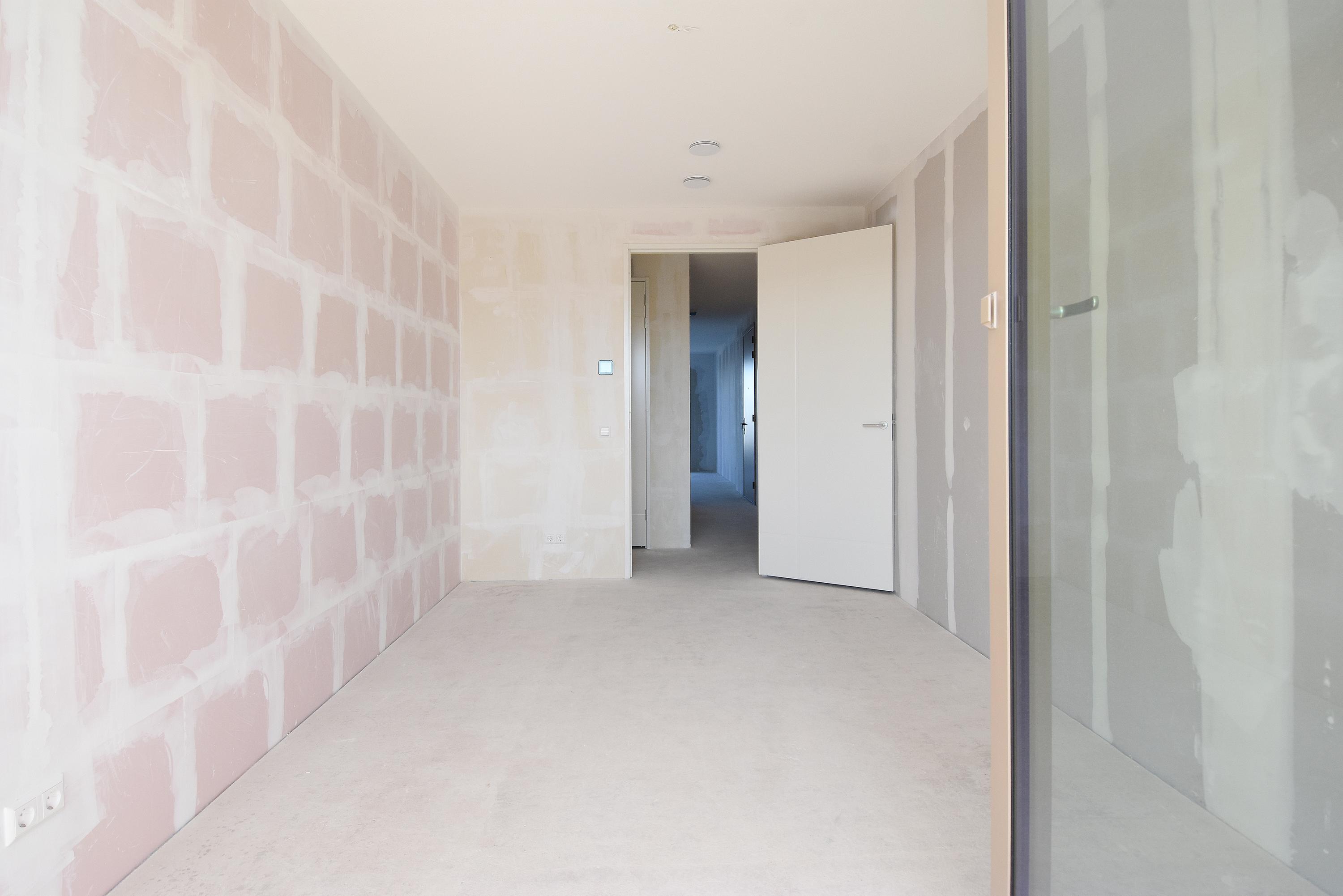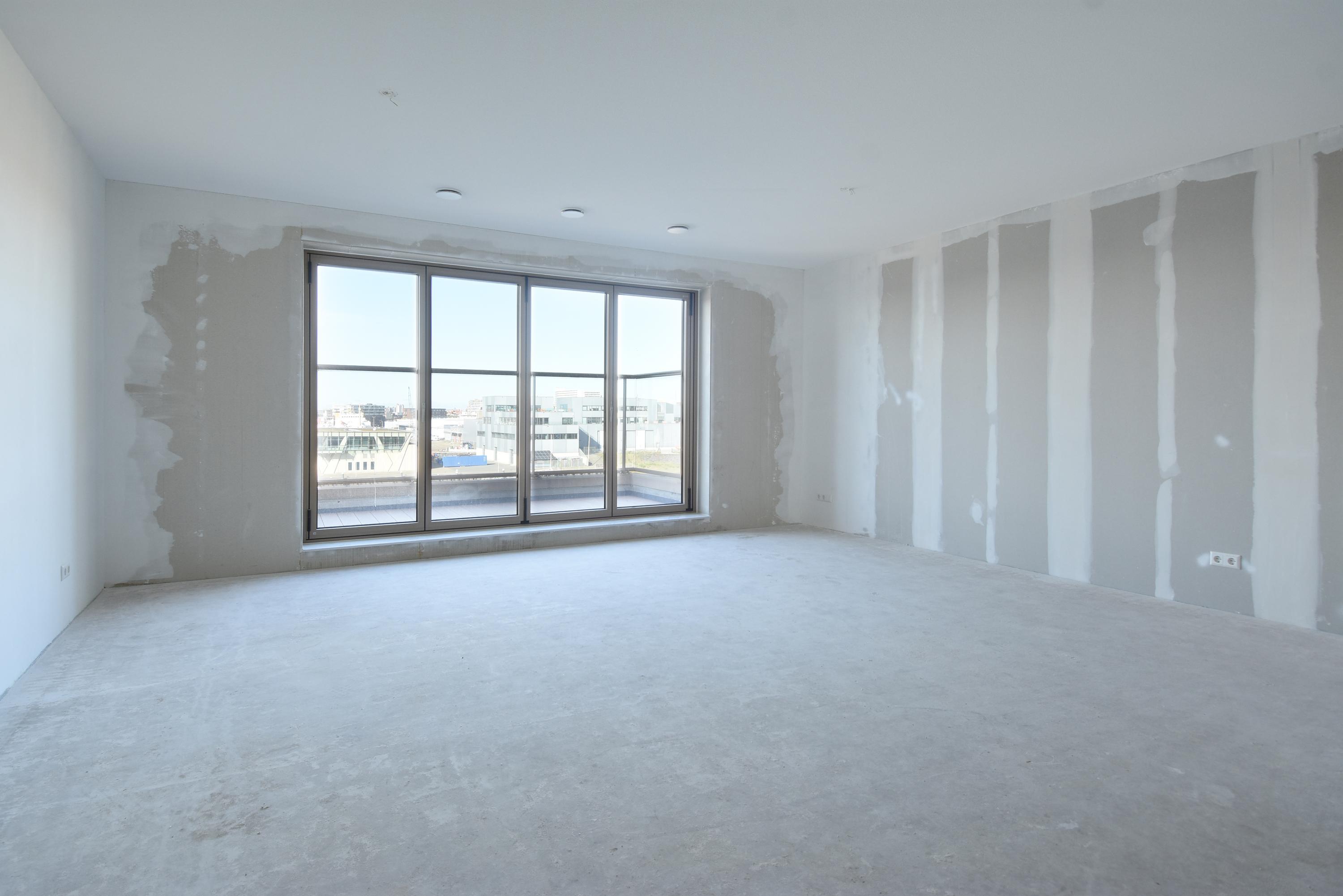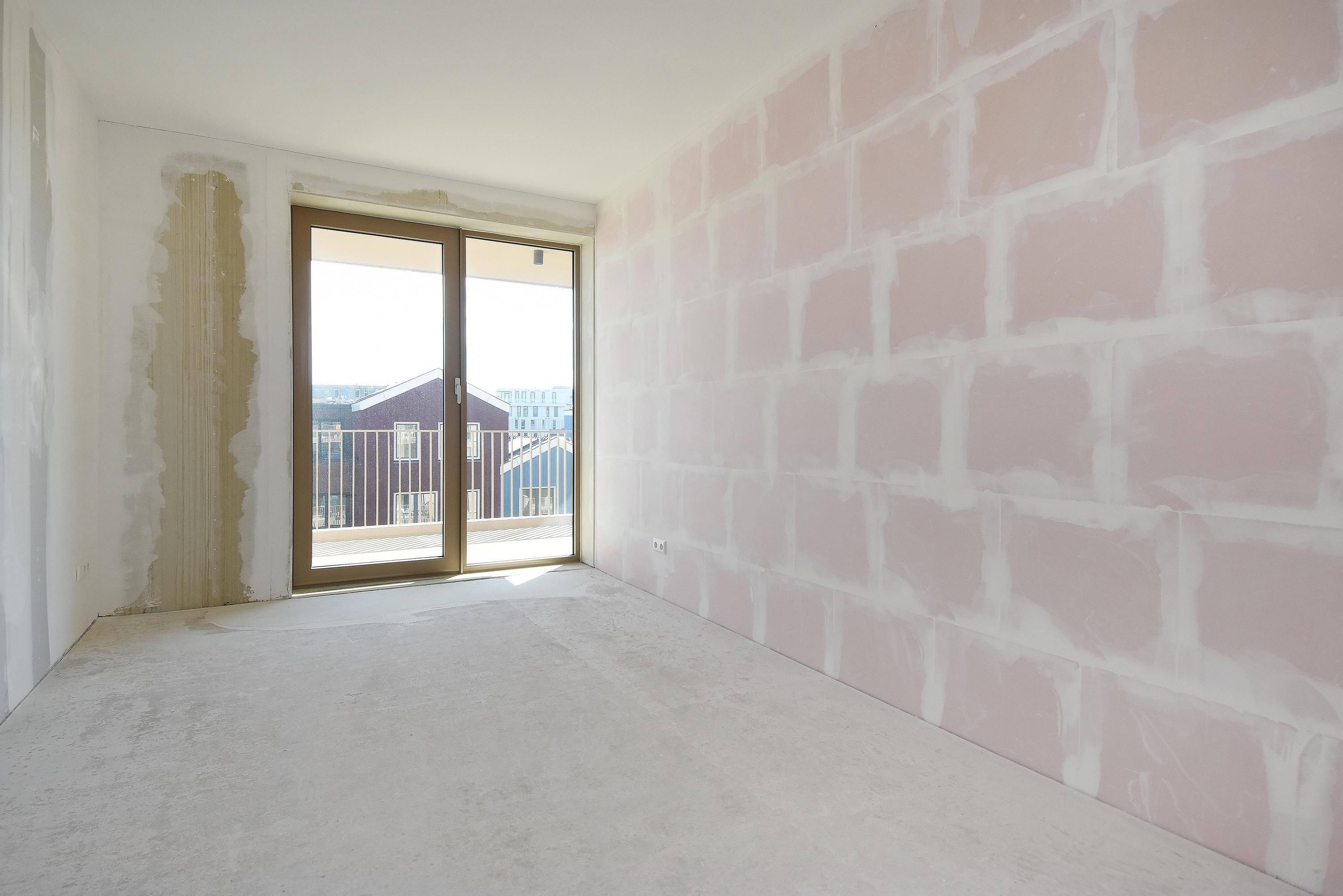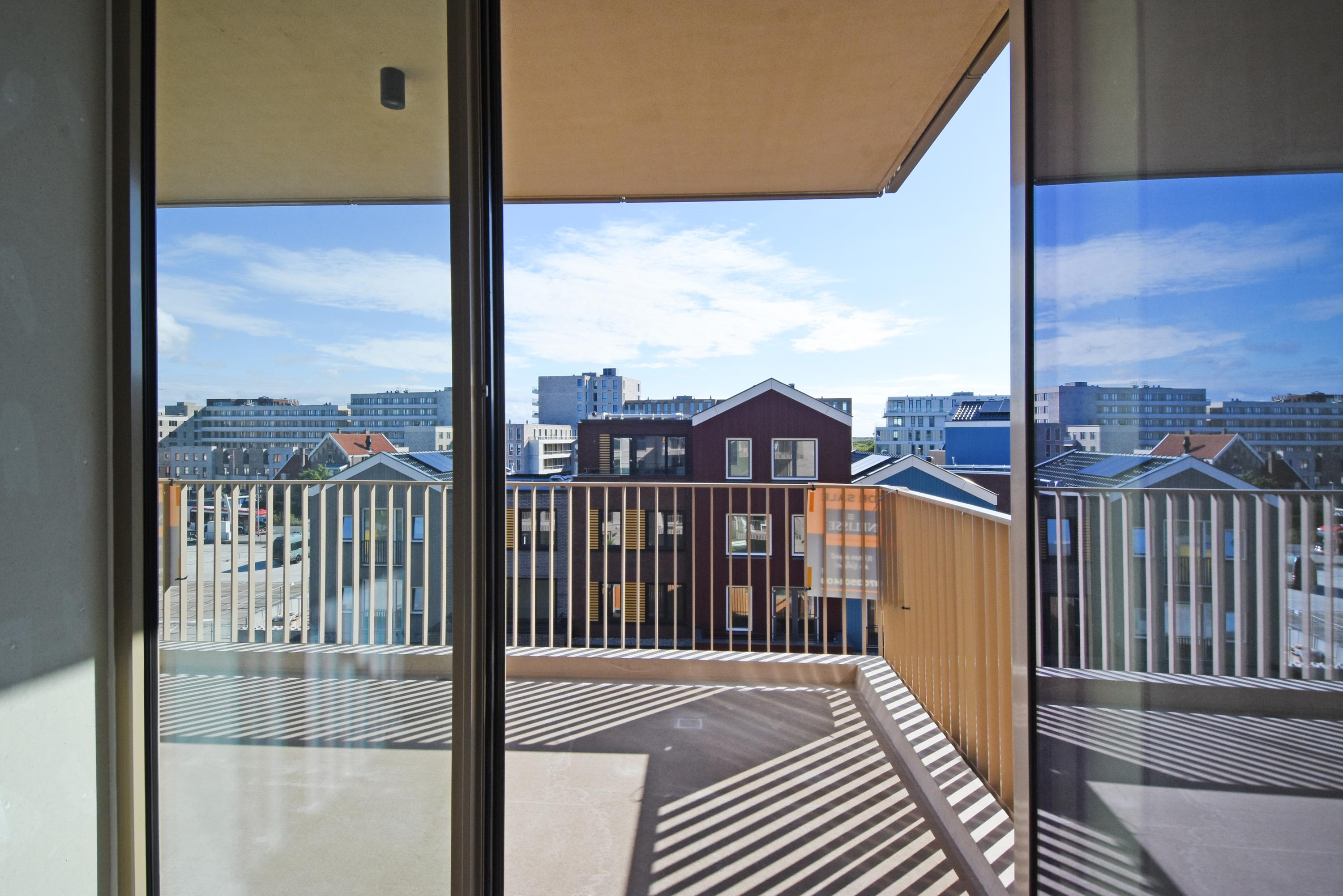 The open NEXT-125 kitchen, with a corner setup, is equipped with a composite countertop and built-in appliances: induction cooktop with integrated ventilation, dishwasher, fridge/freezer combination, Quooker, and combi oven. At the rear of the apartment, there are 2 bedrooms, both of which provide access to the spacious sun-drenched balcony on the south, overlooking the shared courtyard.