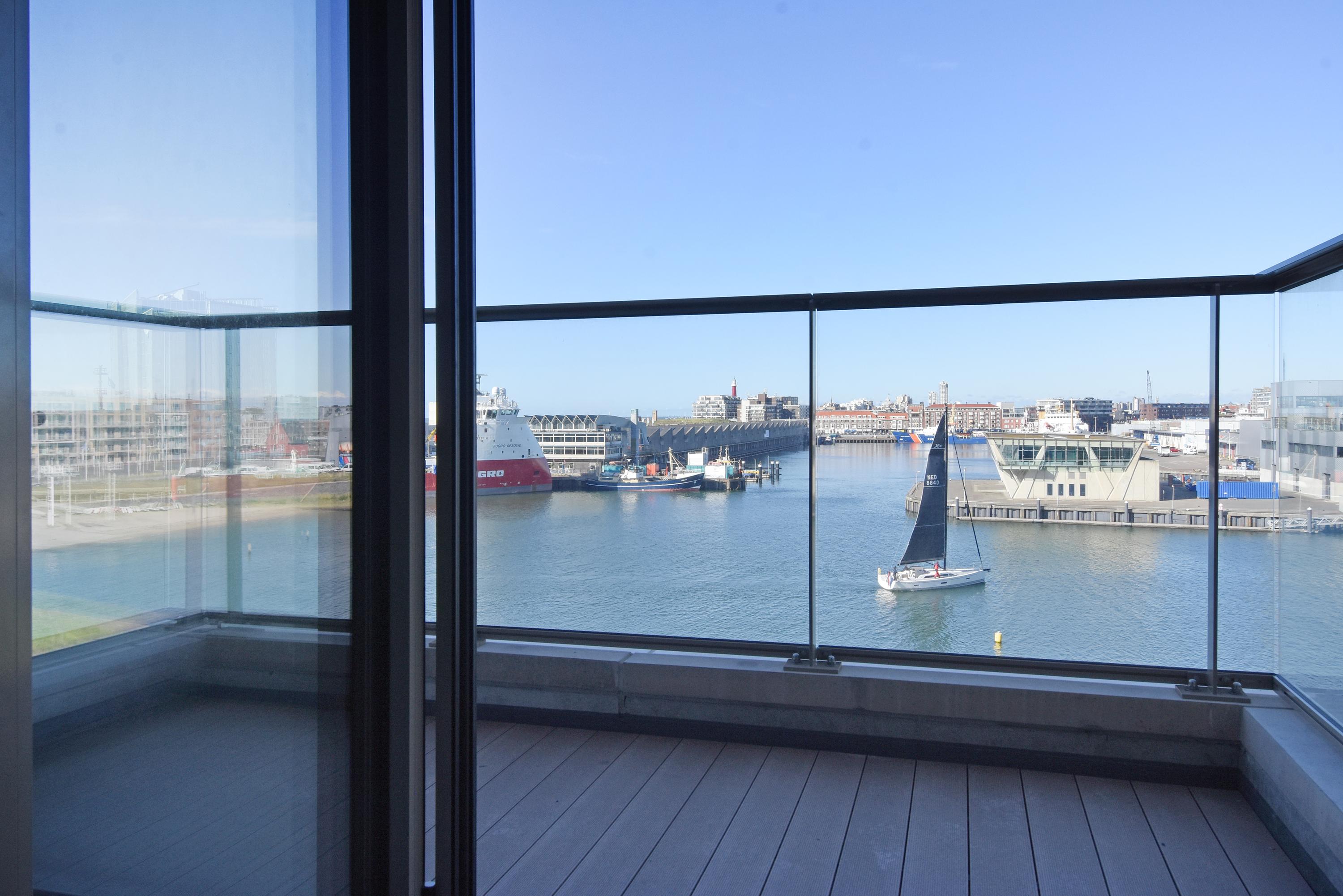 Entrance, hall, modern toilet, modern bathroom with a walk-in shower, washbasin with vanity unit, and towel radiator (Duravit sanitary ware), integrated technical room/storage with a heat pump, ventilation system, and washer/dryer connections. The spacious living room on the harbor side offers a phenomenal view thanks to large windows and the folding/sliding door to the balcony. From the living room and balcony, you have views of the Scheveningen harbor and the sea, a lively view that never gets boring with the arriving and departing fishing boats, pleasure yachts, and numerous water sports enthusiasts.