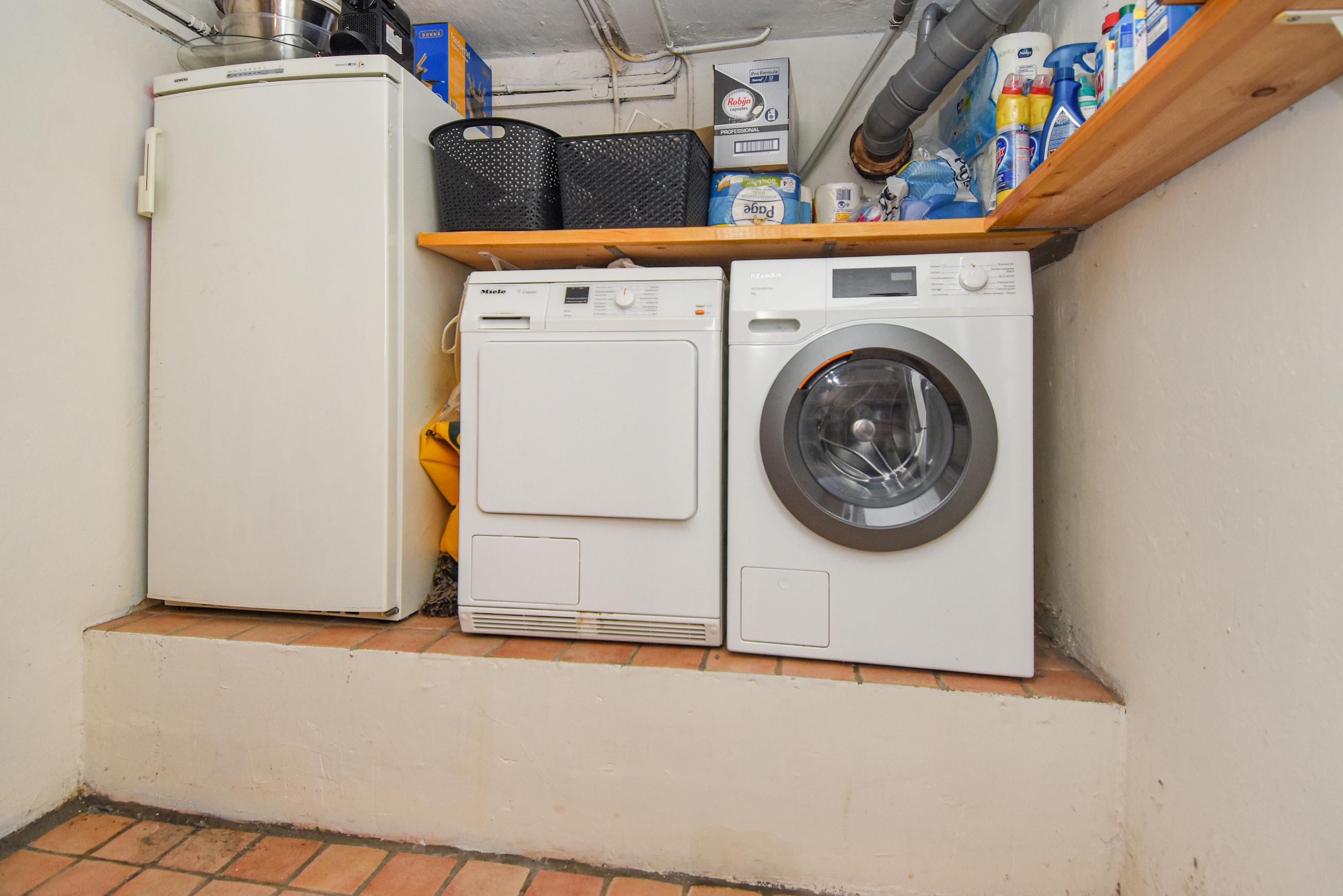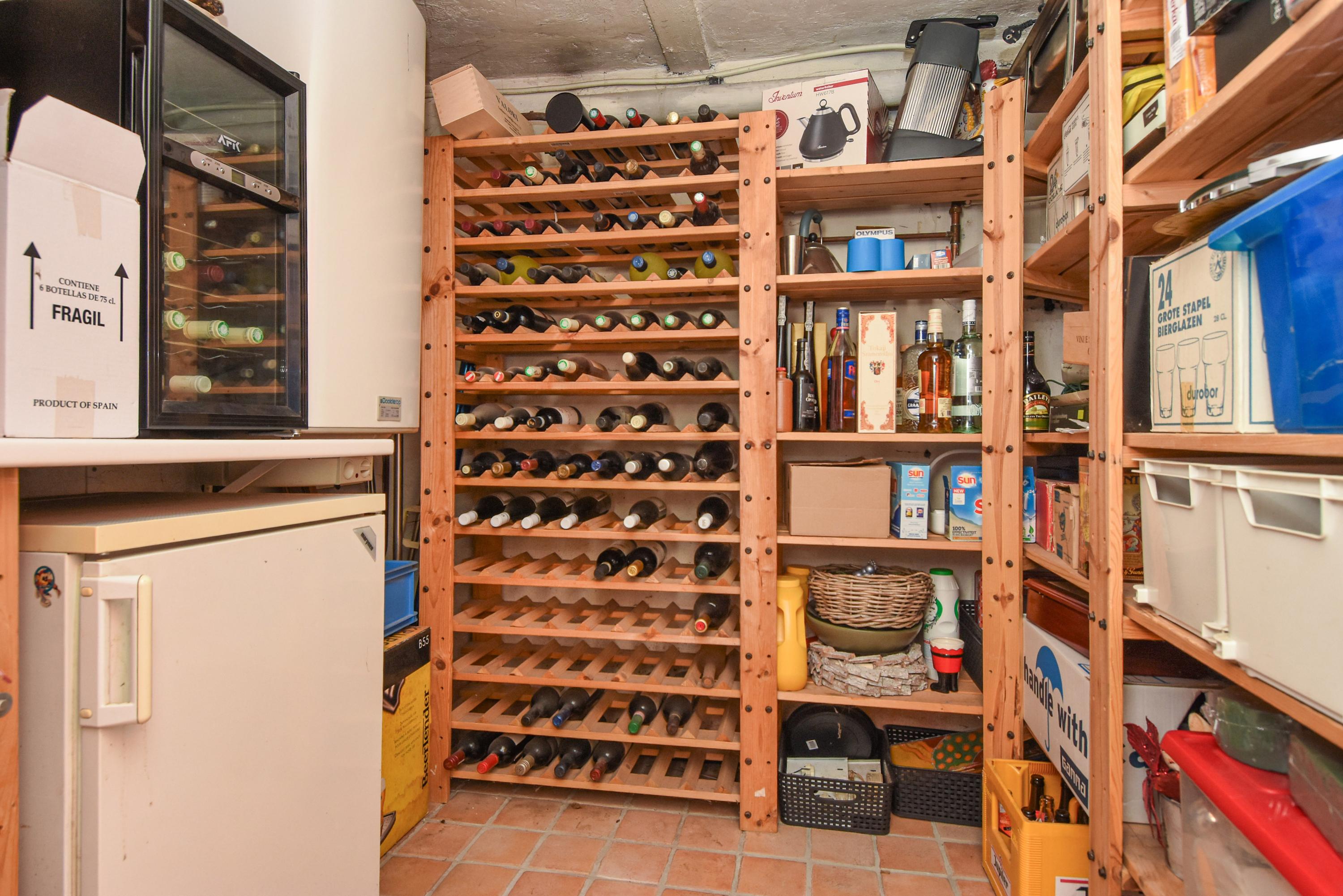 The laundry connections and another electric boiler, as well as a wine cellar fitted with wooden racks, are at basement level.