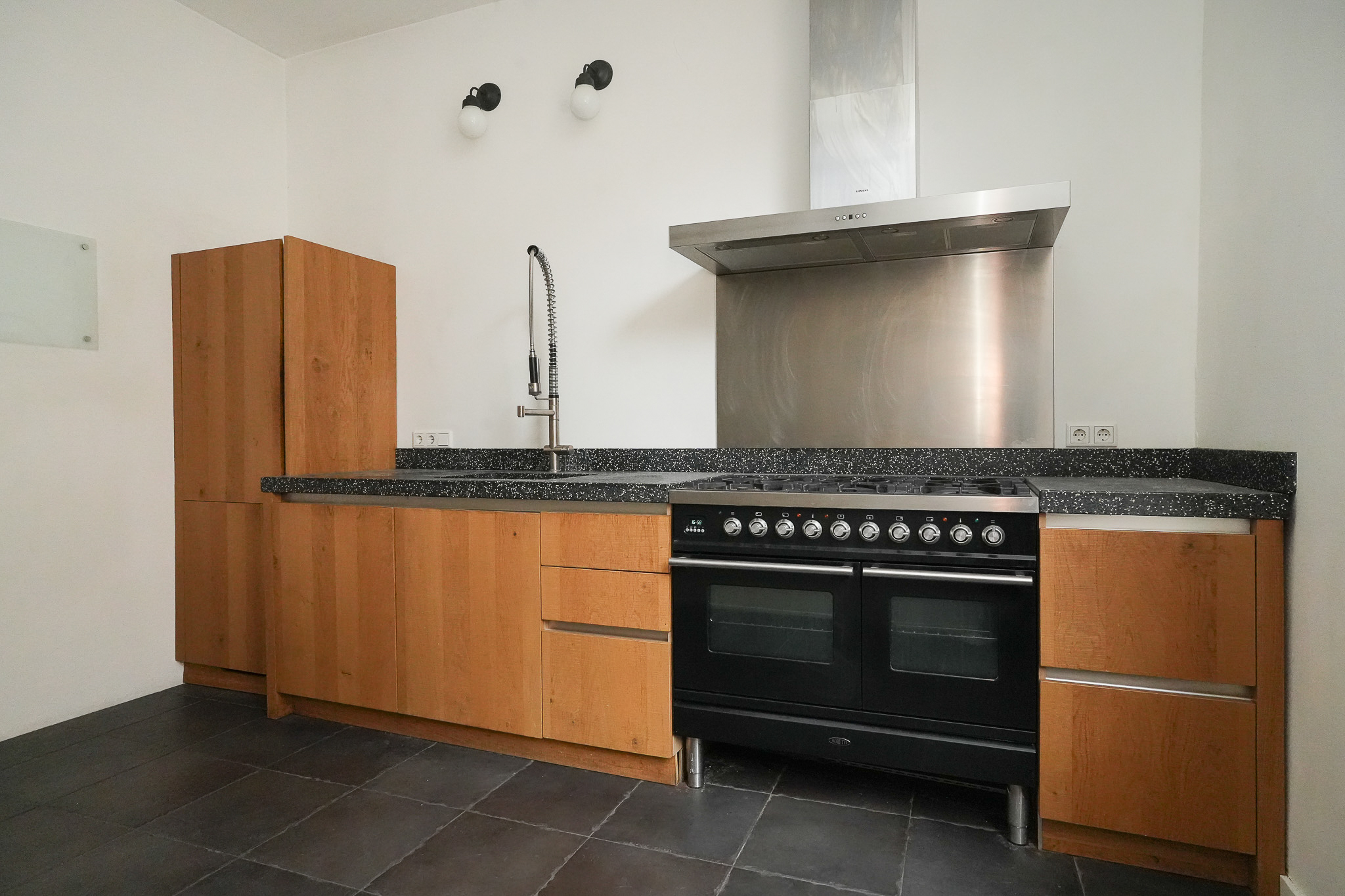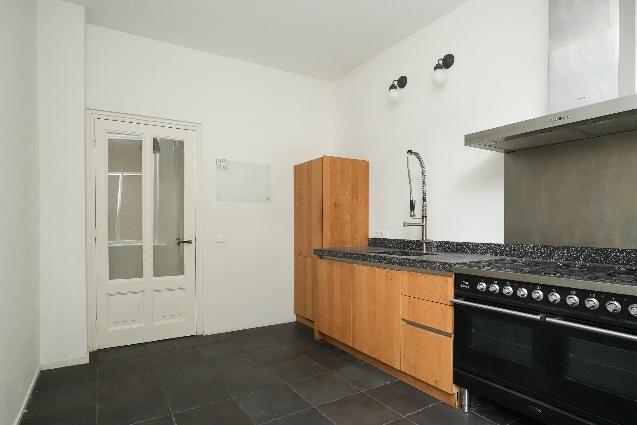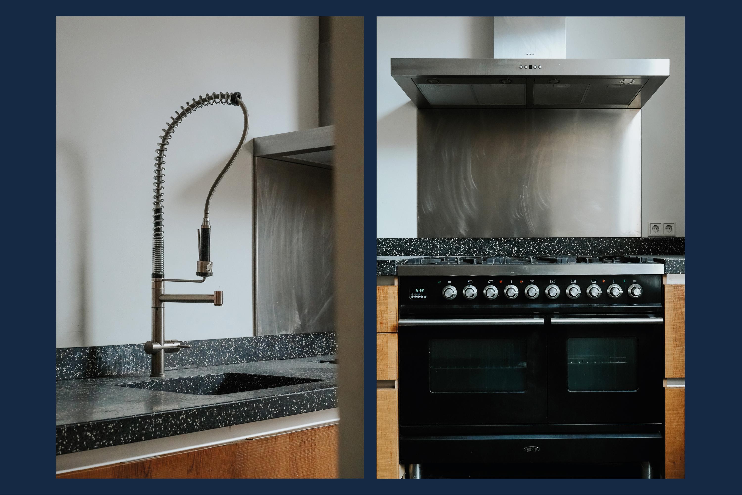 De woning beschikt over een eigen entree en een indrukwekkende leefverdieping met een ca. 6,8 meter brede woonkamer voorzien van hoge ramen en veel lichtinval. De aparte keuken met robuuste uitstraling en hardstenen werkblad staat in verbinding met het dakterras. Daarnaast is er een sfeervolle, separate eetkamer, ideaal voor lange diners met vrienden of familie.