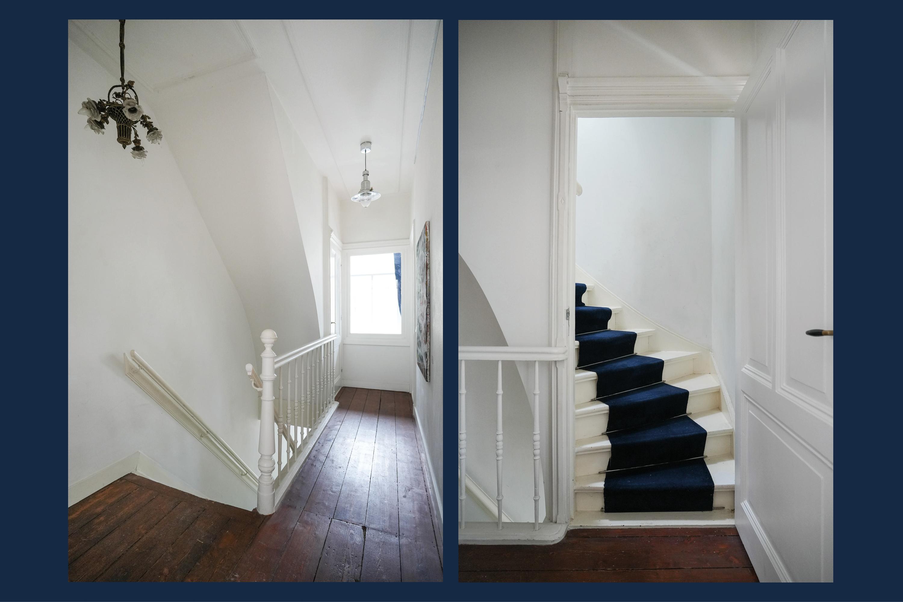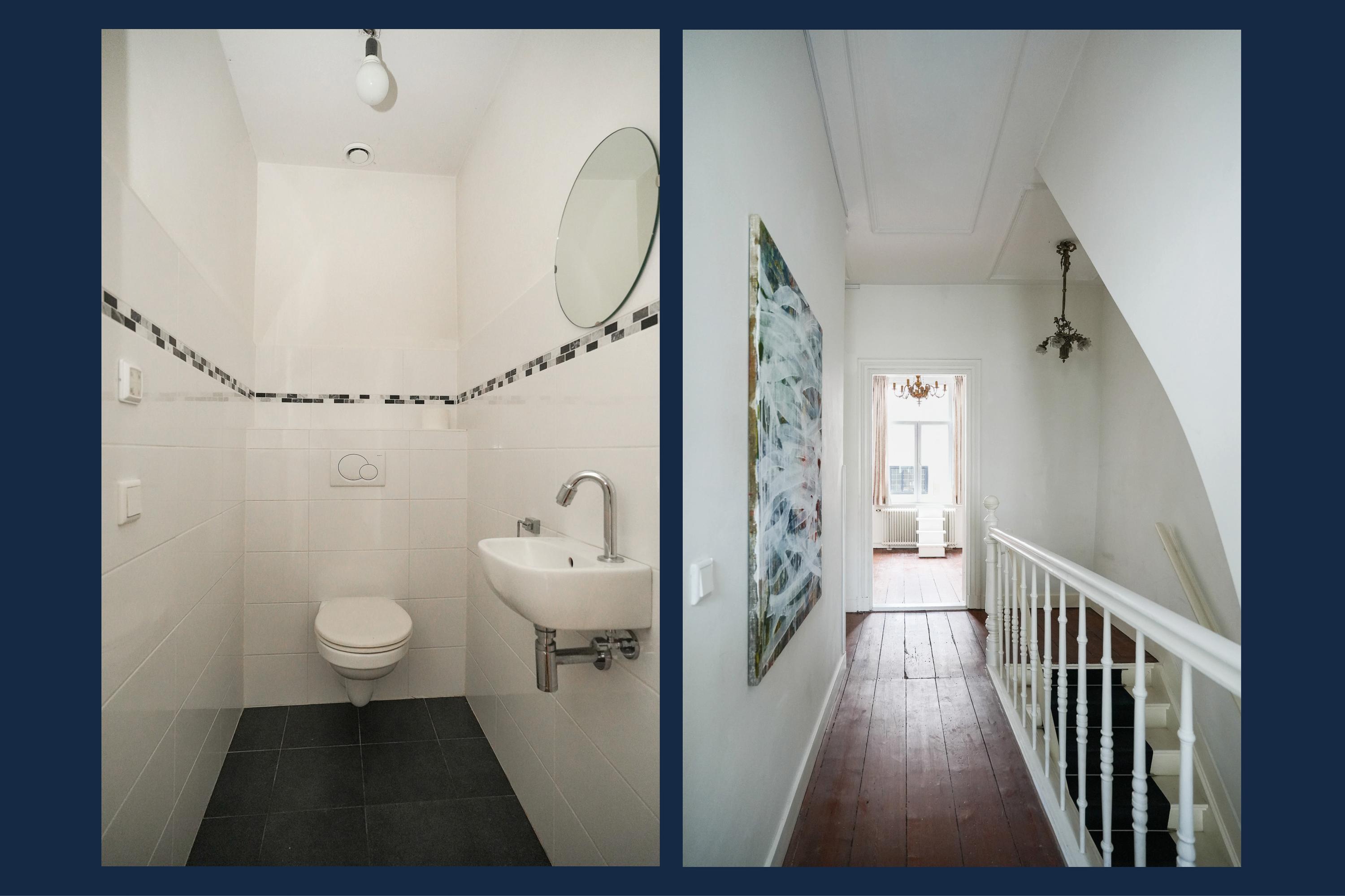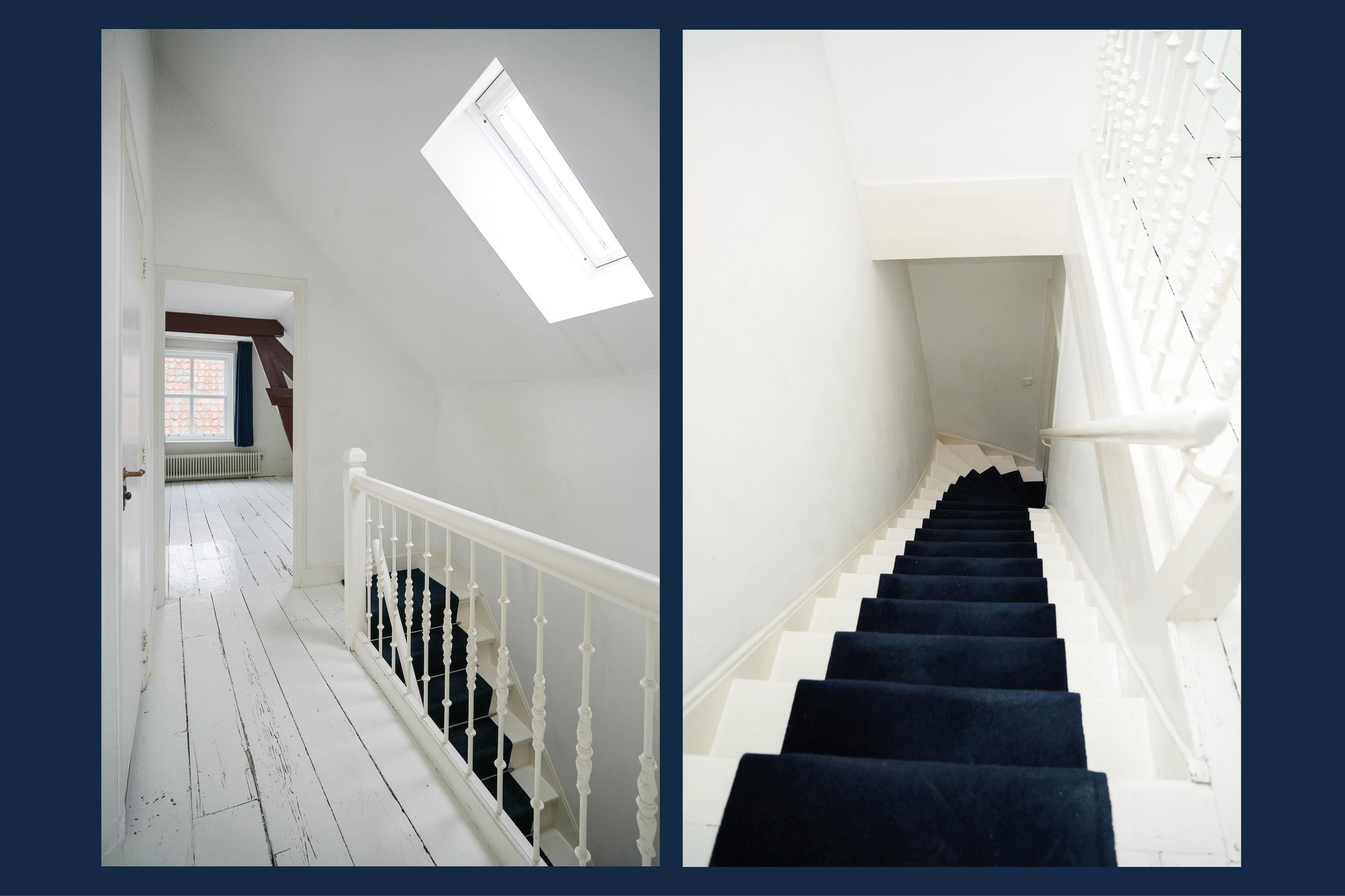 Op de verdieping bevinden zich drie slaapkamers, waaronder een bijzonder ruime hoofdslaapkamer van uitzonderlijk formaat. De badkamer is praktisch ingedeeld en voorzien van ligbad, douche, tweede toilet en dubbele wastafel. Het beschutte dakterras is recent vernieuwd en biedt volop middag- en avondzon. Extra bergruimte is aanwezig op de ruime zolder. Een karaktervolle stadswoning op een toplocatie tussen het NS-station en de Bossche Markt.