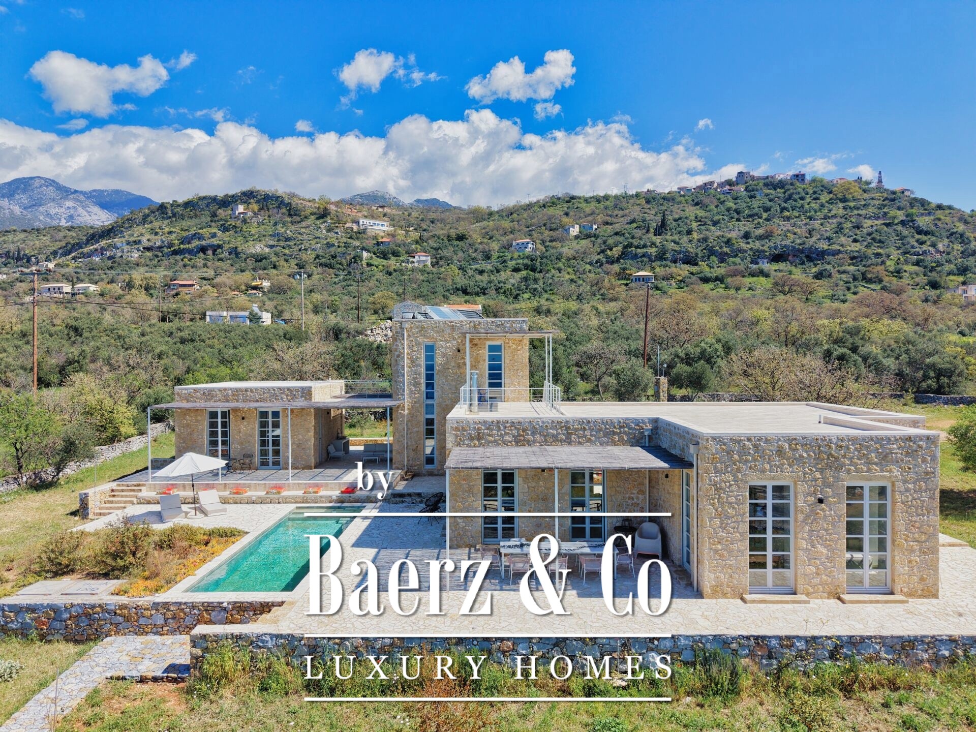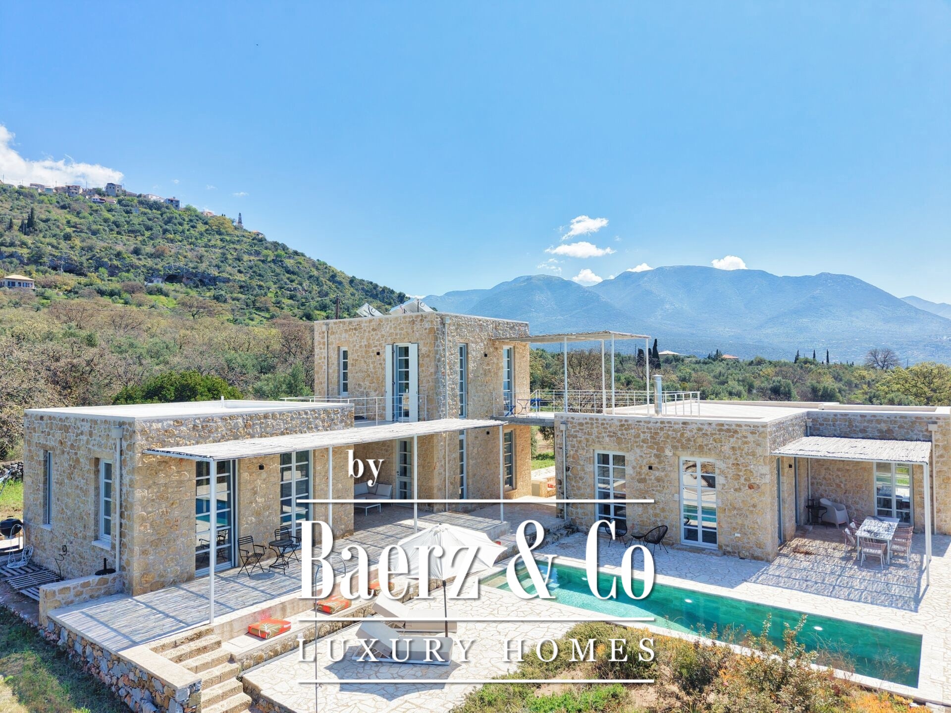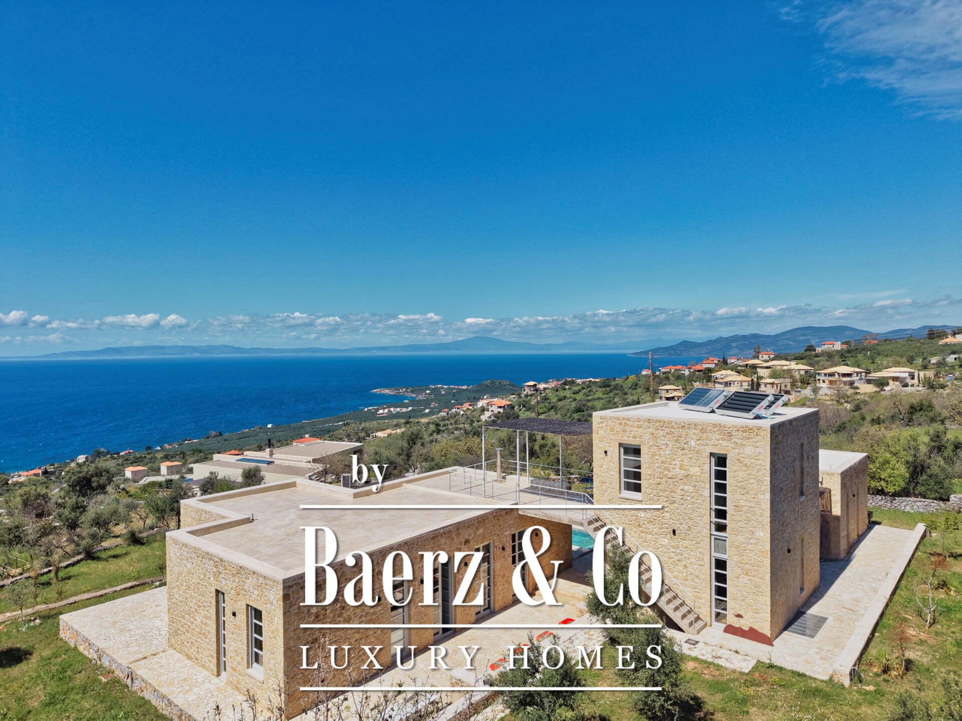 Stone villa Agios Nikolaos stands within the sought-after landscape of Messinian Mani, presenting refined living with panoramic, unobstructed sea views. This newly built villa, set on a 2,029 m² plot, encompasses 260 m² of living space distributed across three independent buildings, offering both privacy and versatility.