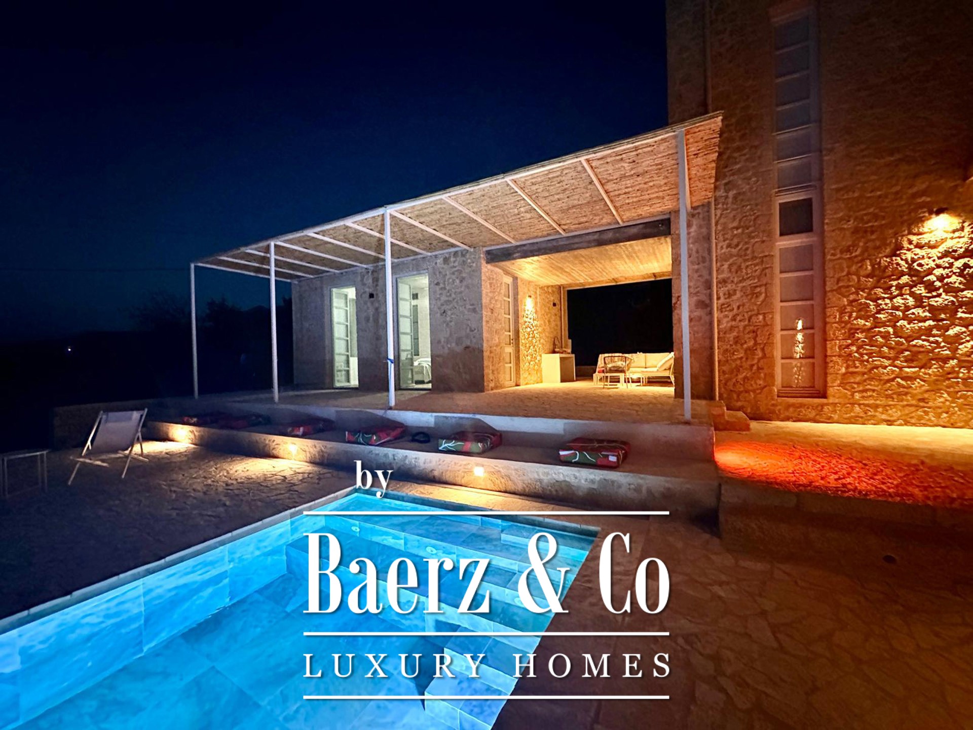 Stone villa Agios Nikolaos offers an exceptional blend of privacy, luxury, and the elemental beauty of the Greek coastline.