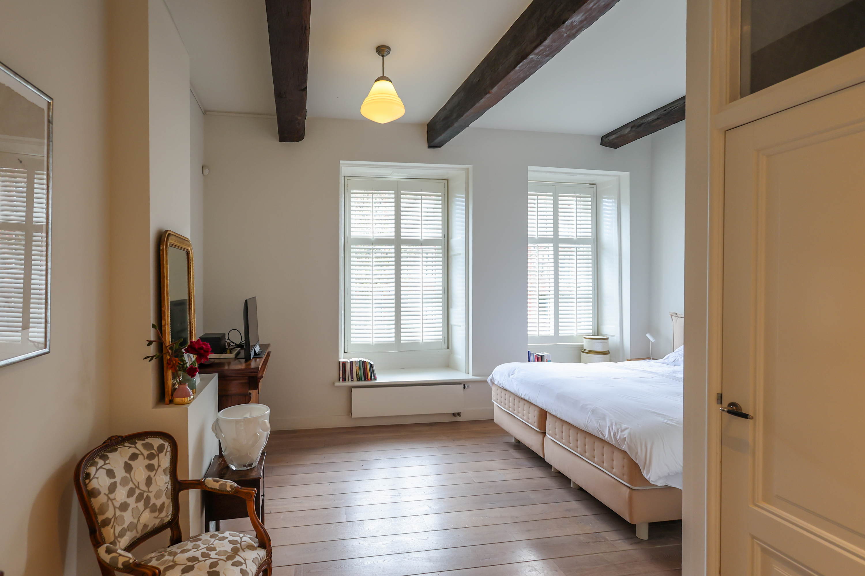 City villa Amersfoort, a national monument on the renowned Muurhuizen, offers a rare blend of history and modern comfort in the centre of the city. This home provides 225 m² of interior space, with five bedrooms and two bathrooms arranged over three thoughtfully restored levels, each honouring the distinctive heritage of the building.