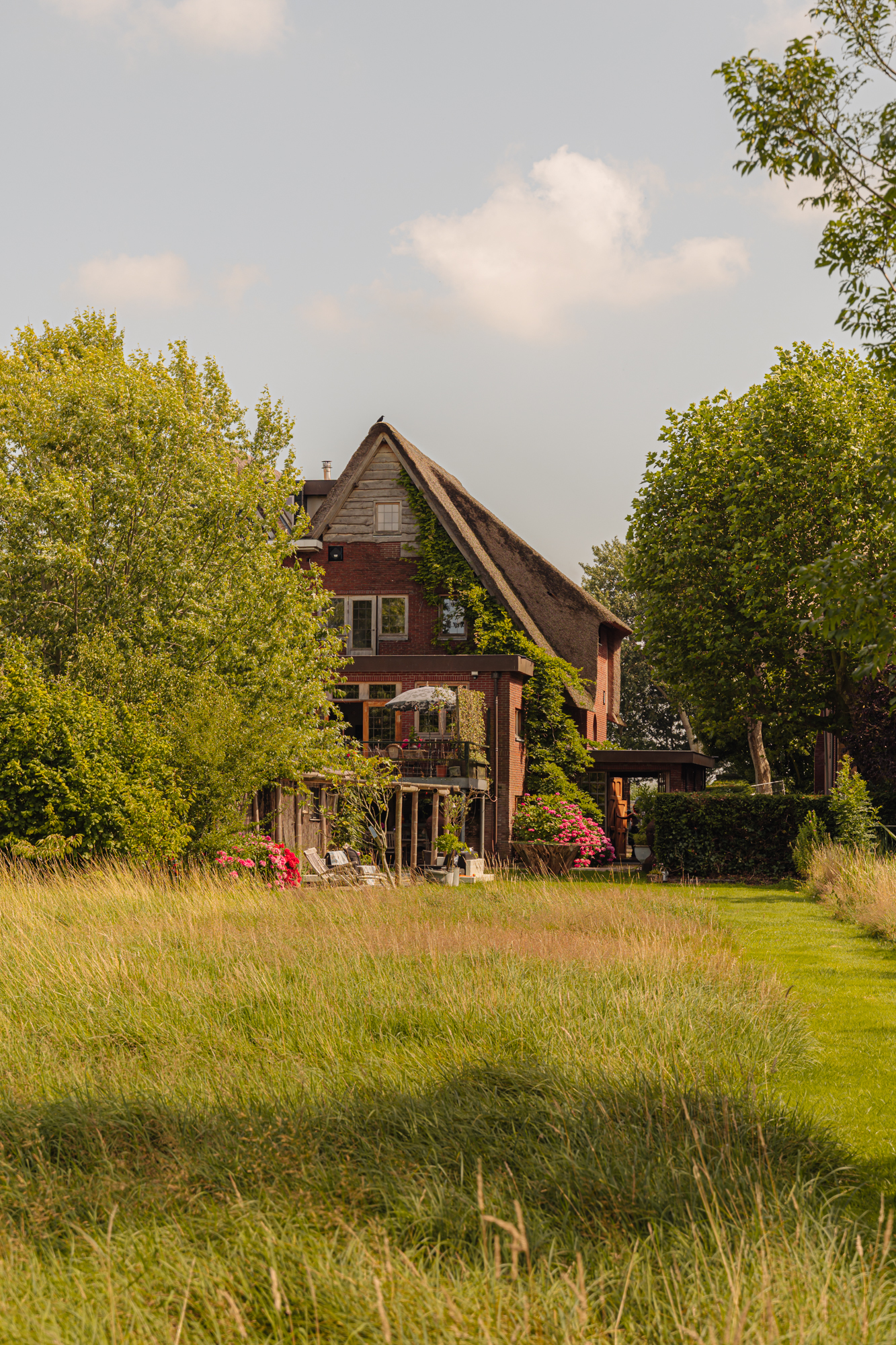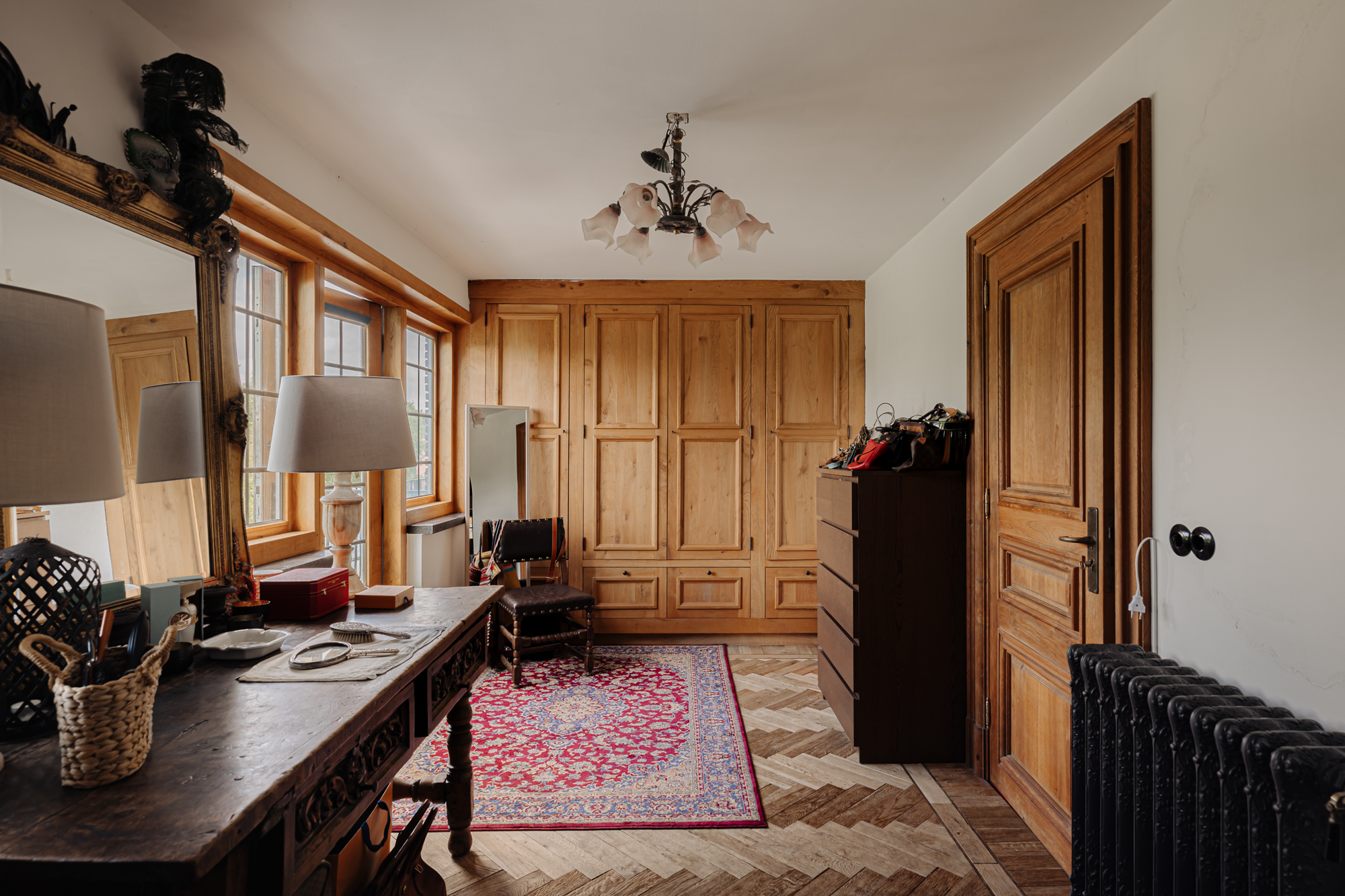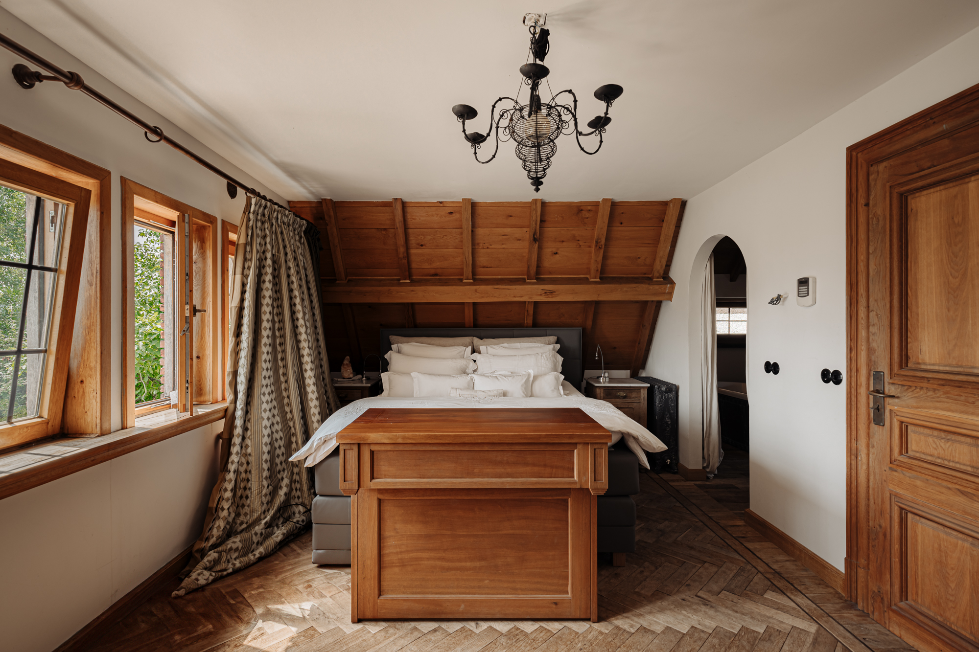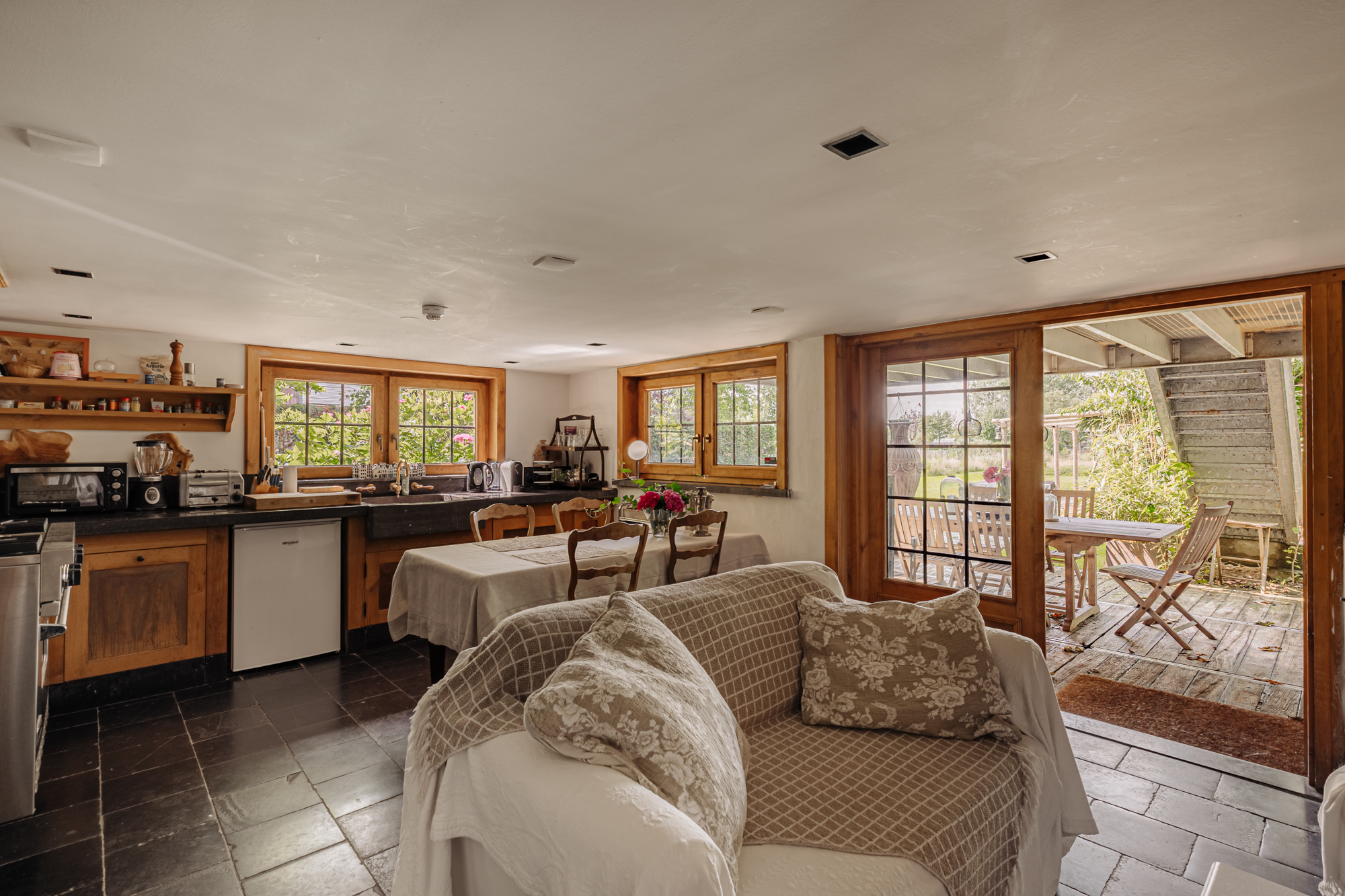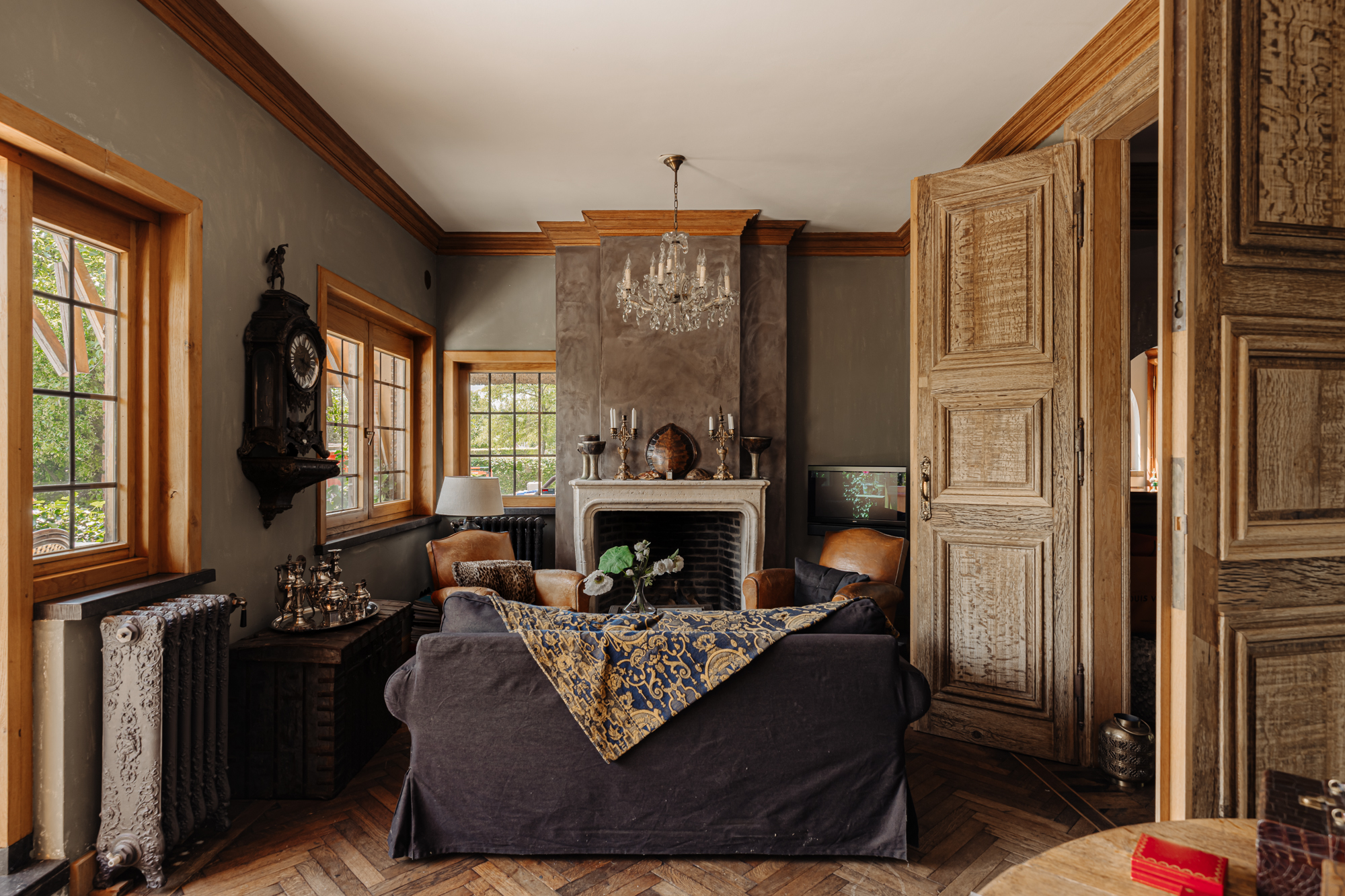 Inside, the house is defined by refined heritage, from stained glass windows originating from the Peace Palace to robust wooden floors reclaimed from historic barracks. Each of the four bedrooms and three bathrooms delivers considered comfort, illuminated by natural light and garden or river views.
