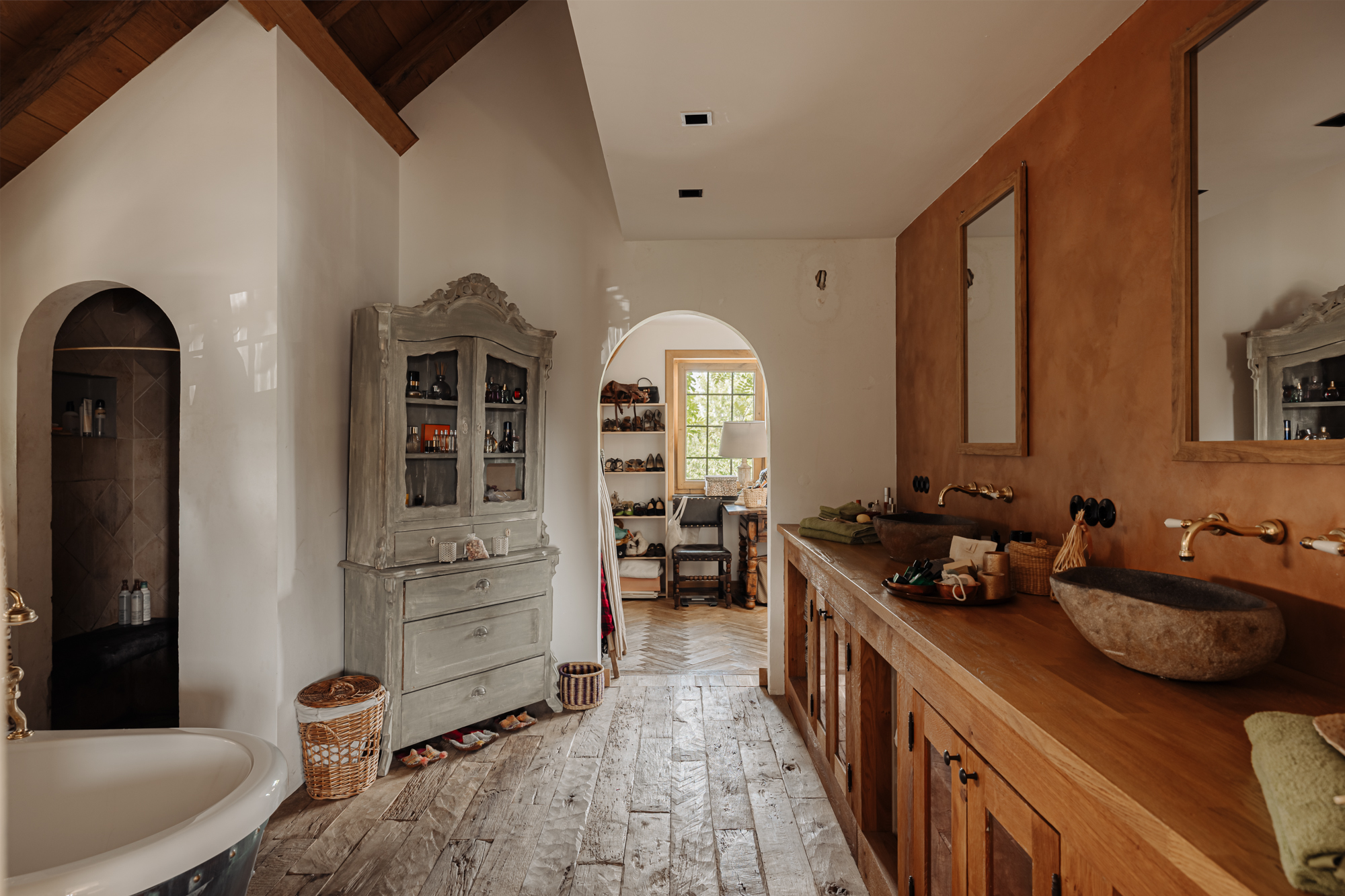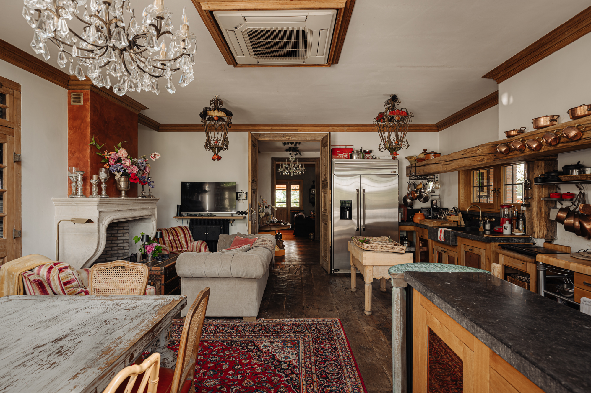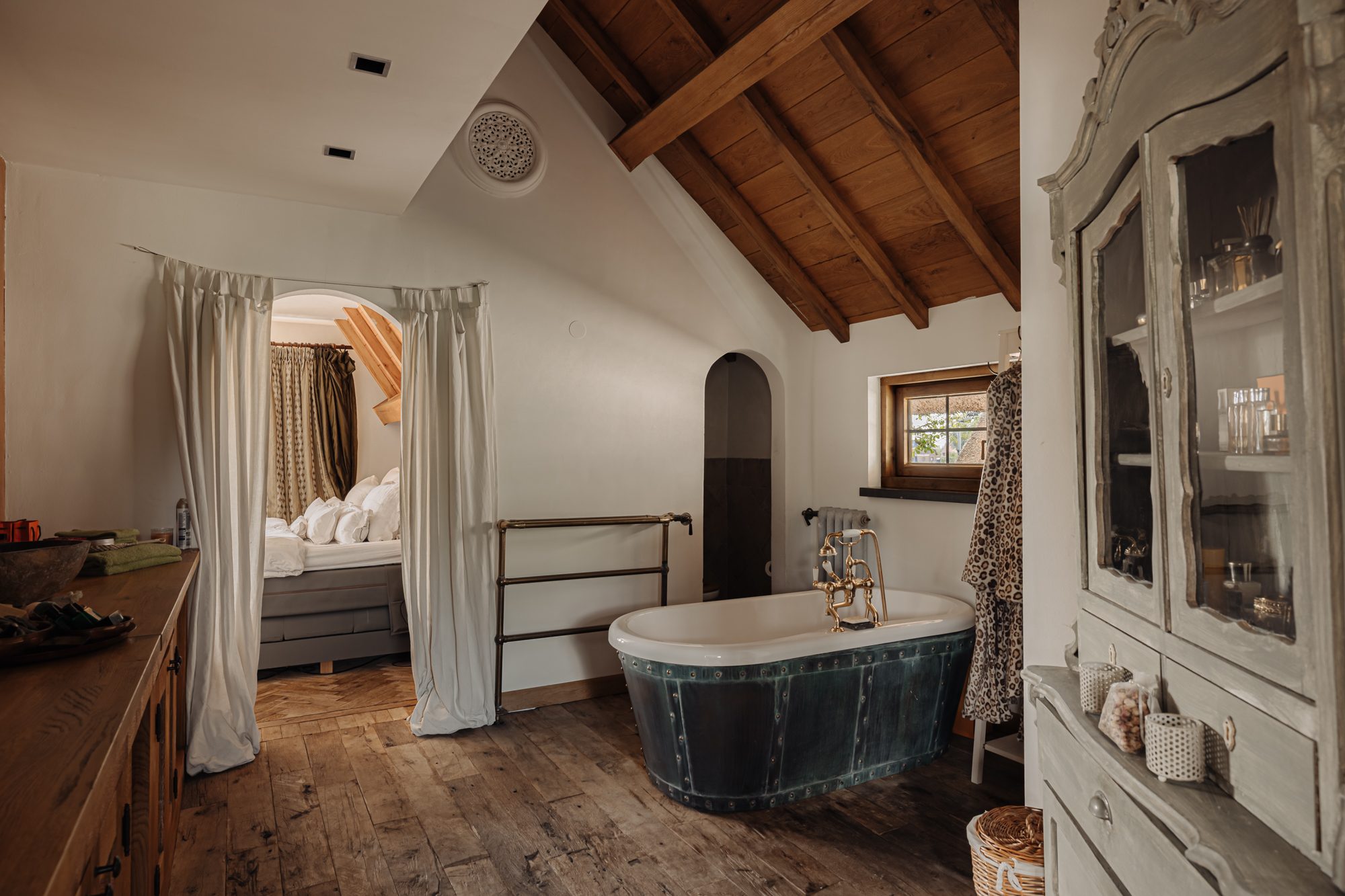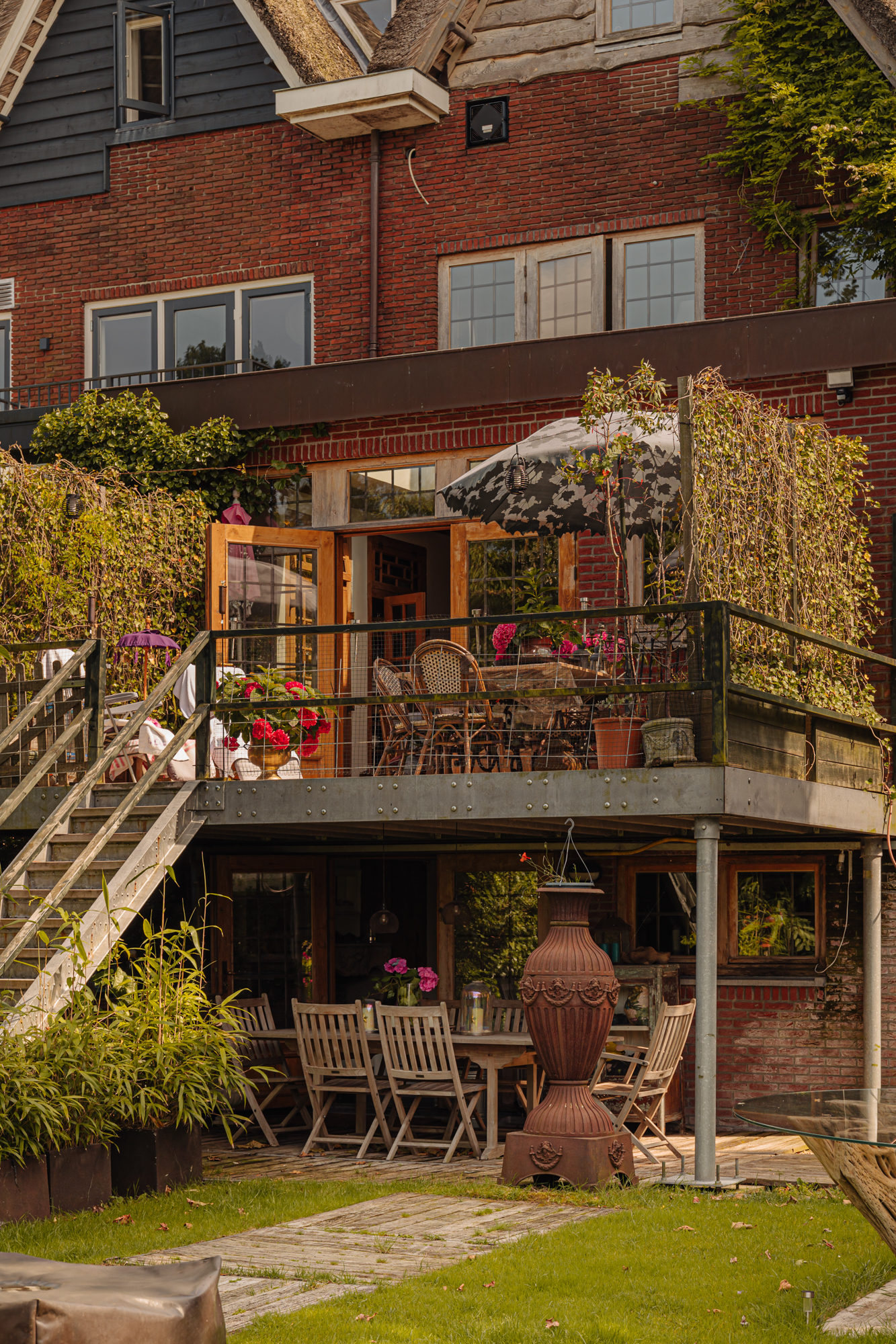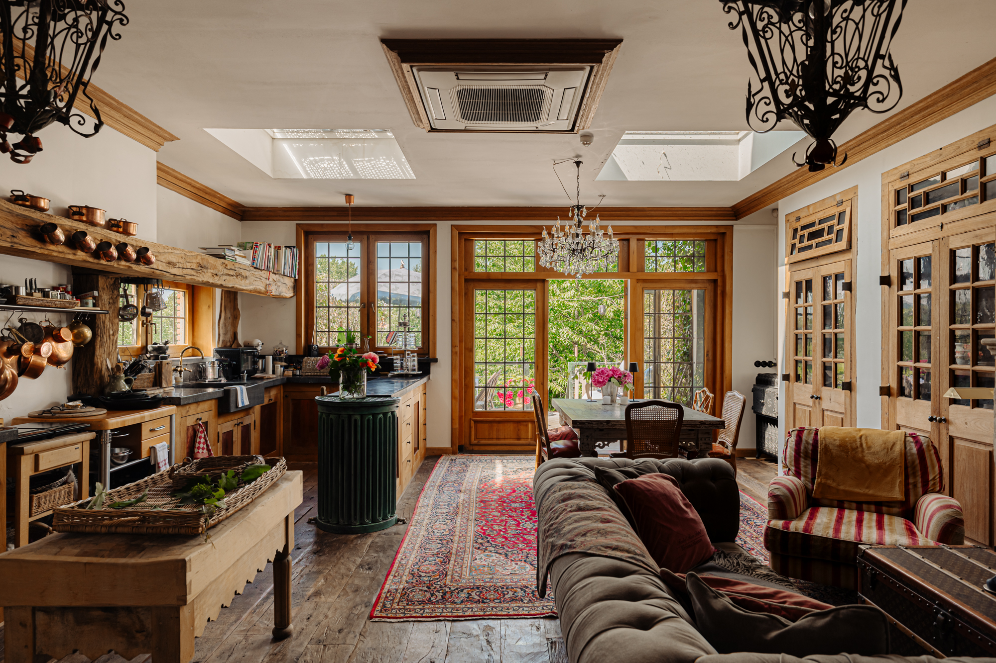 Inside, the house is defined by refined heritage, from stained glass windows originating from the Peace Palace to robust wooden floors reclaimed from historic barracks. Each of the four bedrooms and three bathrooms delivers considered comfort, illuminated by natural light and garden or river views.