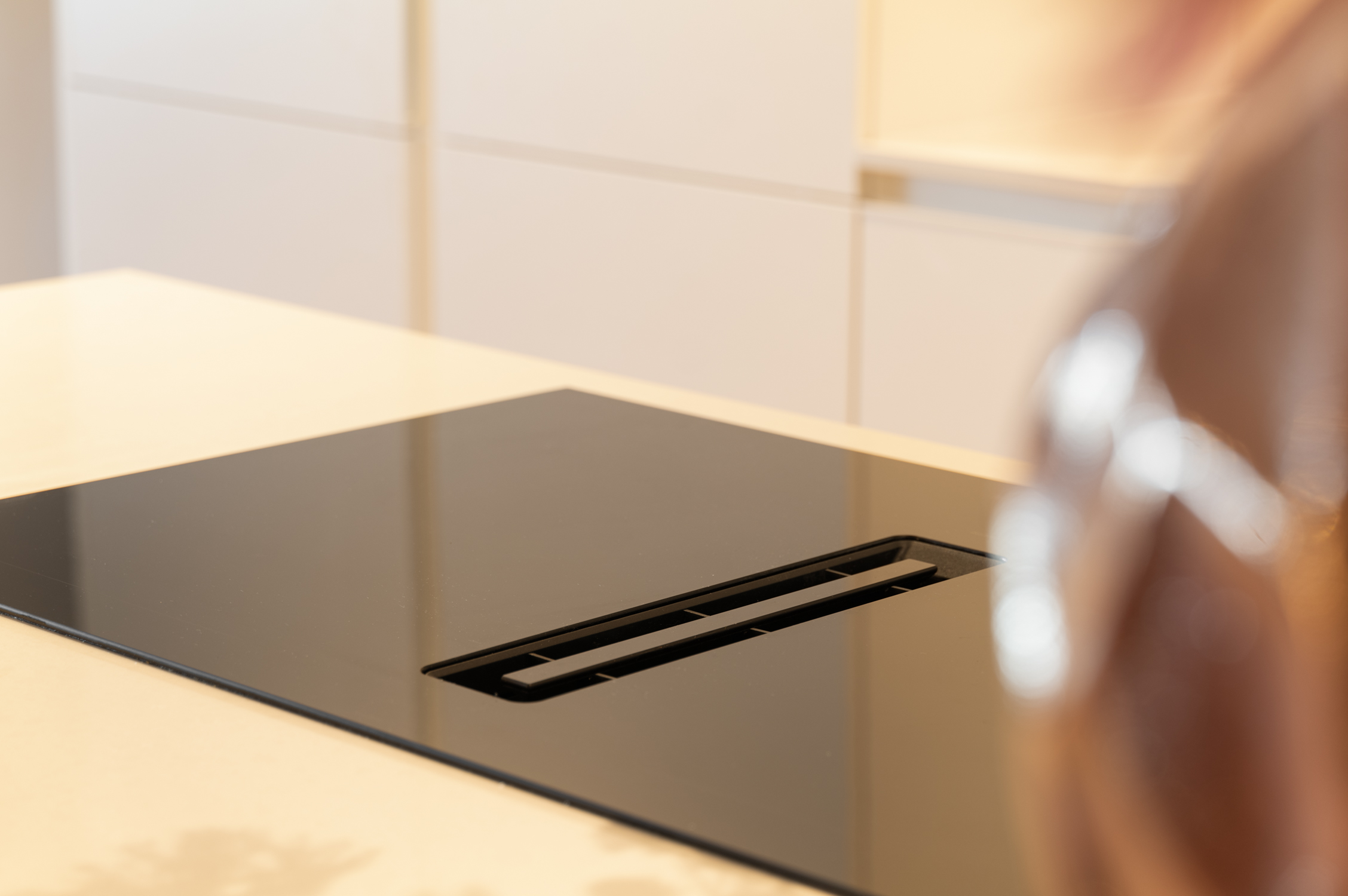 A vast living area of nearly 90 m² integrates a custom-designed lounge, elegant dining zone, and modern open kitchen equipped with premium appliances and a generous island. Light flows in through expansive windows, connecting the living spaces to a private garden at the front and a wide terrace stretching the full width of the apartment at the rear.