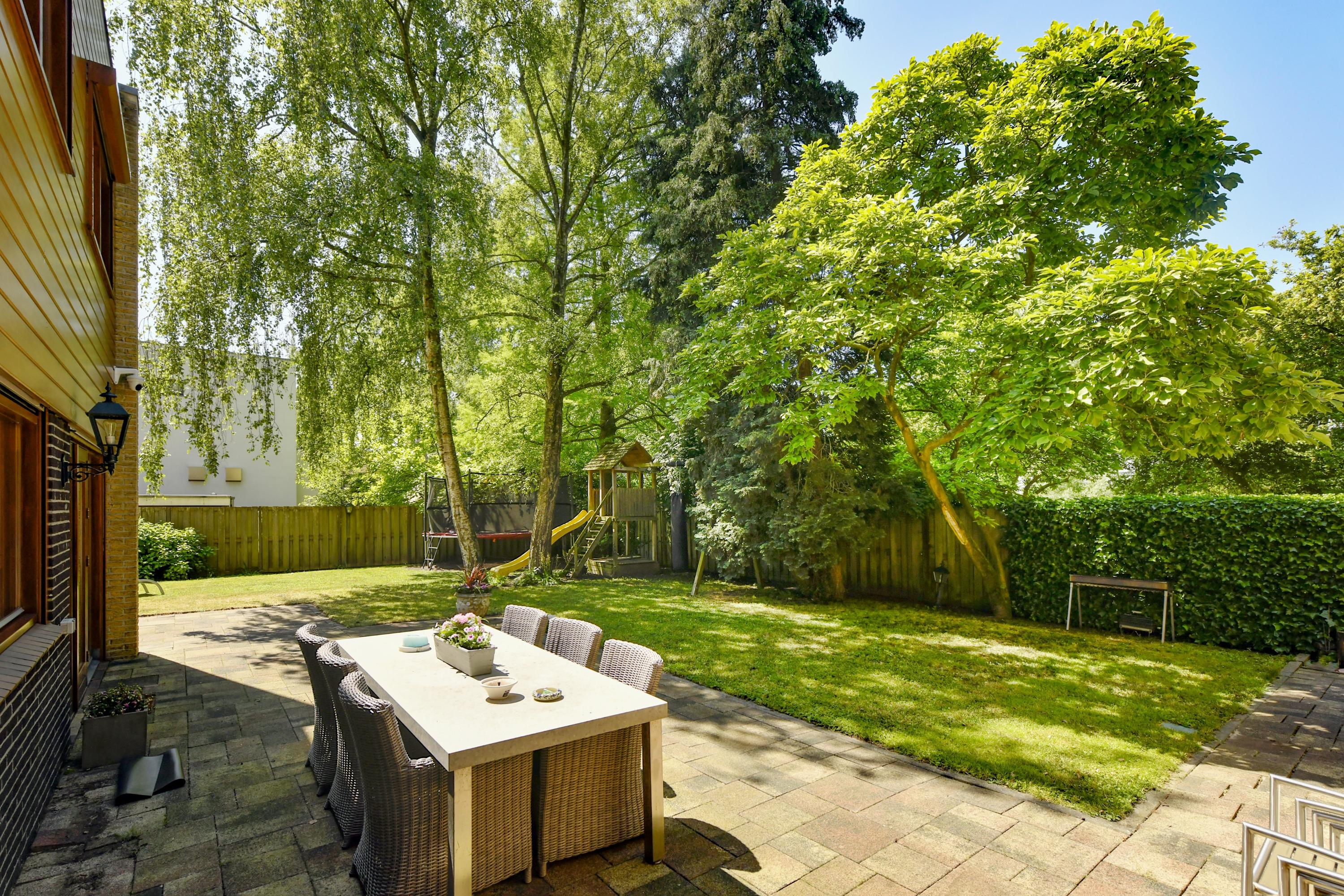 The generous rear garden faces southwest and borders directly onto open water. It is a wonderful place to enjoy the sun, peace and views over the surrounding greenery. There is plenty of space for a lounge area, dining table and play area. At the front of the property there is room for several cars on private grounds.