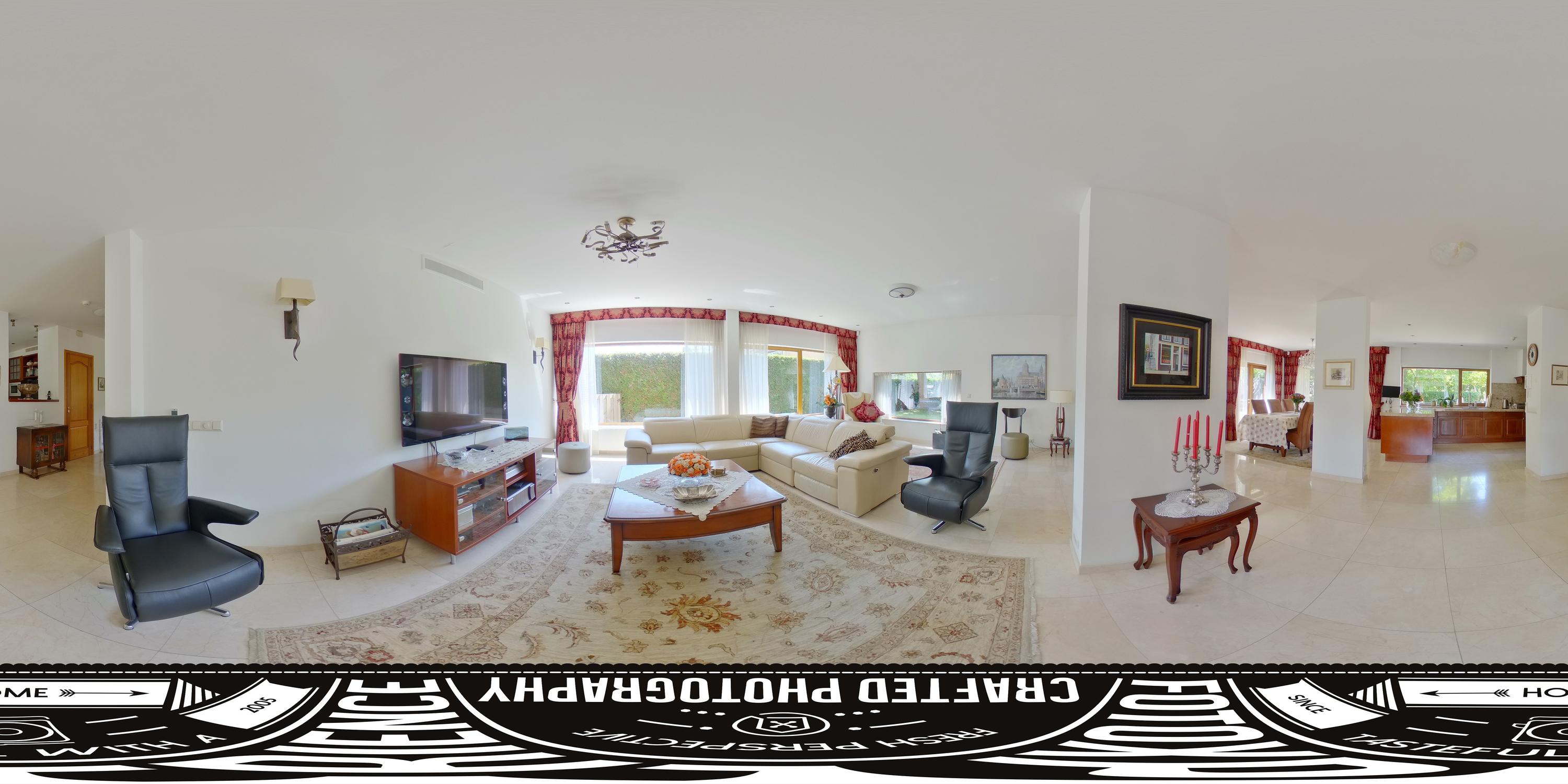 Through the broad front door you enter the spacious hallway with cloakroom and toilet. From here you walk through an open connection into the living room with open-plan kitchen. The bright living room extends across the full width of the house and features large windows and French doors opening onto the garden. Its southwest orientation allows you to enjoy natural light throughout the day as well as beautiful views of the garden.