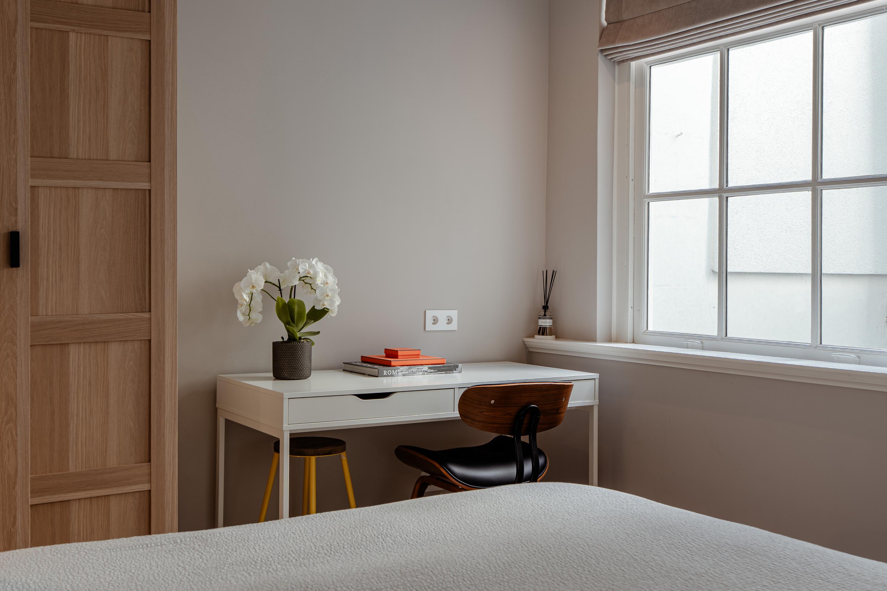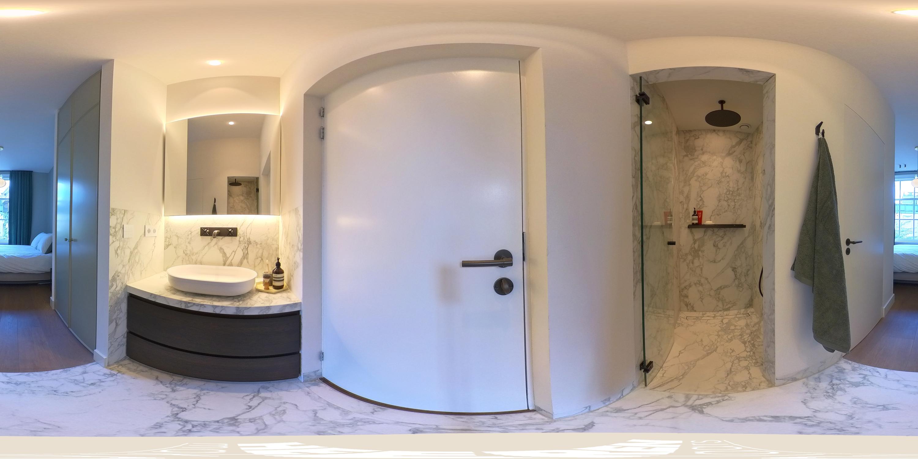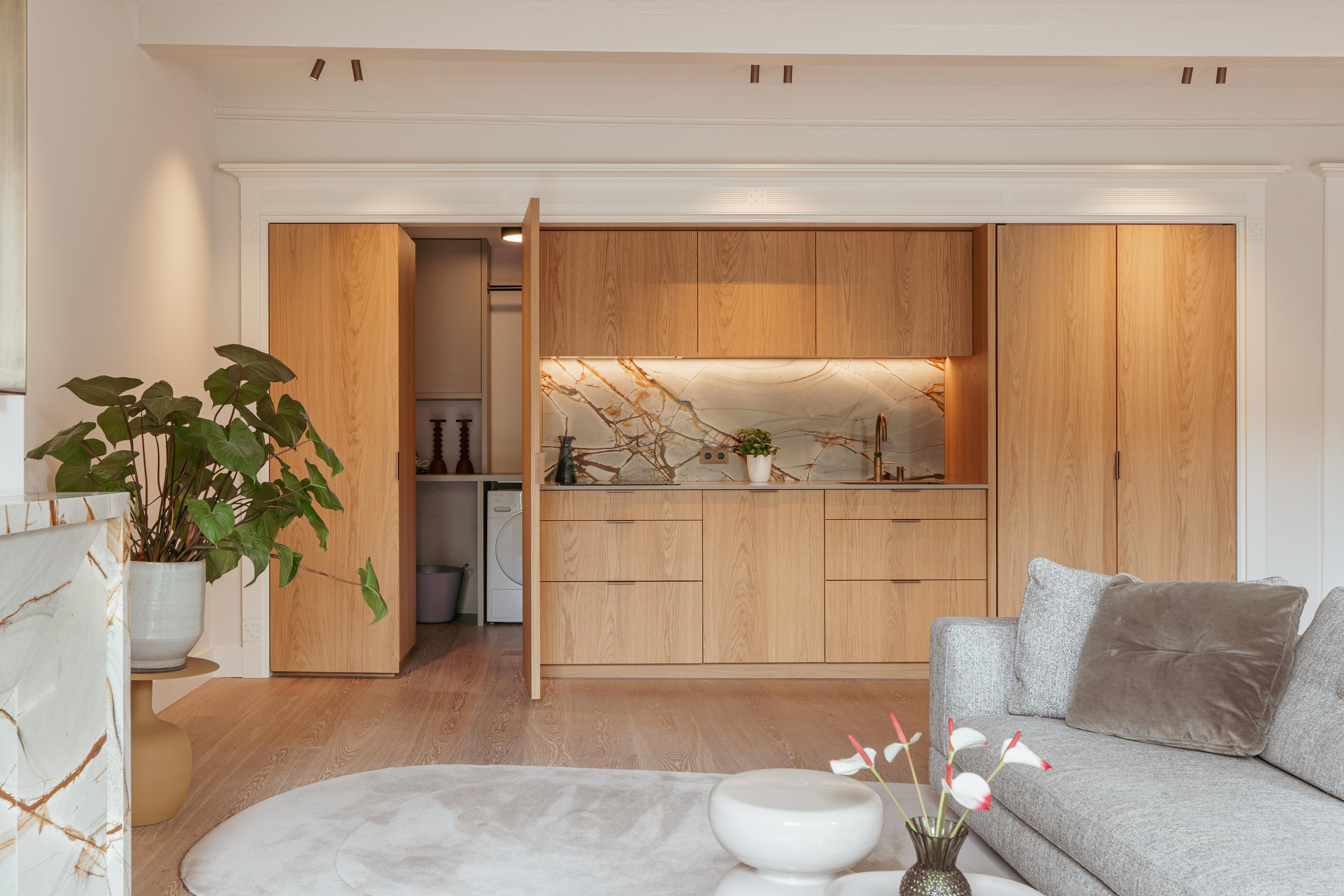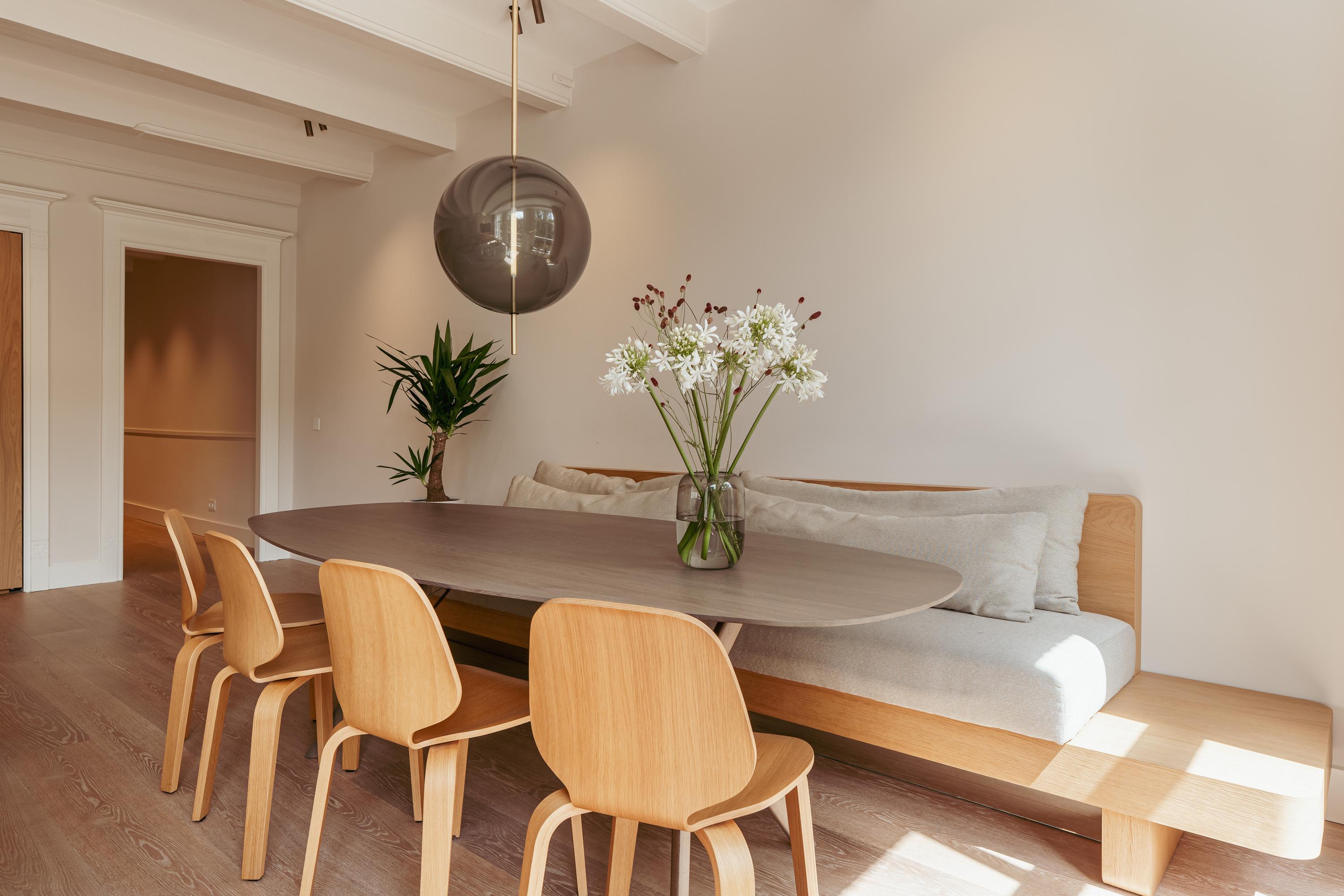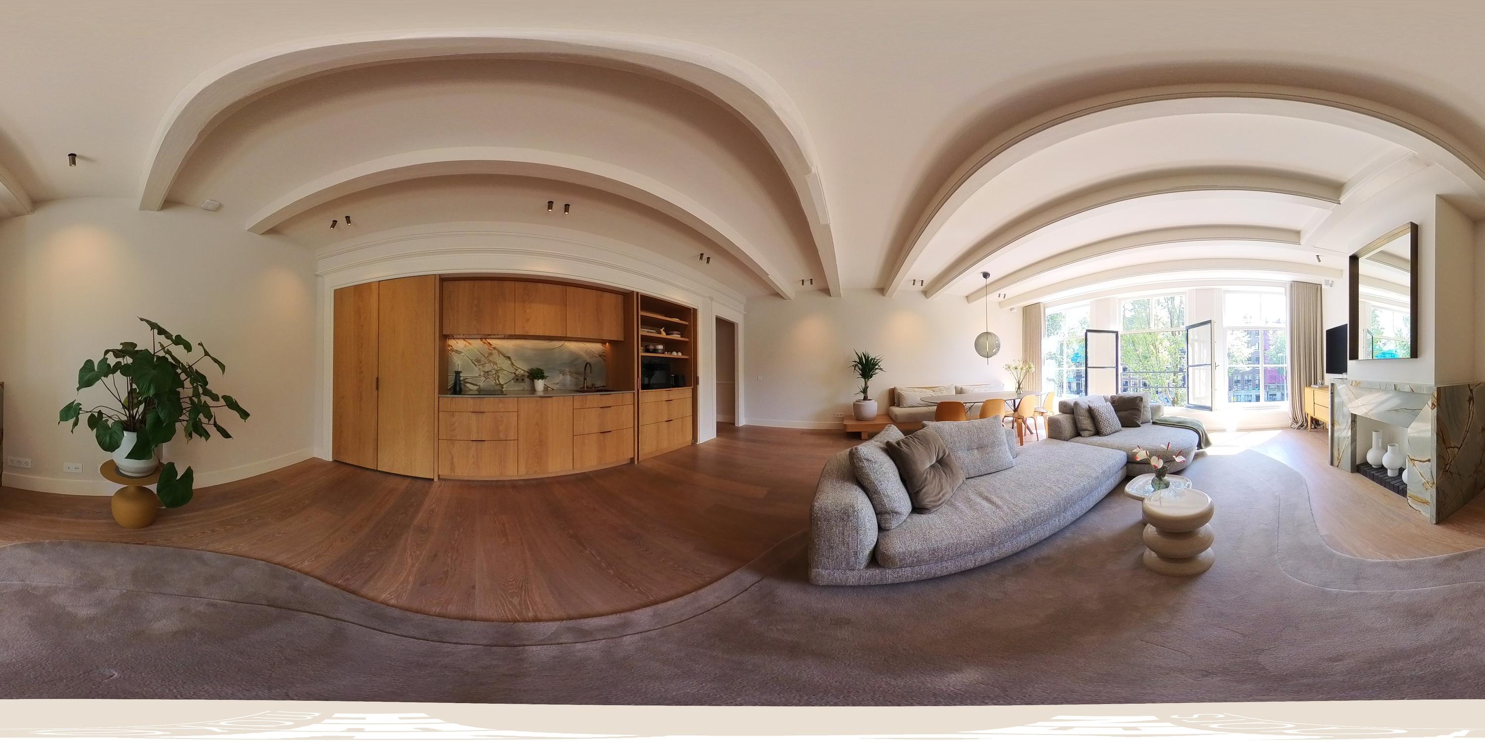 Middels het gemeenschappelijke trappenhuis bereikt u de entree van dit indrukwekkende appartement. De woning is in 2022 volledig en hoogwaardig verbouwd door architecten, waarbij klassieke details en moderne luxe op sublieme wijze zijn gecombineerd. Dankzij de aanwezigheid van onder meer domotica en vloerverwarming is het wooncomfort van een hoog niveau.