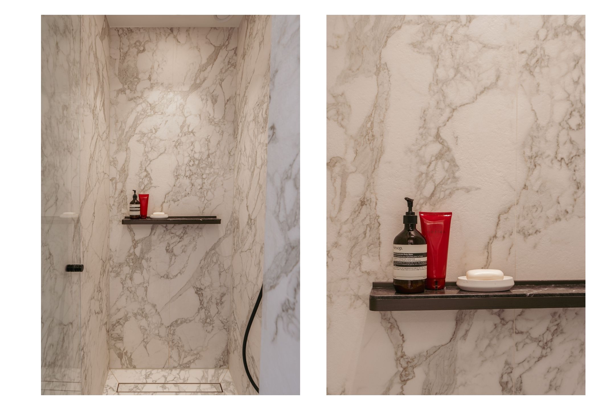 Aan de voorzijde bevindt zich de prachtige en breed opgezette woonkamer met grote raampartijen en fenomenaal uitzicht over de Herengracht. De ruimte wordt gekenmerkt door veel lichtinval en een bijzonder detail: de schouw en de achterwand in de keuken zijn uitgevoerd in hetzelfde kleurrijke marmer, wat zorgt voor een luxe en stijlvolle uitstraling.