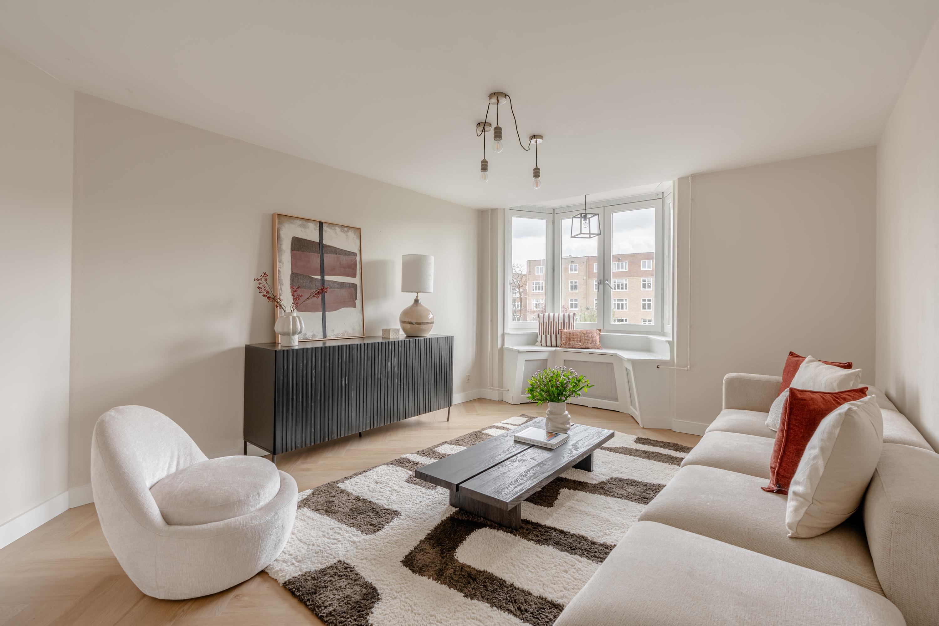 This apartment (approx. 113 sqm) is situated along the water of the Amstelkanaal, on the border of De Pijp and the Rivierenbuurt, with all amenities within easy reach. This spacious and well-finished apartment, spread over two floors, offers comfortable living and features, among other things, an attractive living room with a bay window, a bright kitchen with balcony, and no fewer than four (bed)rooms. The lively Albert Cuyp Market, a wide range of restaurants and cafés, green parks, and excellent public transport connections are all located nearby.