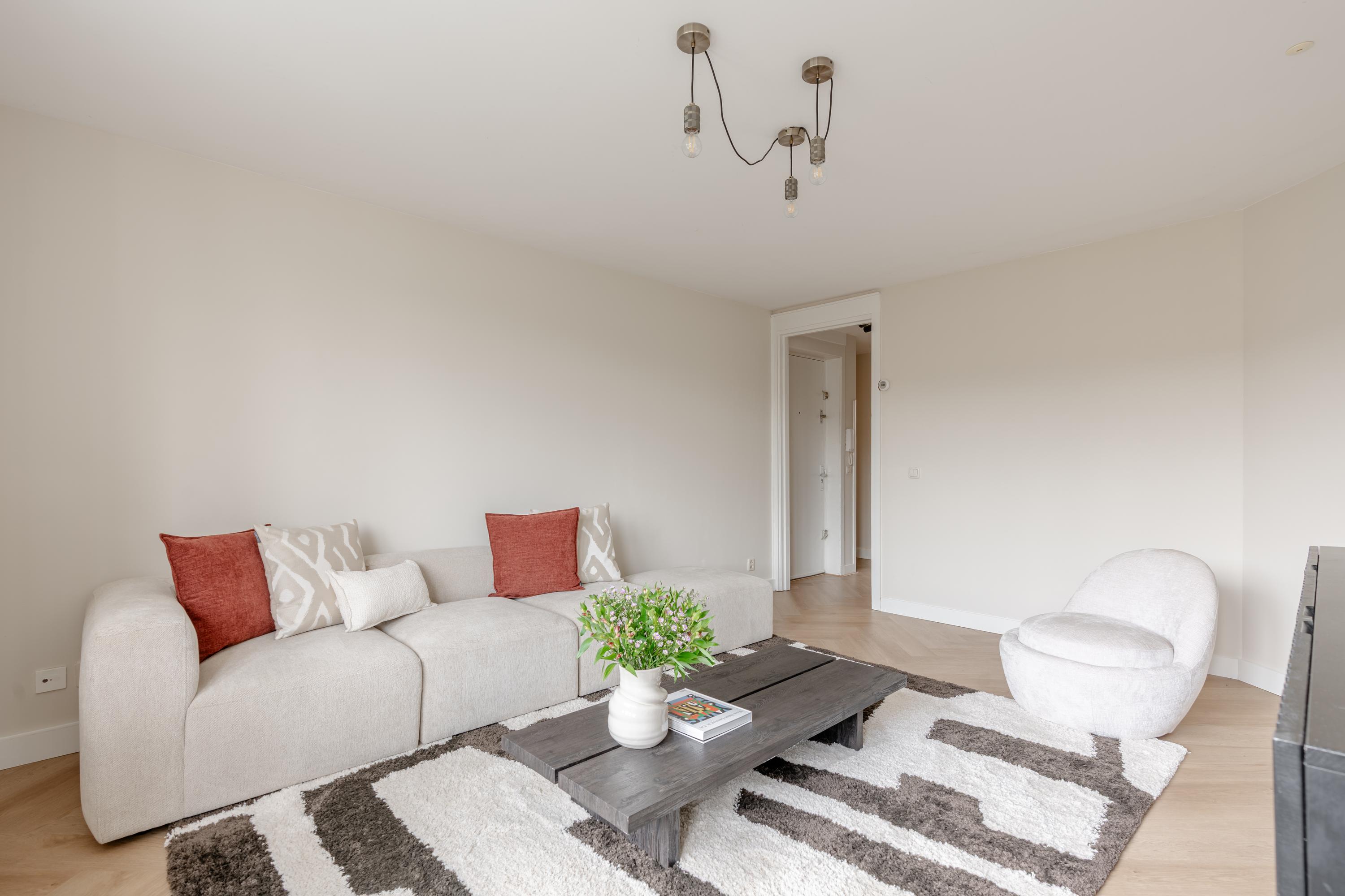 Via the communal staircase, you reach the apartment on the second floor, where the first level of the property is located. You enter a central hallway that provides access to all rooms. The apartment is neatly and stylishly finished, with well-maintained flooring and wall finishes.