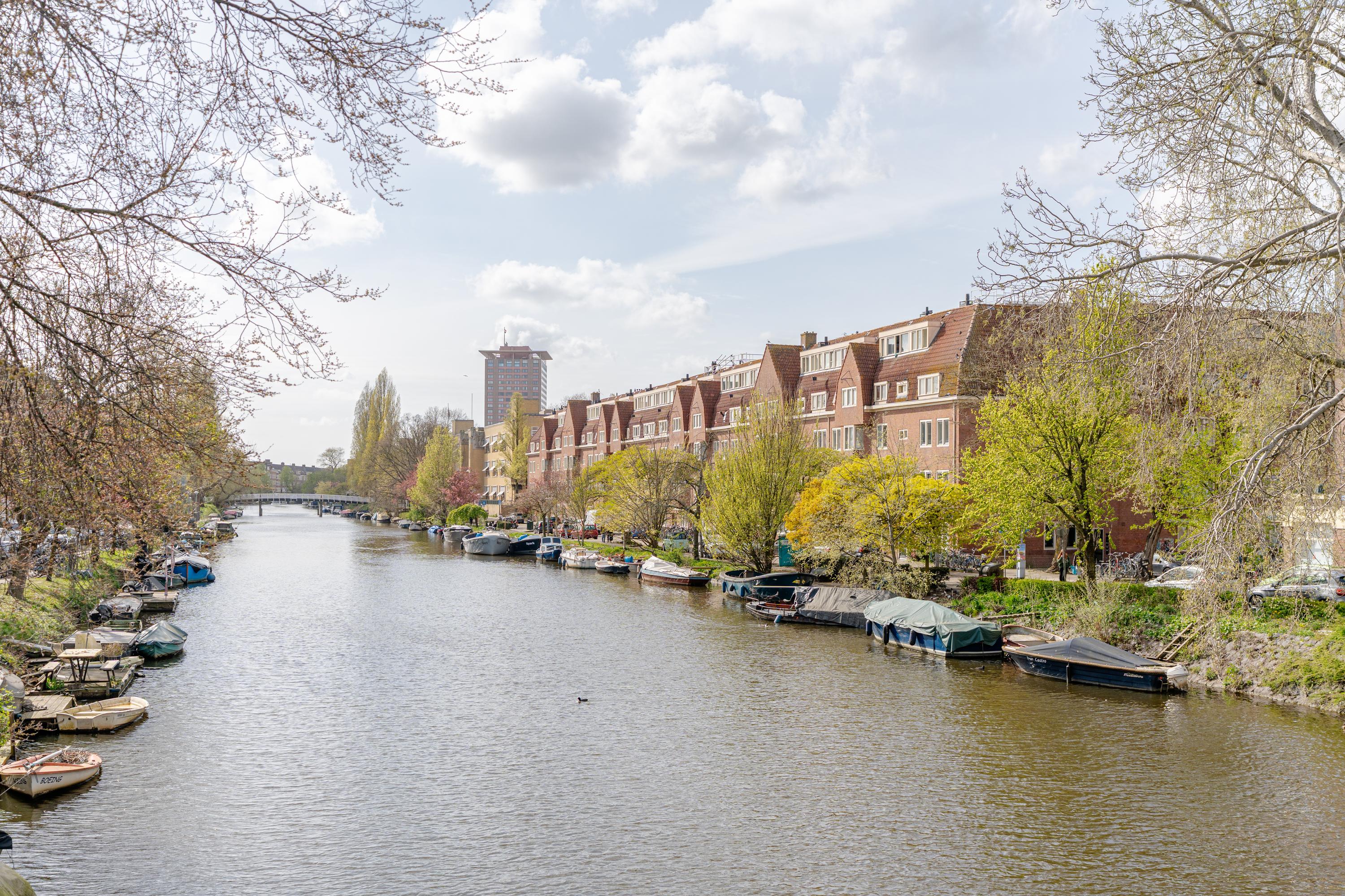The immediate surroundings are characterized by a mix of popular neighborhoods. On one side lies De Pijp, known for its bustling streets such as Ferdinand Bolstraat and the Albert Cuyp Market, where there is a daily buzz of activity and hospitality venues. On the other side, the quay borders the Rivierenbuurt, which is known for its wider streets, quieter atmosphere, and various local shops and cafés. Residents can enjoy the liveliness within minutes, while living on a relatively calm waterfront with views over the water. Green spaces are also nearby, including Sarphatipark and Martin Luther King Park along the Amstel, making the area attractive for recreation and relaxation.
