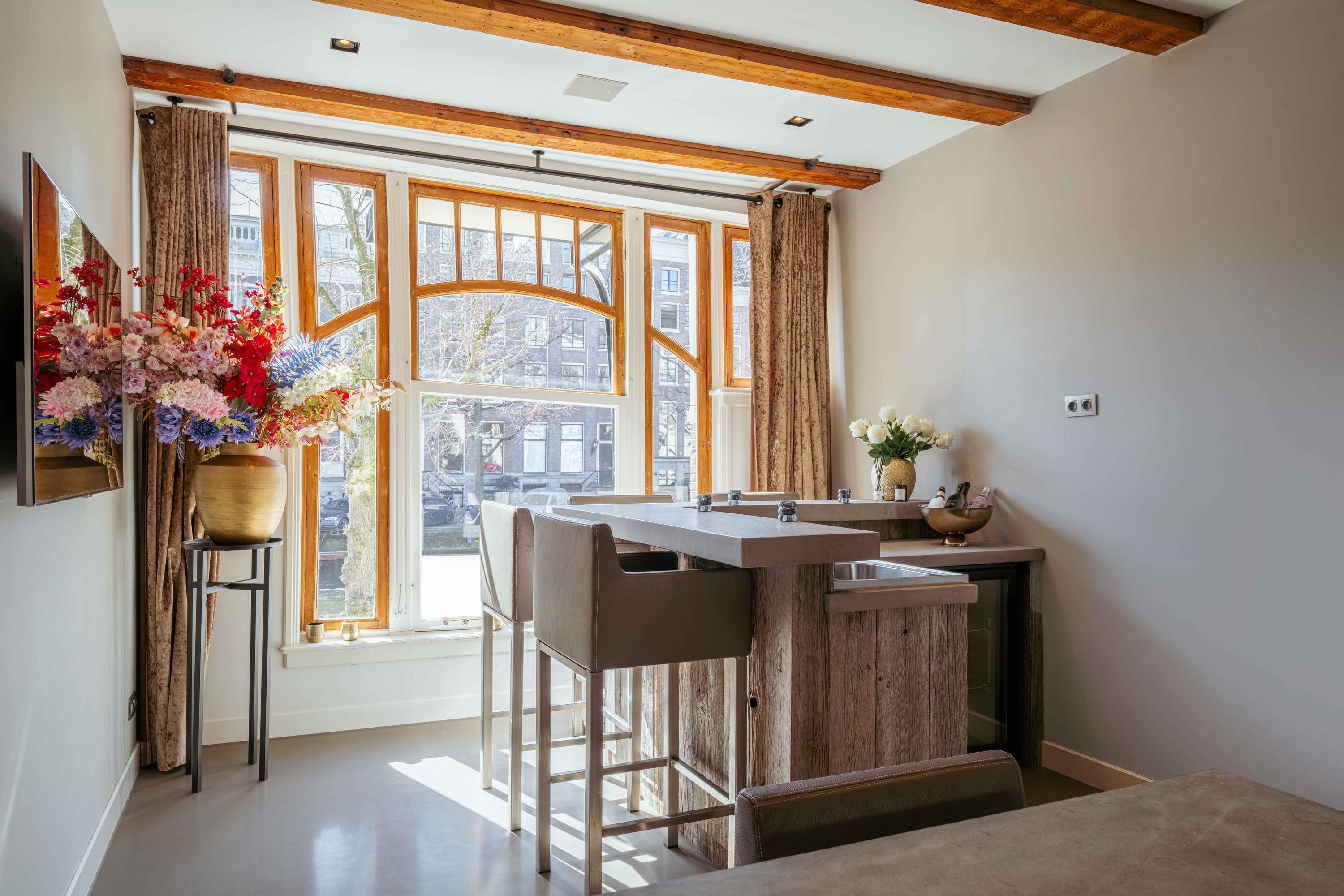 This unique canal side property is located on one of the wide main canals between the Vijzelstraat and the Reguliersgracht and lies on one of the most beautiful spots within the Amsterdam ring of canals, surrounded by many art galleries, international museums, outstanding restaurants, welcoming lunch bars and coffee places. The Utrechtsestraat, the Amstelveld, Vondelpark, Artis and the Amstel are also all within walking distance.