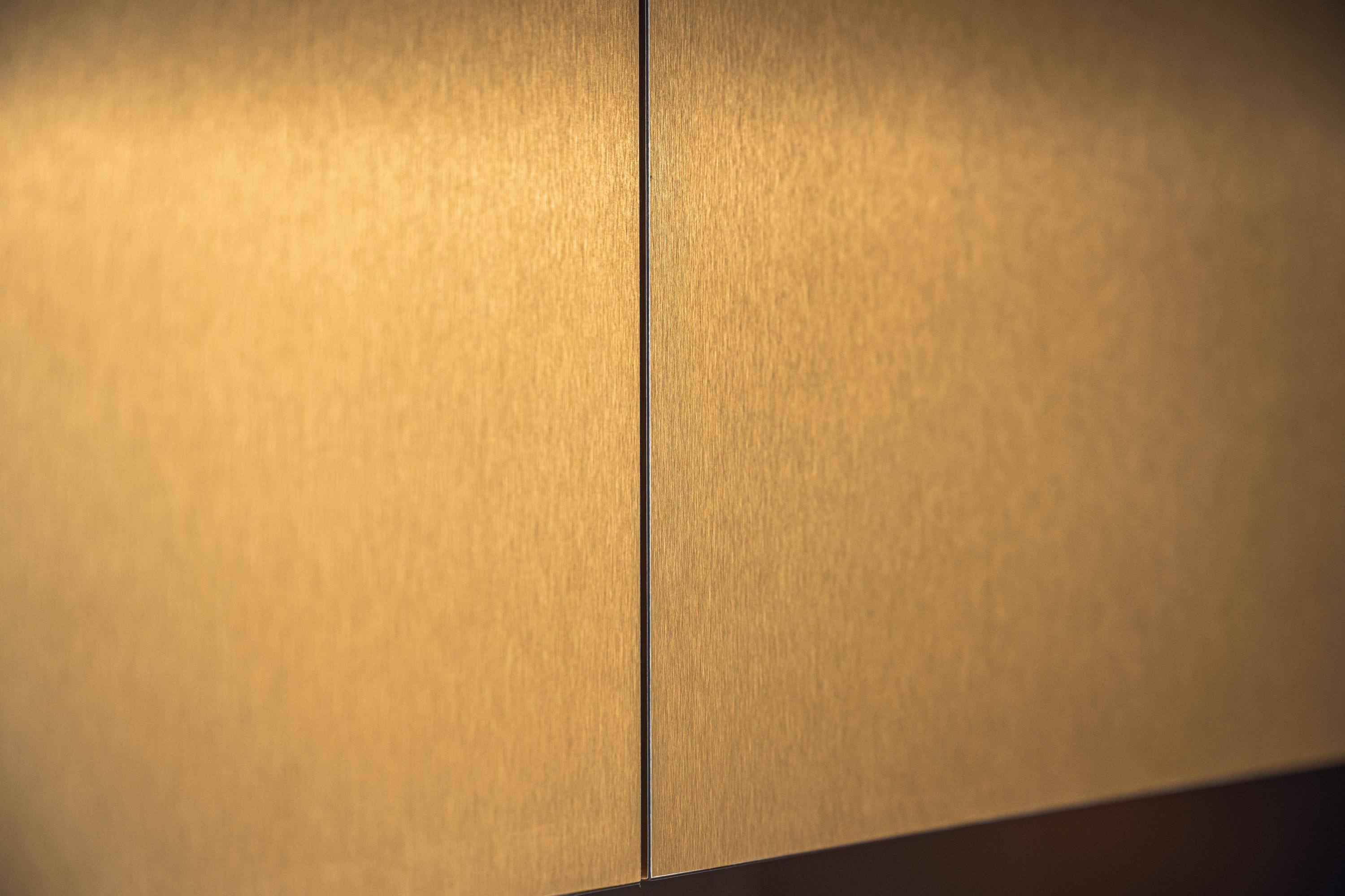 At the rear is the modern kitchen, finished in a gold-toned color that contrasts beautifully with the warm wooden flooring and neutral walls. The kitchen is equipped with high-quality Miele built-in appliances, Quooker, Bora induction cooktop, and offers ample cupboard space. With its open connection to the living room, the space remains light and inviting—perfect for those who enjoy cooking and entertaining.