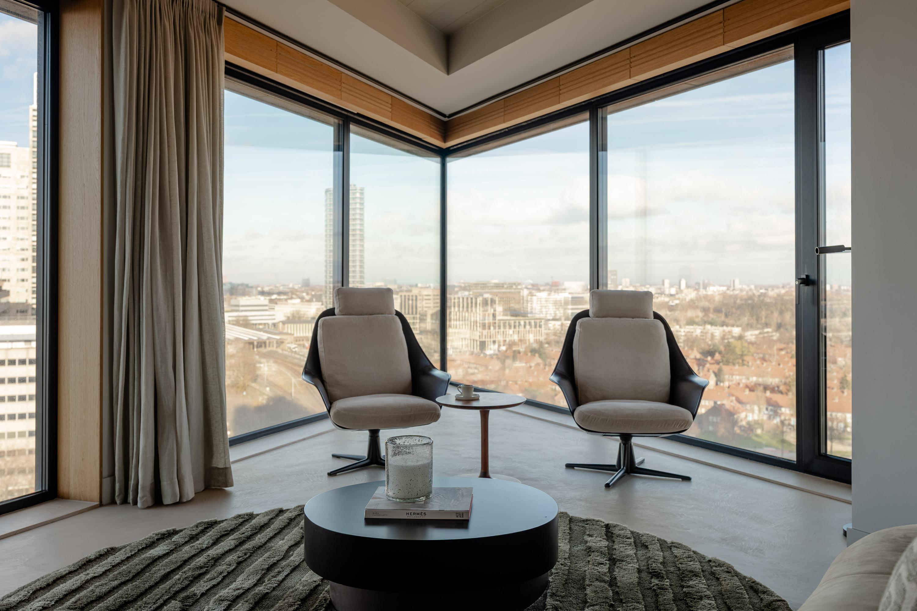 A modern apartment of approximately 157 m², located on the 13th floor. The property features three bedrooms, a covered balcony, an A++ energy label, an external storage unit, and a private parking space equipped with a charging station, as well as truly spectacular views over the city.