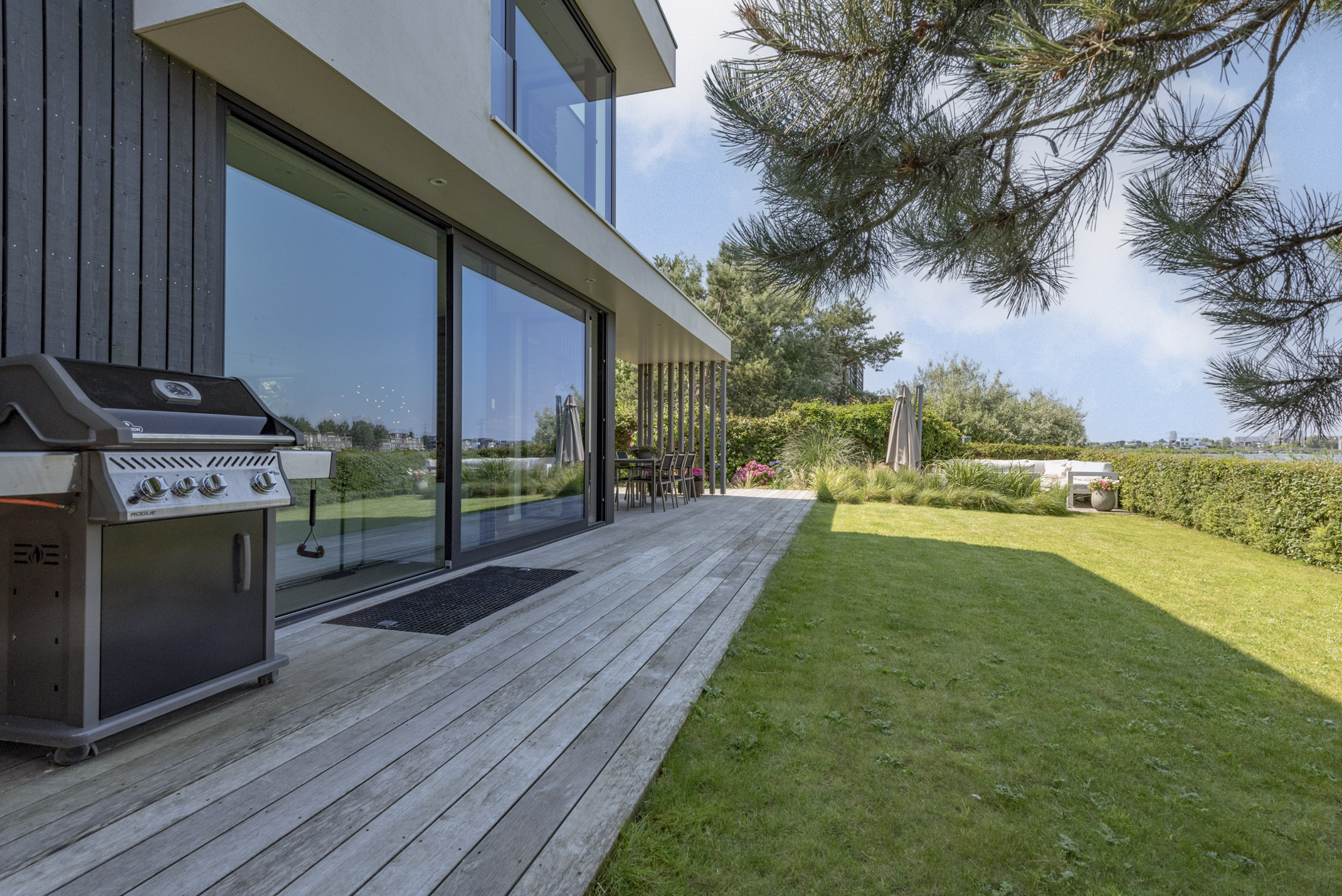 This dream villa exceeds all expectations with panoramic views from every floor over the water, a sensational rooftop terrace, 7 (bed)rooms, 3 luxurious bathrooms, an integrated garage and parking space for 4 or 5 cars on private grounds.