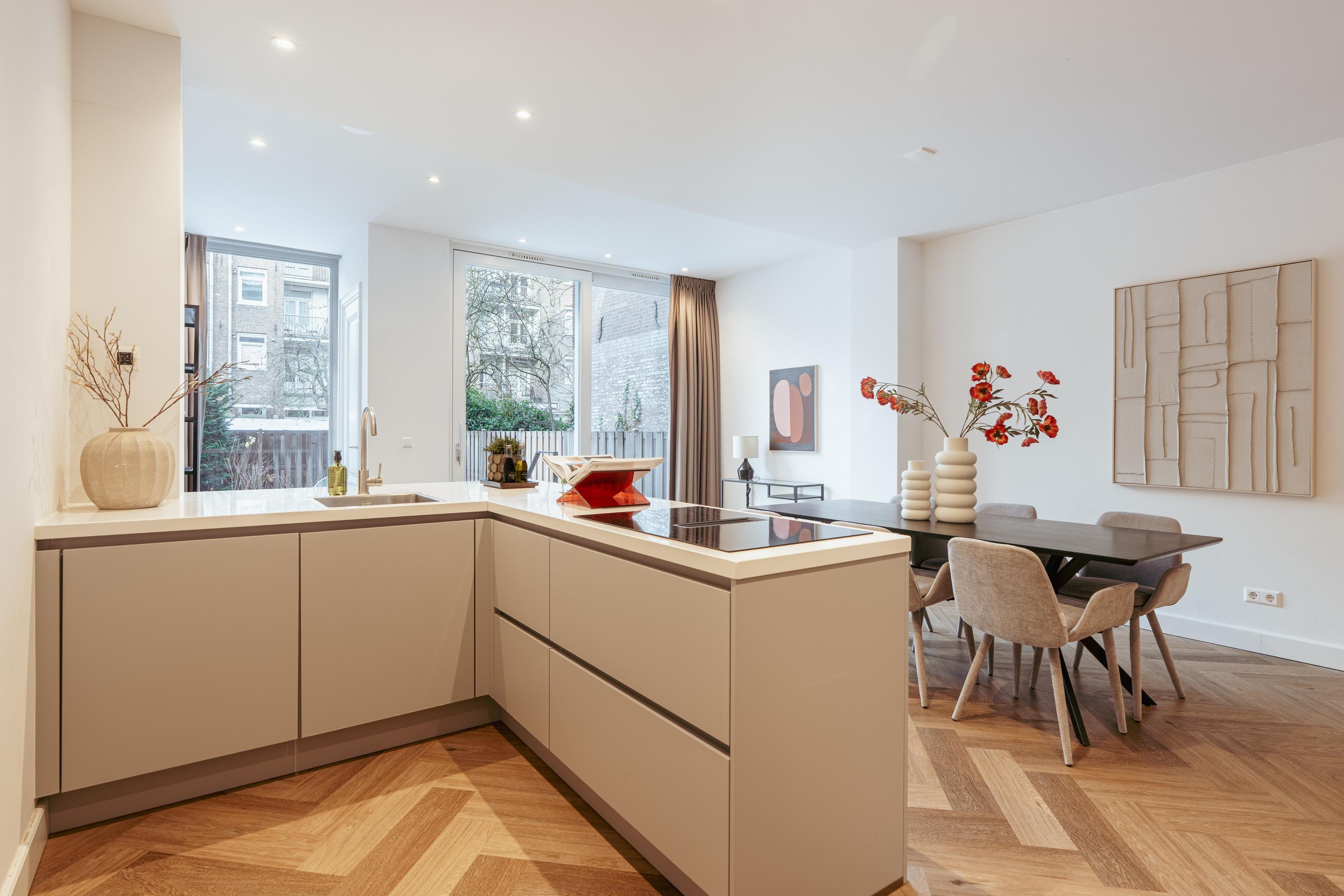 Stylish and recently renovated double ground-floor apartment (approx. 131 m²), ideally located in the heart of Amsterdam’s vibrant De Pijp district. This comfortable home features a modern finish, a practical layout, and a spacious feel throughout. With three bedrooms, two bathrooms, a generous living area, and a large garden, it offers the perfect residence for families or a luxurious pied-à-terre in one of the city’s most sought-after locations.