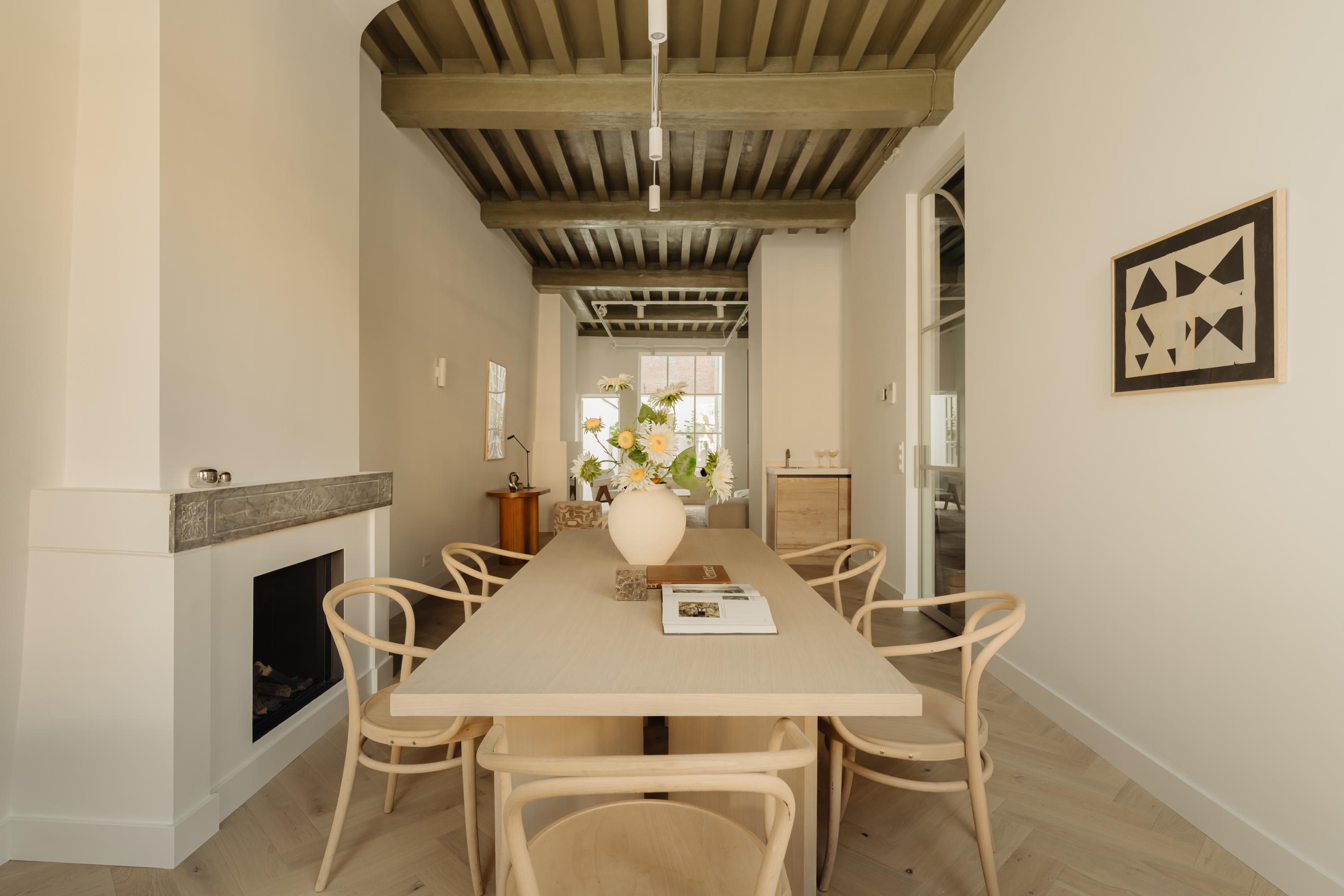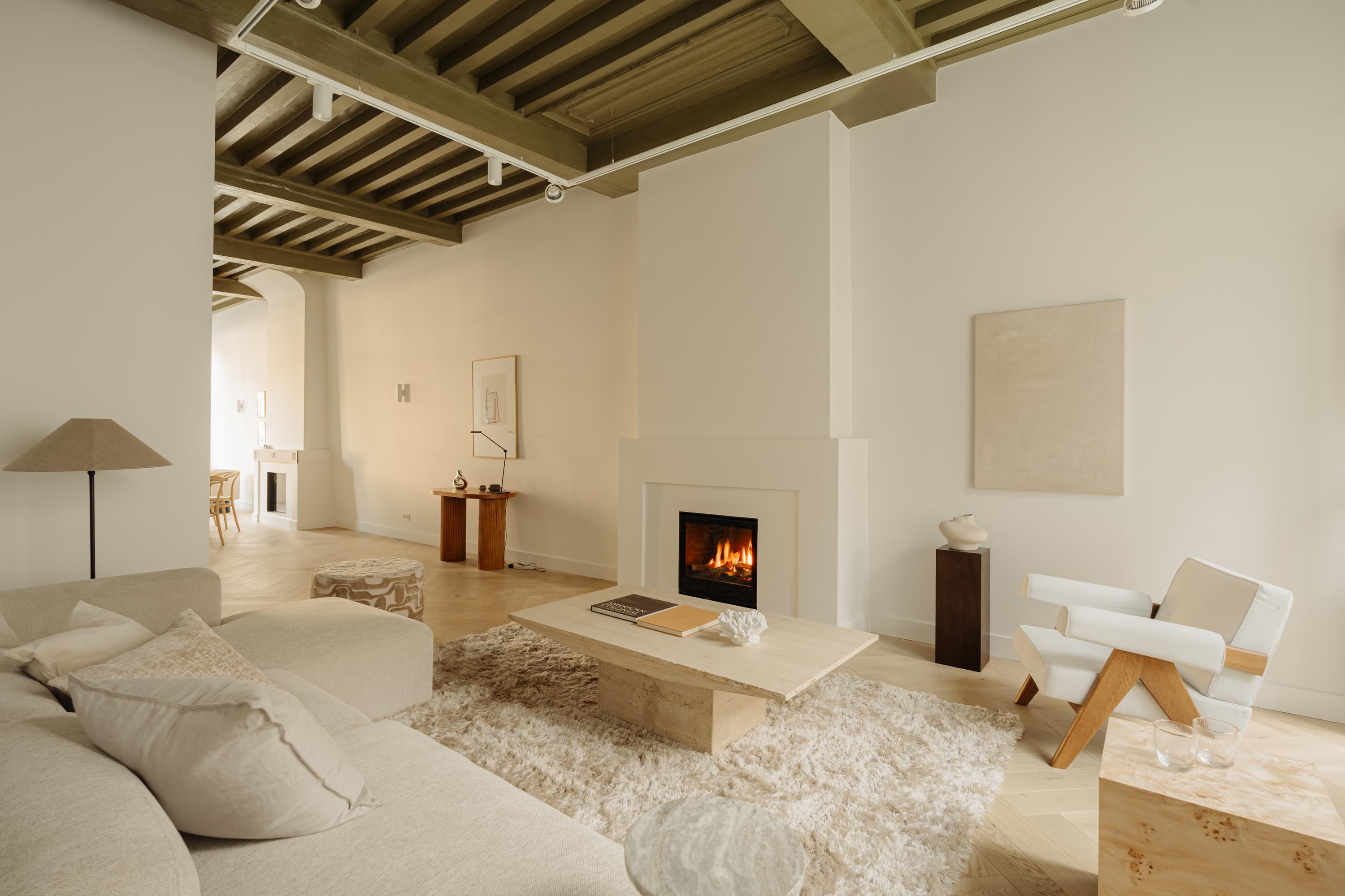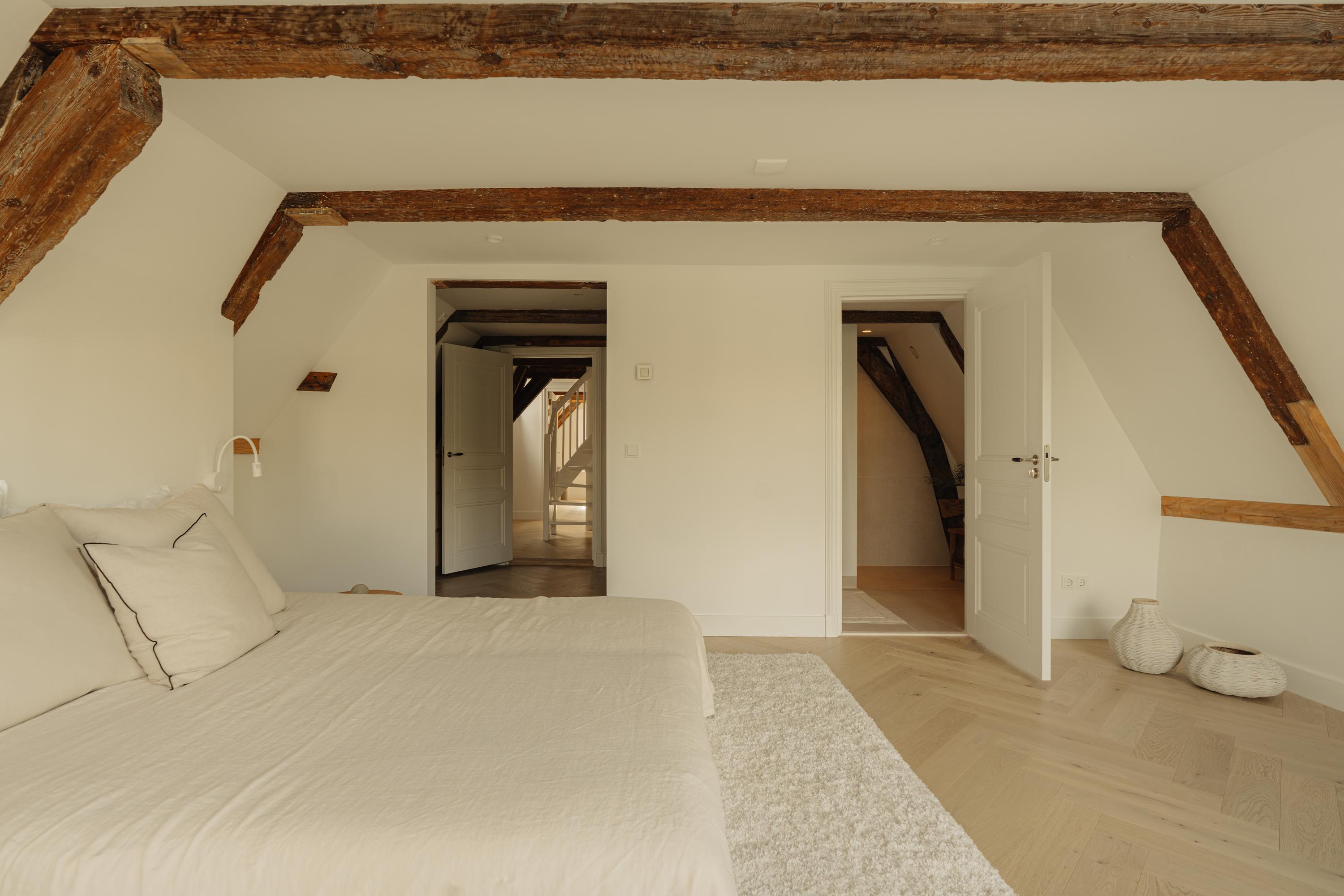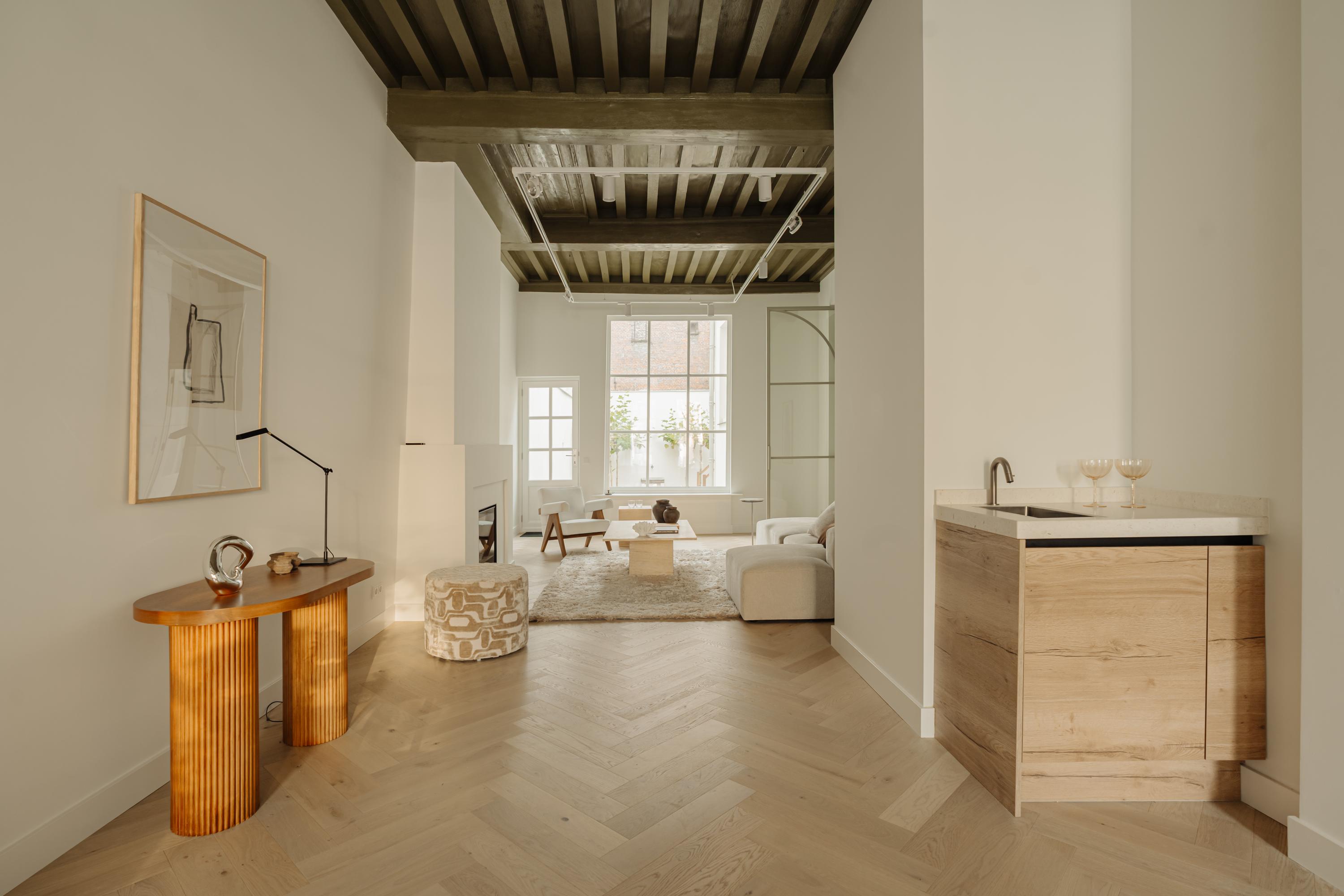 The property has been meticulously renovated with great attention to detail and respect for its original architecture. Exposed beams, high ceilings, and large windows recall the building’s historic character, while bespoke craftsmanship, natural materials, and serene finishes create an atmosphere of modern luxury.