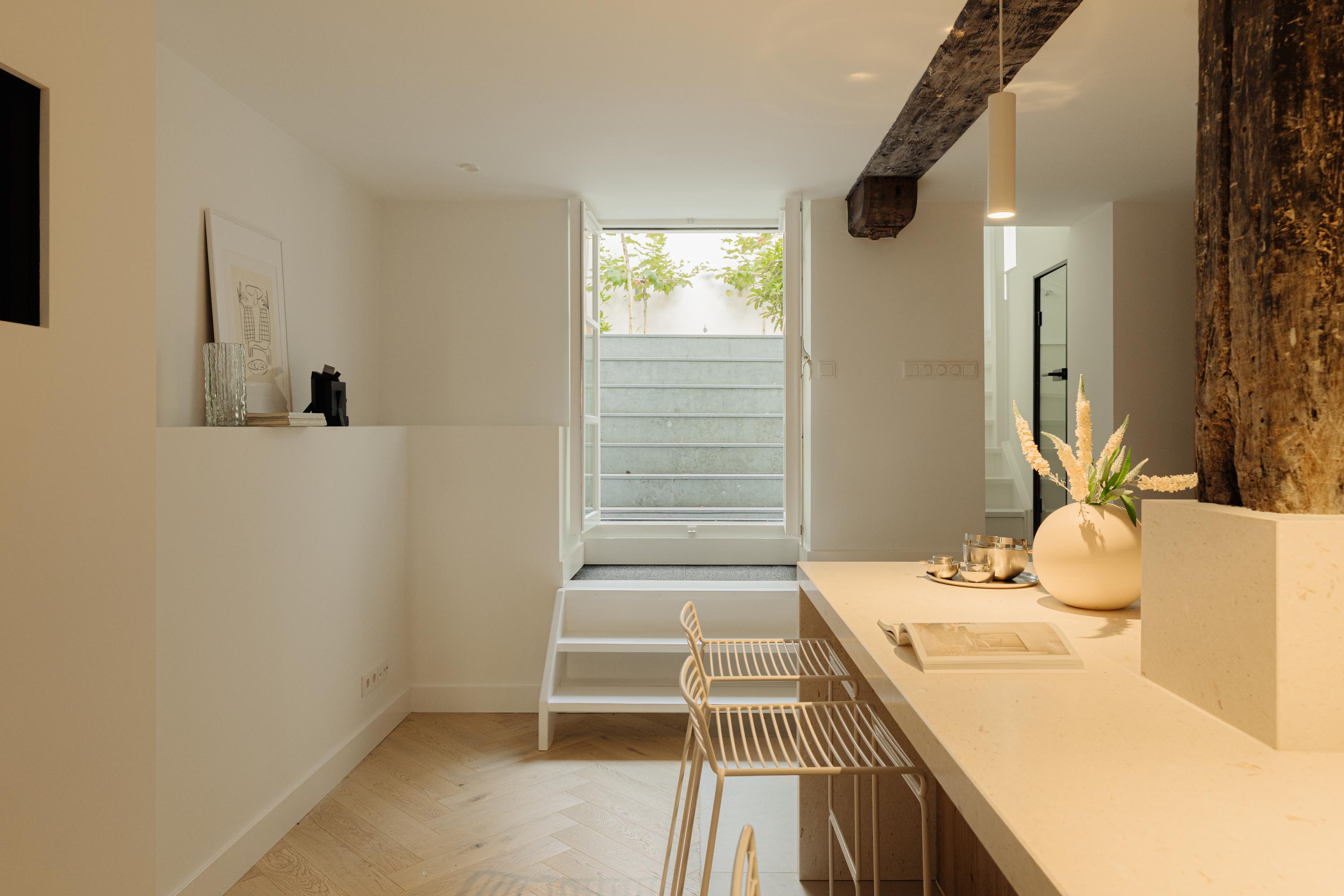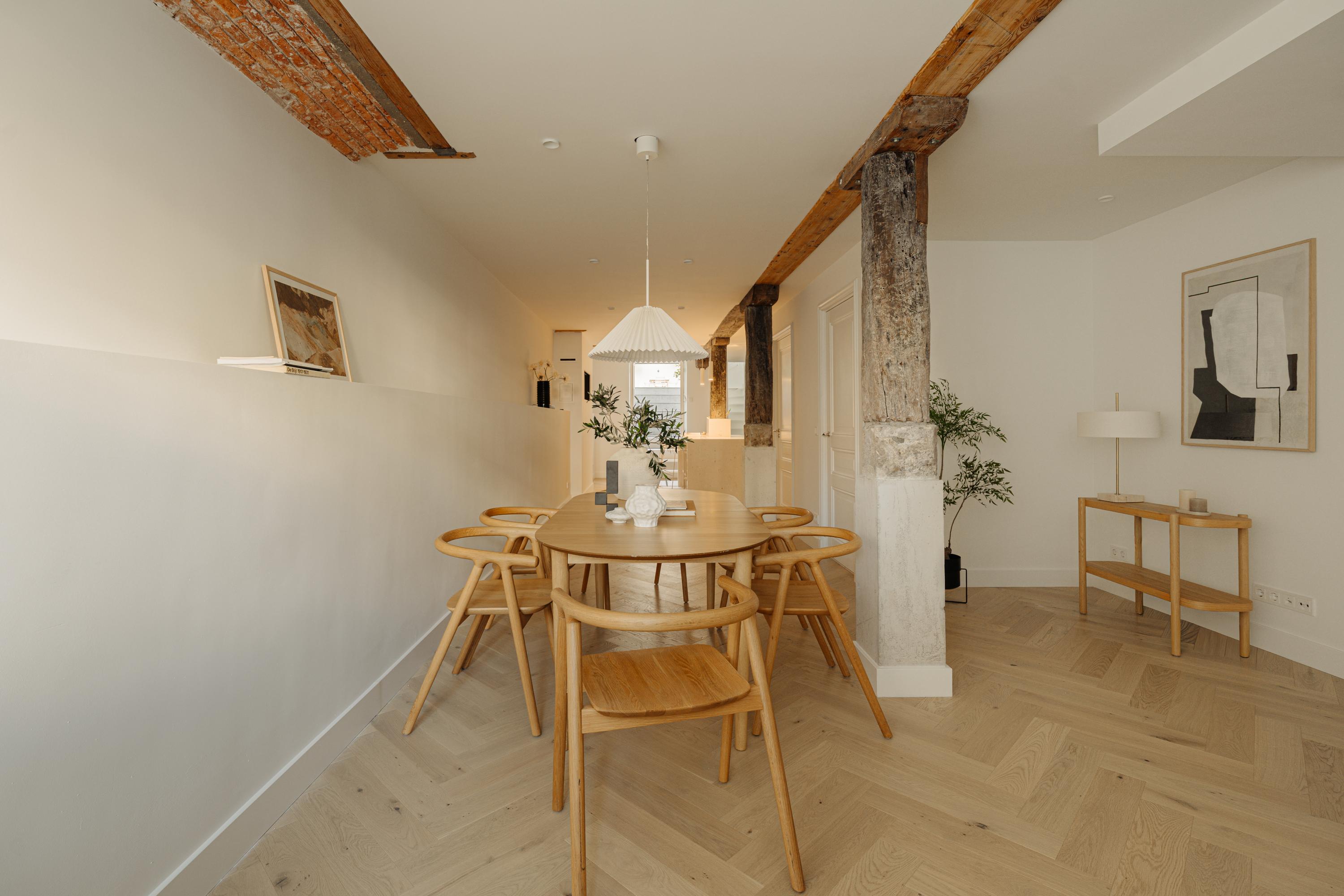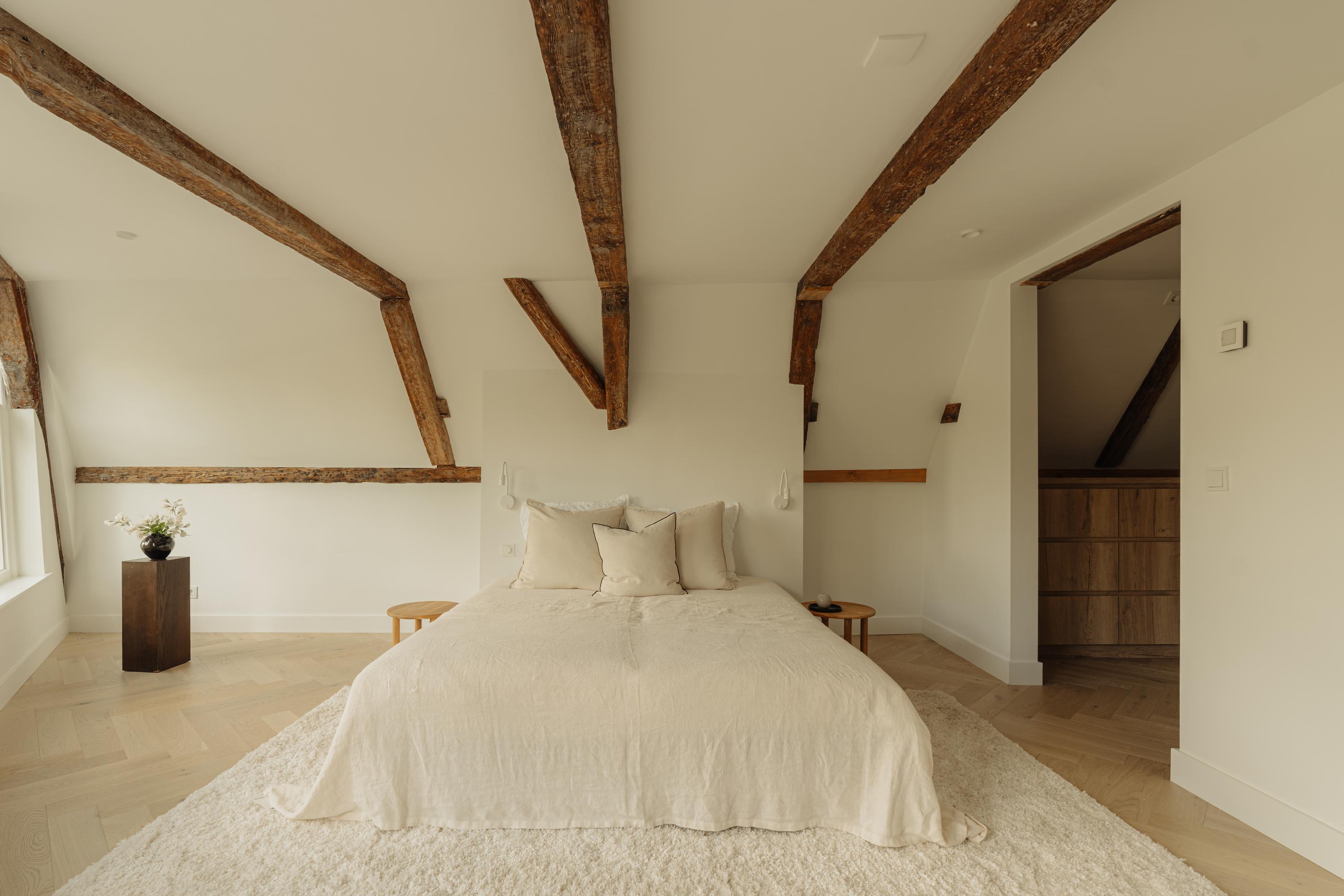 The property has been meticulously renovated with great attention to detail and respect for its original architecture. Exposed beams, high ceilings, and large windows recall the building’s historic character, while bespoke craftsmanship, natural materials, and serene finishes create an atmosphere of modern luxury.