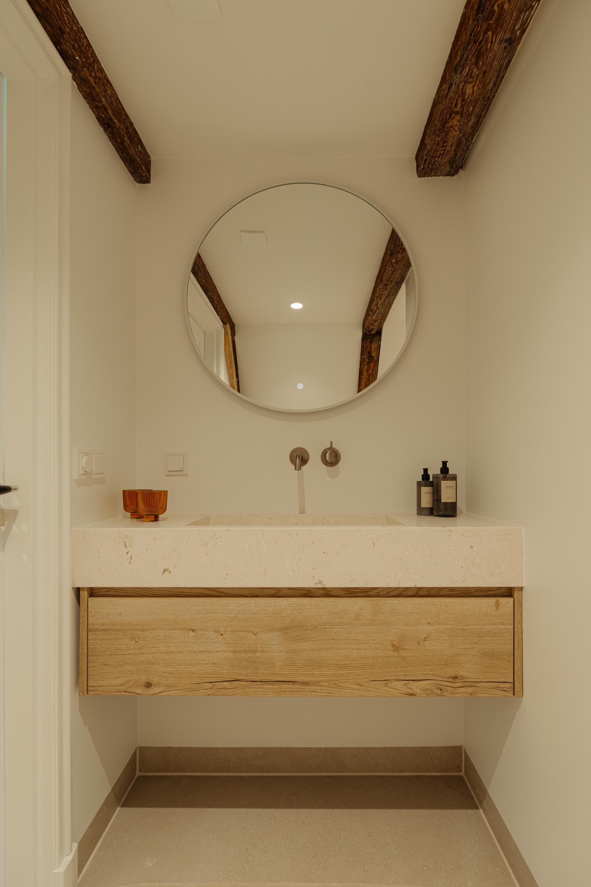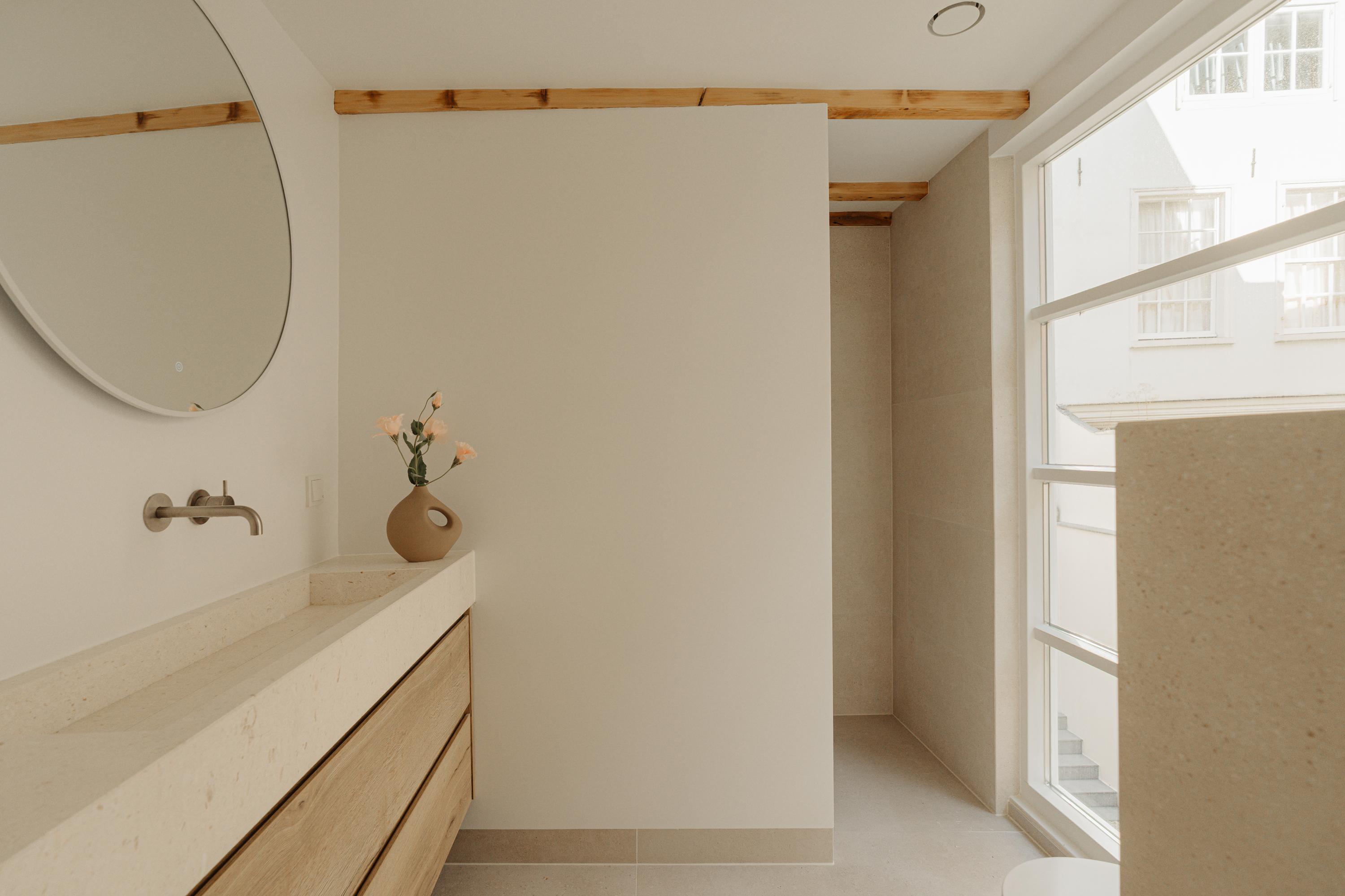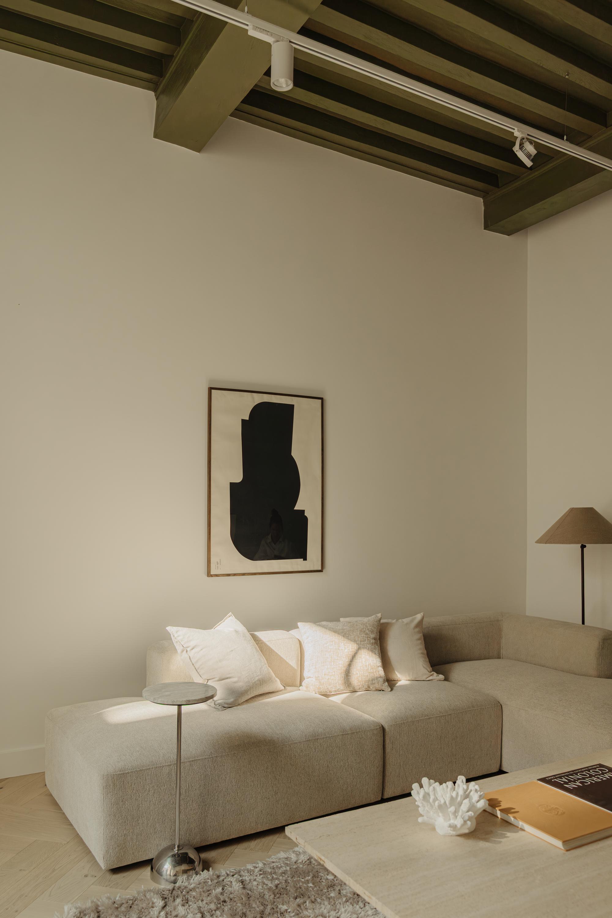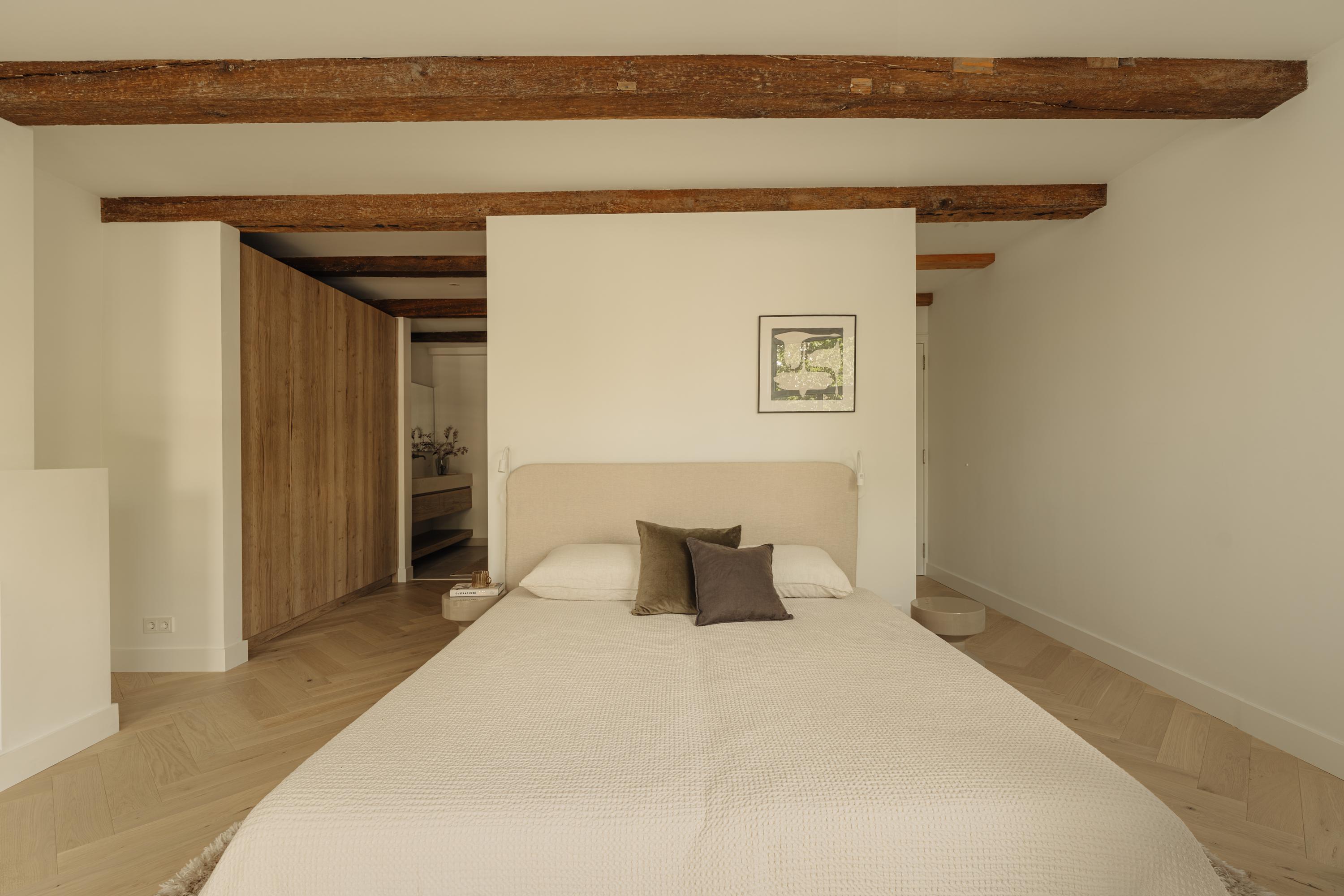 The property has been meticulously renovated with great attention to detail and respect for its original architecture. Exposed beams, high ceilings, and large windows recall the building’s historic character, while bespoke craftsmanship, natural materials, and serene finishes create an atmosphere of modern luxury.
