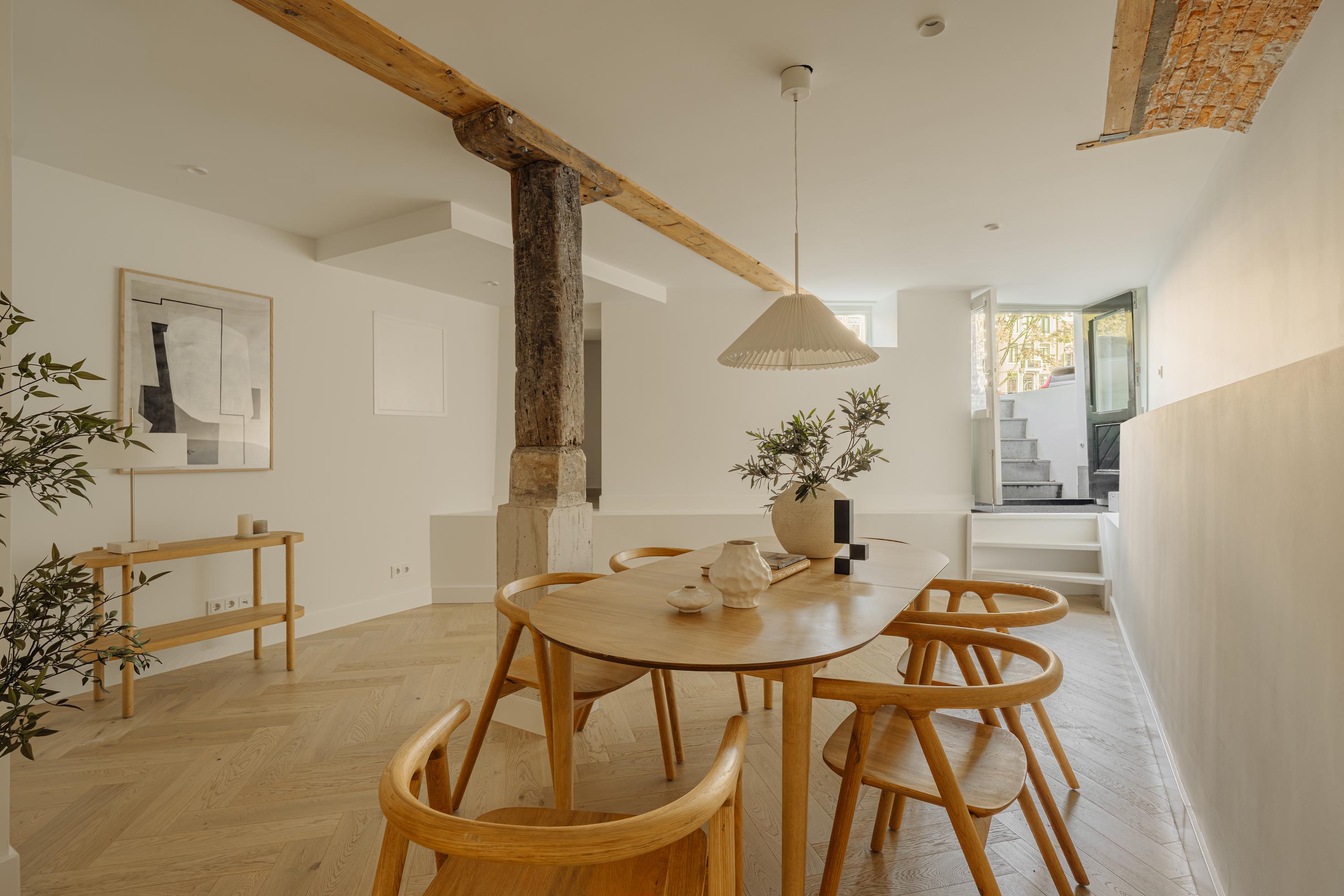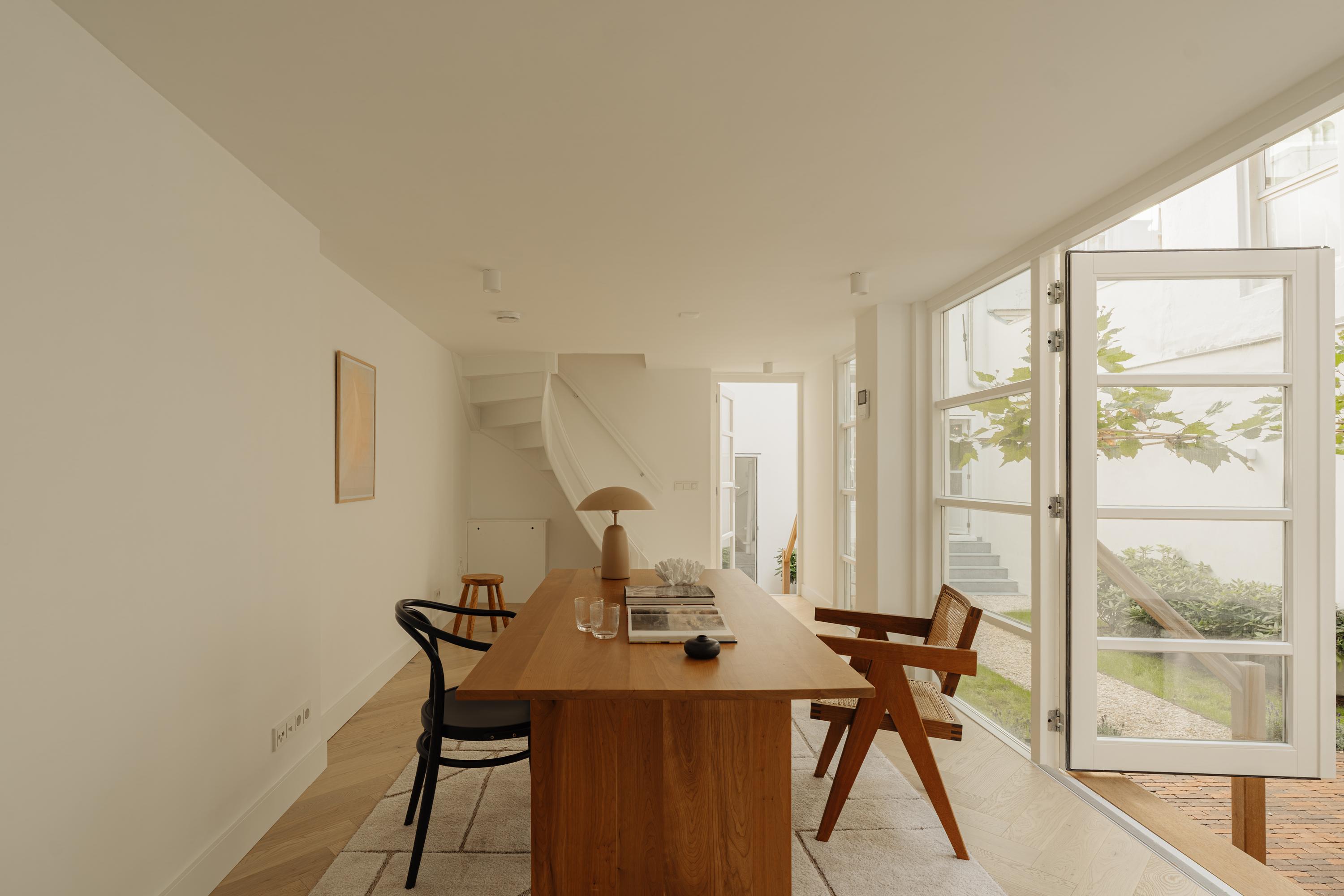 At the rear of the property lies a spacious and secluded city garden — a true oasis of calm in the heart of Amsterdam. The garden is beautifully landscaped with natural materials and lush greenery that reflect the serene character of the interior.