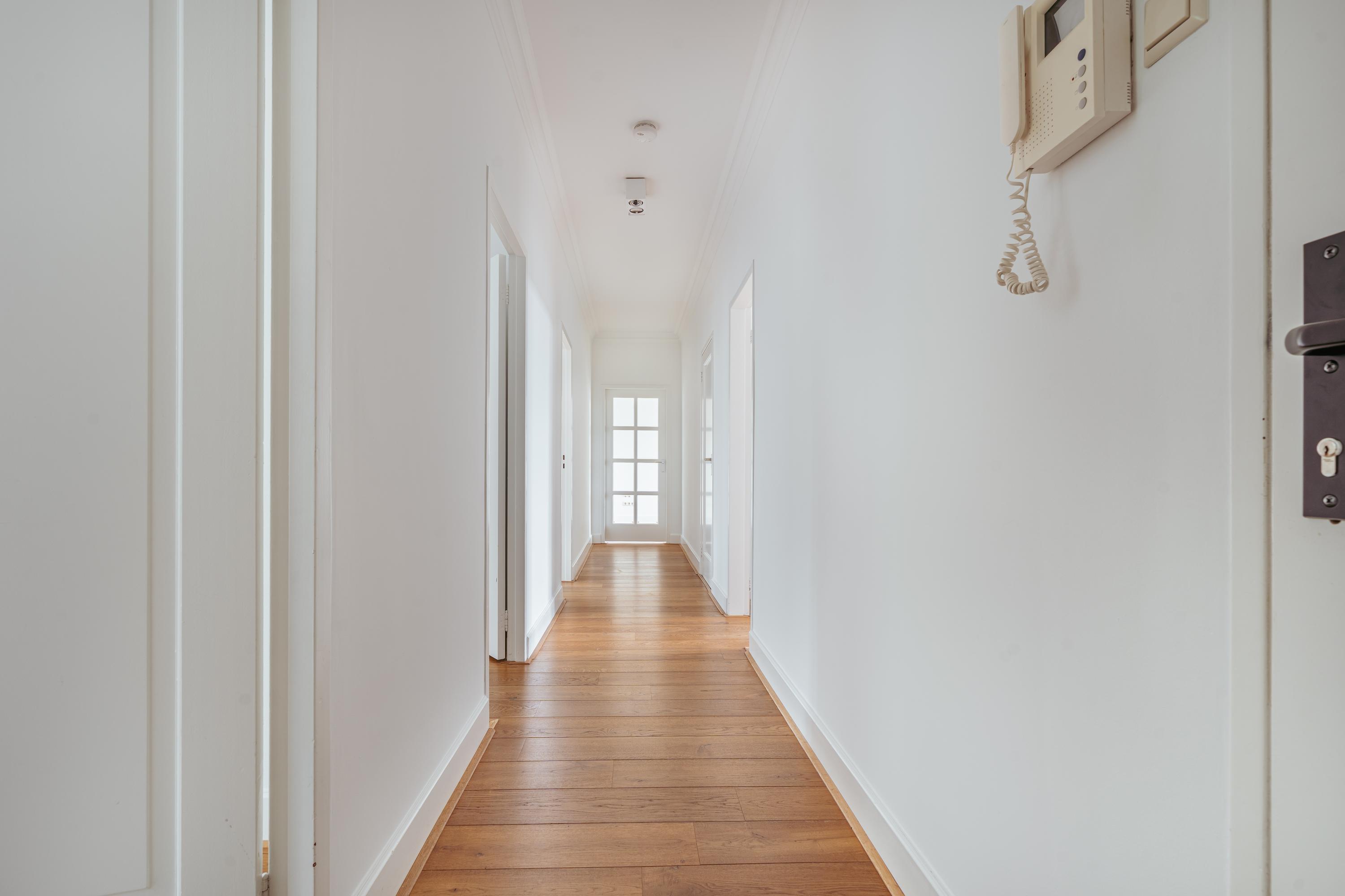 Through the well-kept communal entrance with staircase and elevator, you reach this bright and spacious apartment on the fourth floor. You enter a generous hallway that gives access to all rooms.