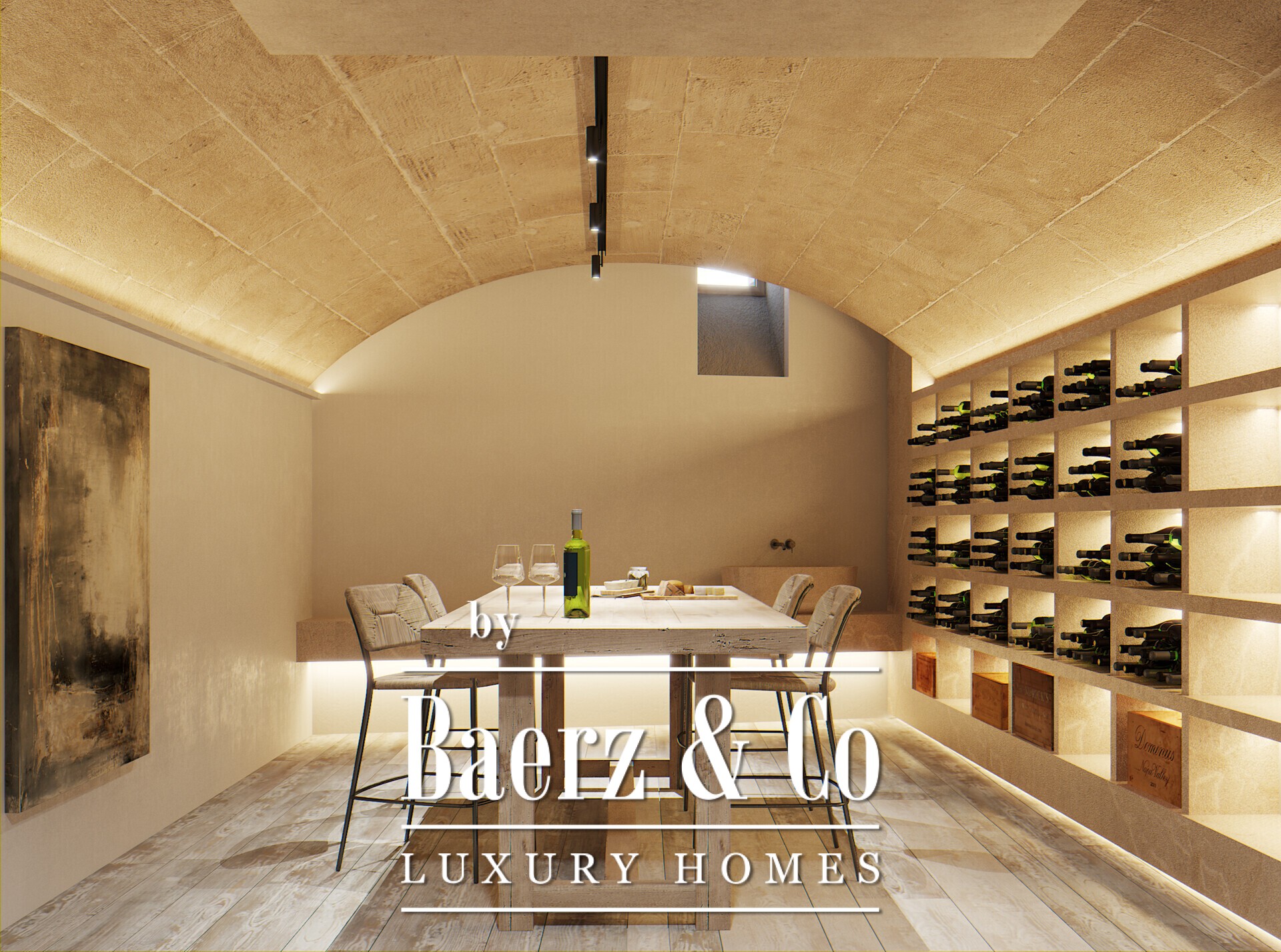 Four bedrooms with private en-suite bathrooms deliver privacy and calm. Two of these suites occupy the first floor, including one with direct access to an expansive upper terrace. Upstairs, two additional quiet suites await. The lower level, appointed with a guest toilet, may serve as a wine cellar, gym, or creative retreat, adapting to your needs.