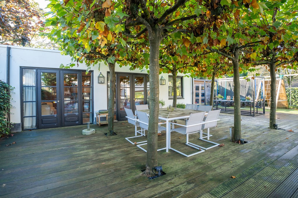 Verder is de tuin voorzien van diverse terrassen, een overkapping, een carport en een houten berging.