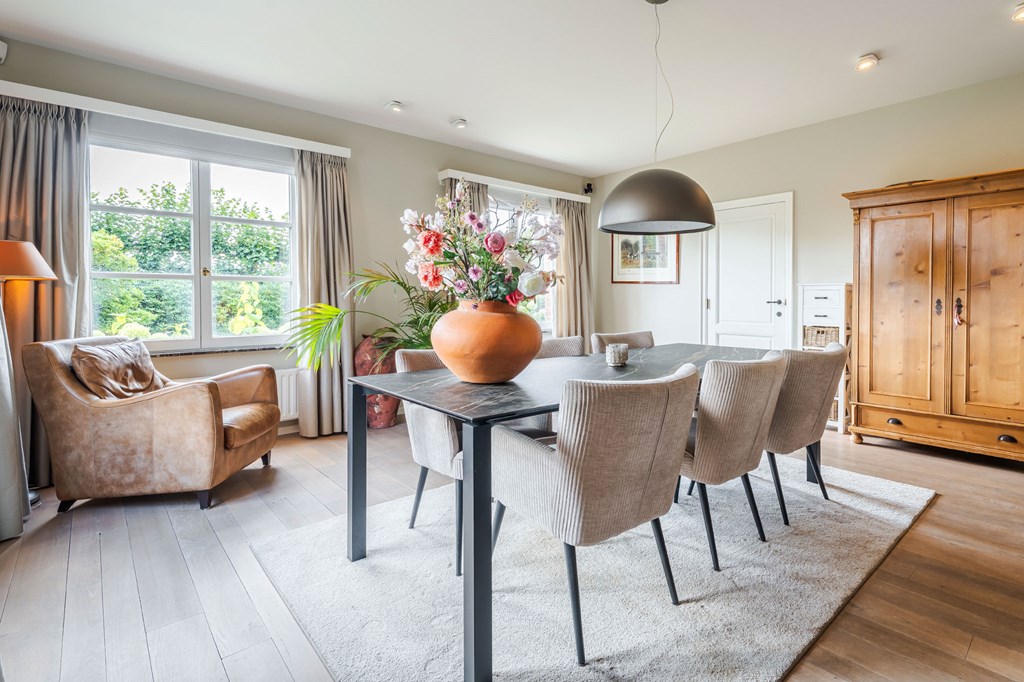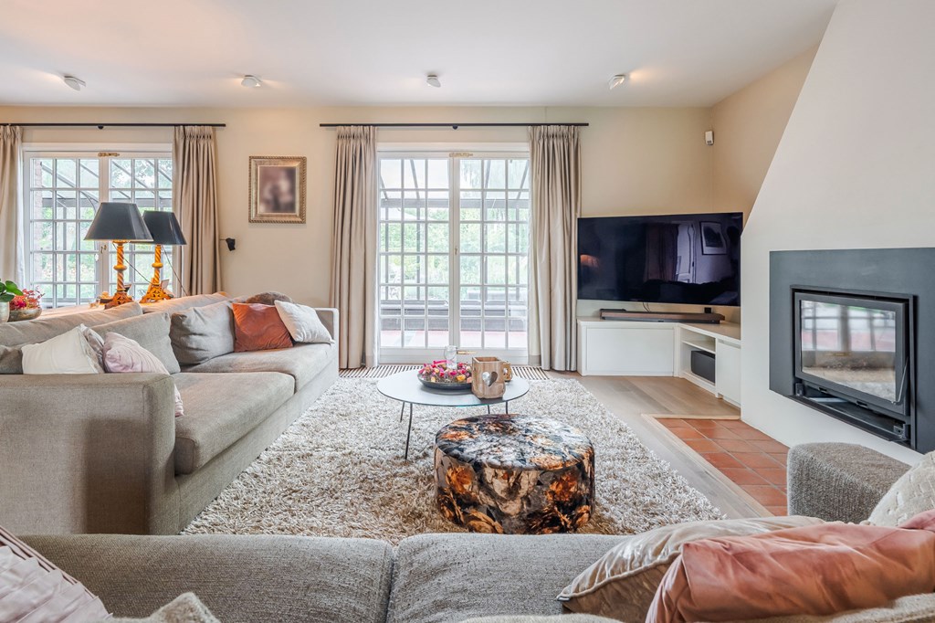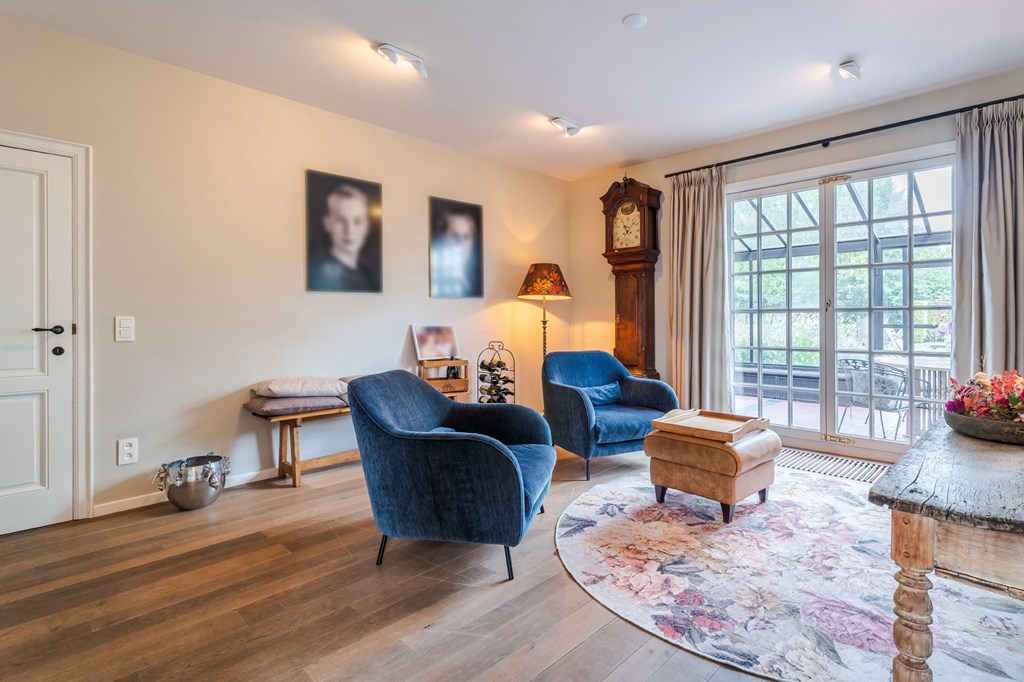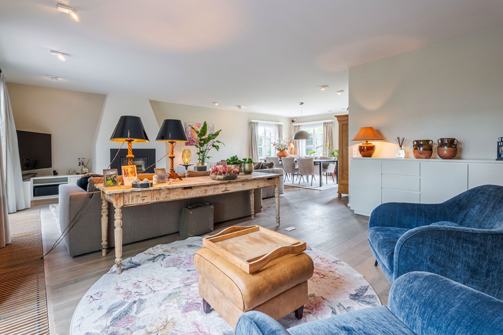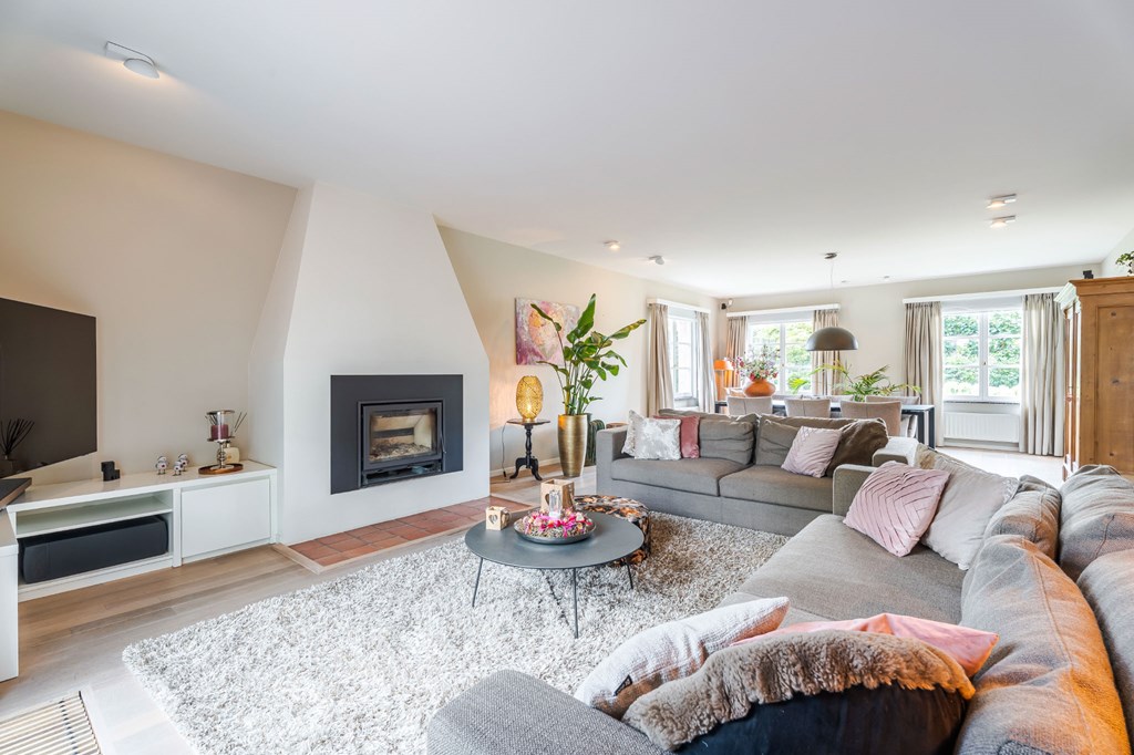 De ruim opgezette L-vormige living is voorzien van een parketvloer, een ingebouwde houtkachel en heeft een directe verbinding met de serre. Door de grote raampartijen is er veel natuurlijke daglichttoetreding in de ruimte. Vanwege het lichtinval zijn er diverse gezellige hoekjes te creëren. Aansluitend heeft u toegang tot het kloppende hart van deze woning, de leefkeuken.