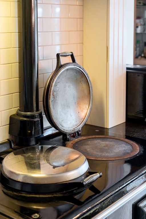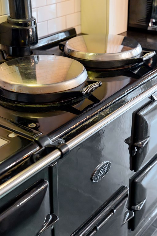 De landelijk uitgevoerde keuken is geplaatst in een rechte opstelling met aan twee kanten gepolijste natuurstenen werkbladen. Een echte eyecatcher is het centraal geplaatste AGA-fornuis. Mensen die met een AGA hebben gekookt willen vaak niets anders meer. Het is zowel een duurzaam als veelzijdig fornuis dat goed past bij een groot familiehuis. Verder is de keuken voorzien van twee spoelbakken, een Quooker, een vaatwasser en een Amerikaanse ijskast.