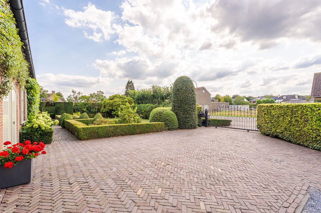 De aangelegde voortuin heeft een oprit voor meerdere voertuigen en is doormiddel van een elektrisch bedienbare schuifpoort af te sluiten van de openbare weg. Het perceel is hiermee volledig omsloten, ideaal voor als u bijvoorbeeld honden heeft.