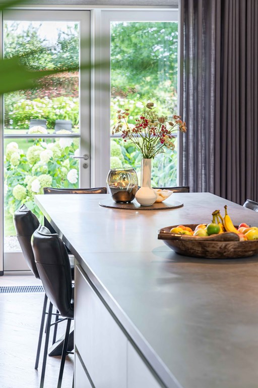 The heart of this home is undoubtedly the beautiful kitchen-living area. With its open design, this is the perfect spot for the family to come together. The large island in the center provides space for both cooking and seating.