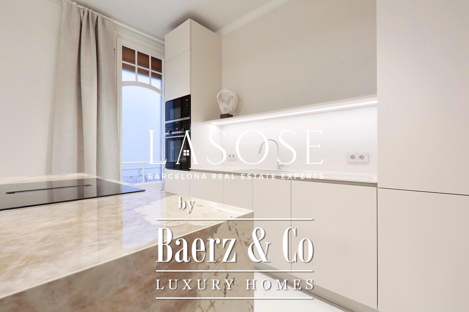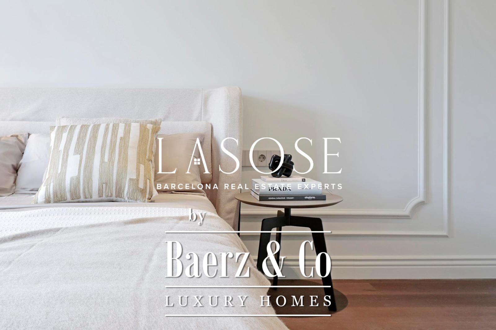LASOSE is pleased to present this exceptional apartment, very bright, in a privileged location in Barcelona.. . We welcome you to this unique property that offers a perfect blend of luxury and functionality. This property will satisfy both your needs for space and privacy. . . It consists of 4 bedrooms, 3 doubles, two of them en suite, and a single room. Upon entering the master bedrooms you will be greeted by the epitome of comfort and elegance. Both suites offer exclusive access to a private balcony, providing a serene retreat with panoramic views. Imagine waking up to gentle breezes and natural light streaming in, creating an atmosphere of tranquility. In addition to the private enclaves, the property features a guest bathroom for added convenience. The spacious, modern kitchen is a culinary enthusiast's dream. It connects to the bright and open living and dining area, creating a harmonious space for entertaining and relaxation.