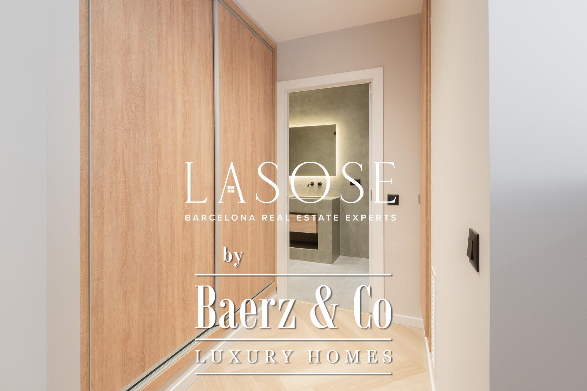 Three bedrooms, including a master suite with private bathroom and separate dressing room, are complemented by fitted wardrobes and custom carpentry. Comfort is assured through aerothermal air conditioning and double-glazed wooden windows. Residents benefit from the convenience of an elevator, concierge service, video intercom, and secure armored door. The long-tail variation luxury apartment for sale in Barcelona is well-suited for those who value discretion and design.