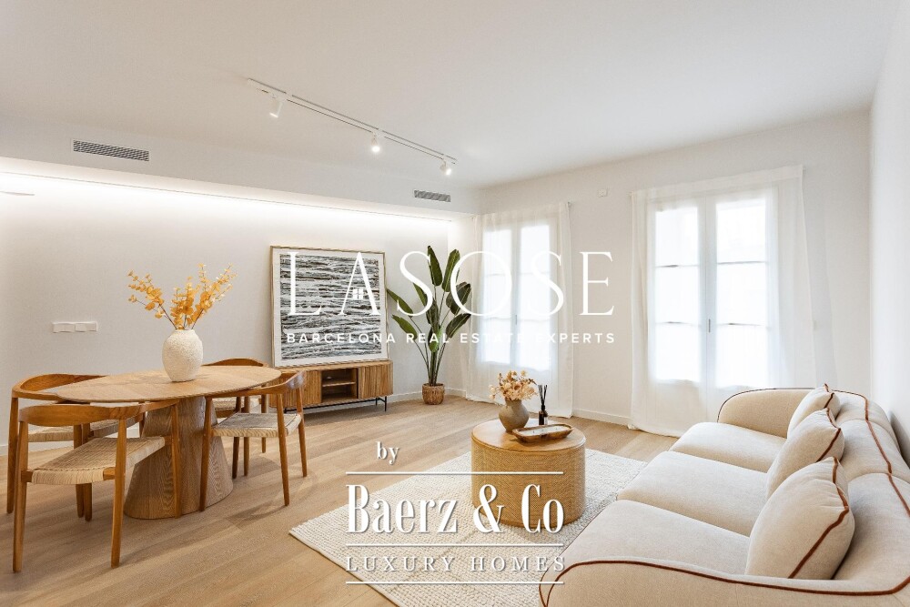 Apartment Barcelona defines a distinct rhythm of city living, set just a few metres from Plaza Catalunya on Tallers Street. This 120 m² residence combines original architectural elements with a full contemporary refurbishment, resulting in a calm interplay of classic character and modern sophistication. The three large bedrooms and two bathrooms are joined by open, light-filled living areas, brought together by quality materials and a considered layout.