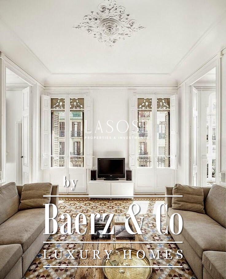 This bright apartment needs a complete renovation, located in the center of Barcelona with an unbeatable connection to the whole city. With a built area of 137 square meters adding a terrace of 26 meters, this spacious apartment offers a unique living experience in the city.. . The images shown are only indicatives. For the real ones, please contact us directly. For privacy reasons we can't publish them.. . Located in a royal 1920's estate, typical of the charming Eixample neighborhood, with a ceiling height of more than 3.20 meters and original elements such as period woodwork and ceilings with moldings, this property stands out for its elegance and charm.. . Its abundant natural light highlights the ample spaces and offers a space full of possibilities. The interior layout of the apartment allows for a unique versatility, with a rectangular floor plan and few load-bearing walls, ideal for adapting it to your needs and tastes. The large square terrace gives a big opportunity and has a storage on the back.. . The apartment is located on a real first floor and doesn't have an elevator. In addition, the presence of a concierge in the building adds security and attention to the residents.. . The location of this property is unbeatable, close to a wide variety of services, leisure areas, restaurants, parks and gardens. It also has an excellent connection to public transport, with several metro stops nearby, such as Urgell and Rocafort.. . *LOCATION*. . The neighborhood