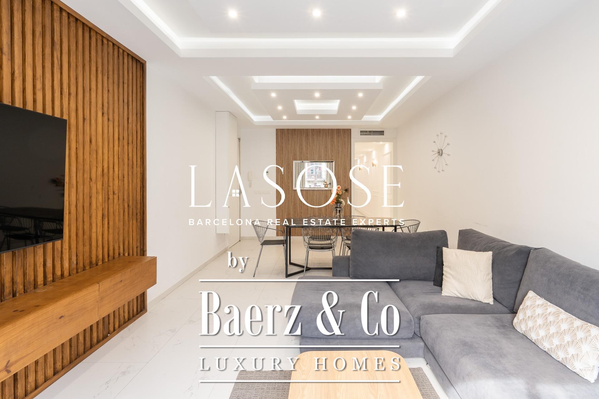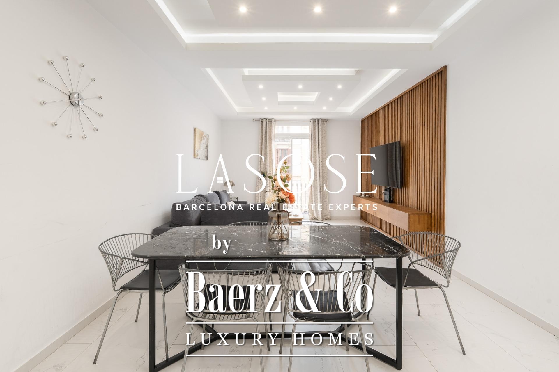 Ducted air conditioning for both hot and cold, aluminum carpentry, built-in wardrobes, and a focus on energy efficiency confirm the contemporary approach. The apartment is offered fully furnished. Outside, Rambla Catalunya and Passeig de Gràcia are moments away, with celebrated restaurants, boutiques, and effortless transport access, placing the rhythm of Barcelona at your doorstep—a move-in-ready home in Eixample Esquerra for those who value balance and urban convenience.