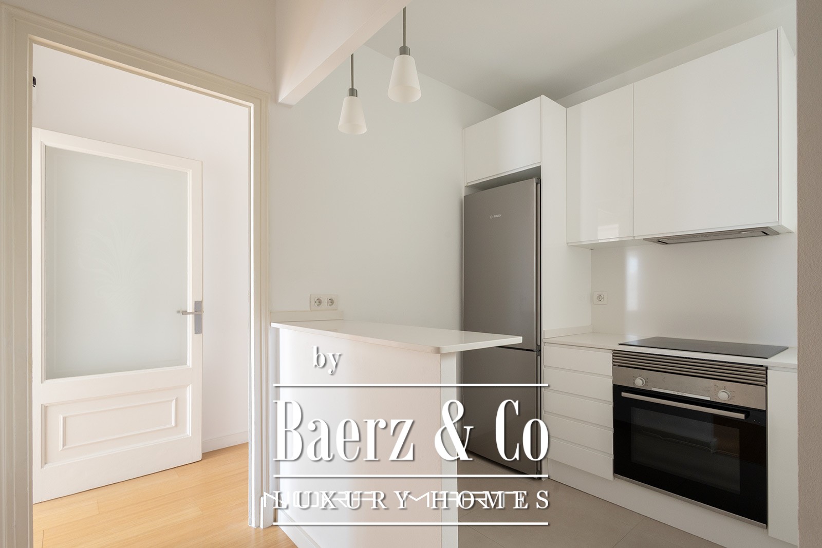 Apartment Barcelona is offered in the heart of the city’s most sought-after promenade, where Passeig de Sant Joan meets the distinctive atmosphere of Gràcia. This 90 m² apartment on the sixth floor enjoys expansive light, carrying the warmth of the midday sun and an enveloping calm through the afternoon. The living-dining room, oriented towards a 10 m² terrace, invites both city and Mediterranean sea views that stretch toward Tibidabo, with the terrace providing an ideal setting for quiet rituals or convivial gatherings.