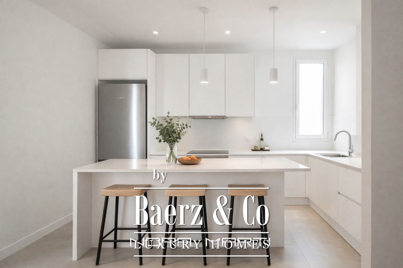 The layout is designed for balance and ease, with an open living space blending into a modern kitchen through a breakfast bar, fostering both privacy and connection. The master bedroom shares the terrace’s luminous outlook. Two further rooms, each versatile and bright, accommodate restful nights or creative pursuits. Both the main bathroom and guest toilet are thoughtfully appointed. Every element underscores comfort with understatement, marking this residence as move-in ready.