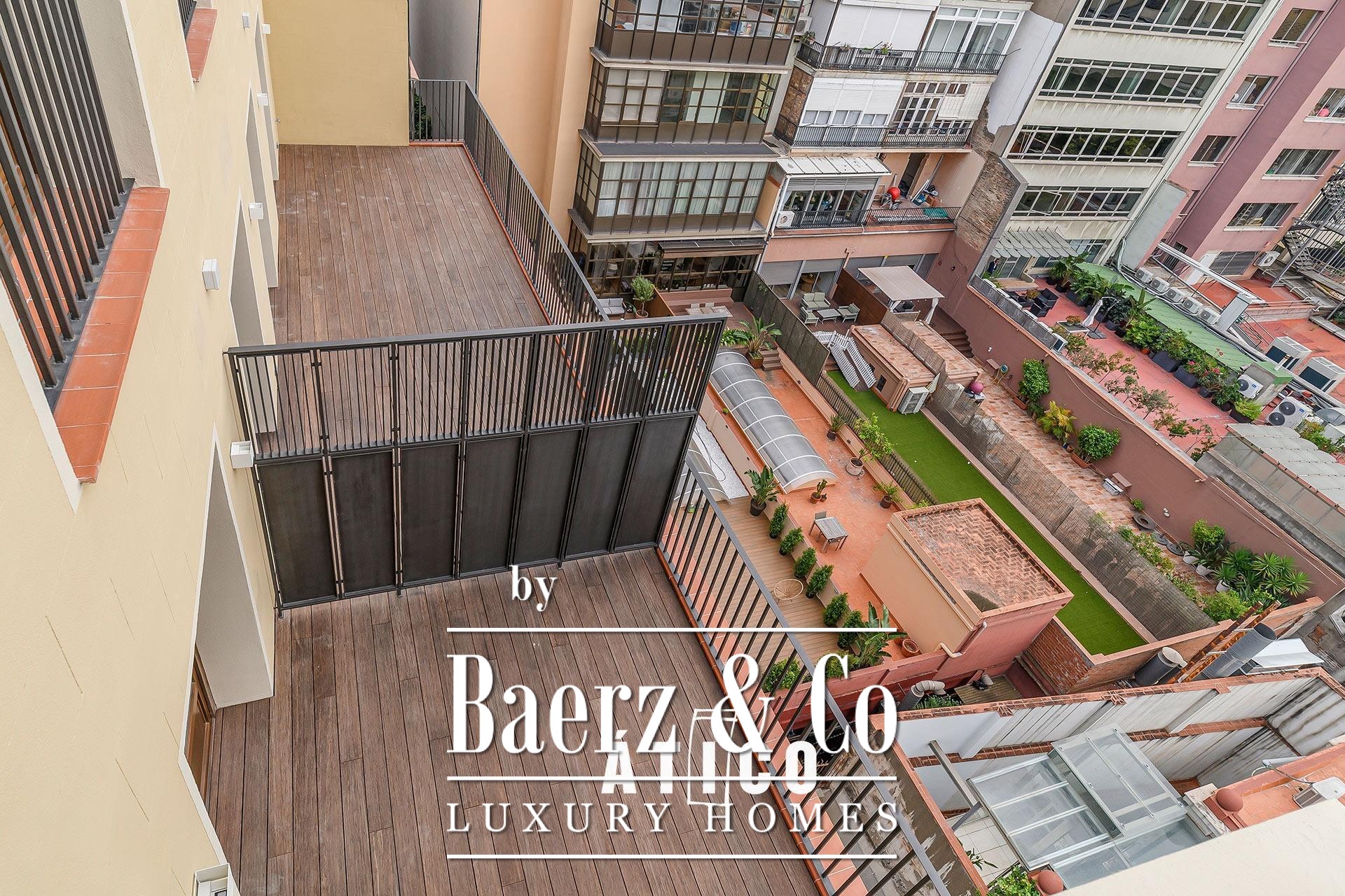 This penthouse sits within a prestigious building offering additional new penthouse residences, each with its own terrace. Life in the Golden Square provides immediate access to Barcelona’s vibrant streetscape, culinary destinations, shopping, and cultural institutions. The location affords convenience and connection while retaining a sense of privacy and retreat, making it ideal for those who value both vibrancy and calm.