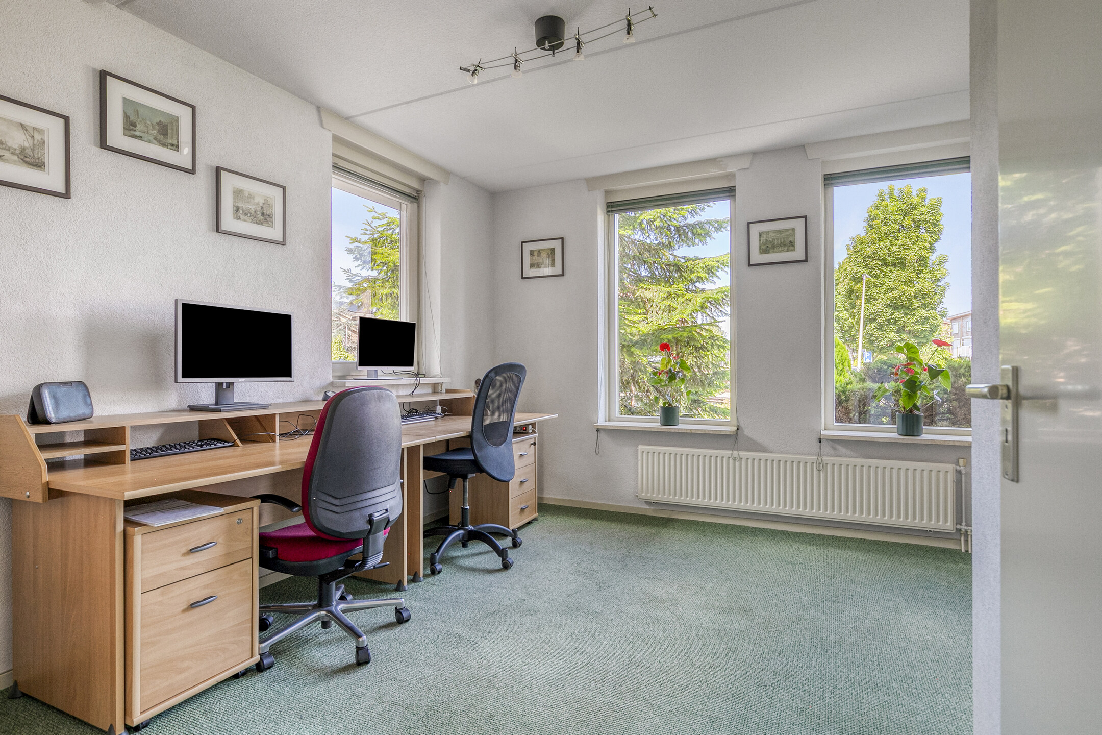 The study features carpet flooring and an electric shutter, offering a quiet spot for working from home or hobbies.
