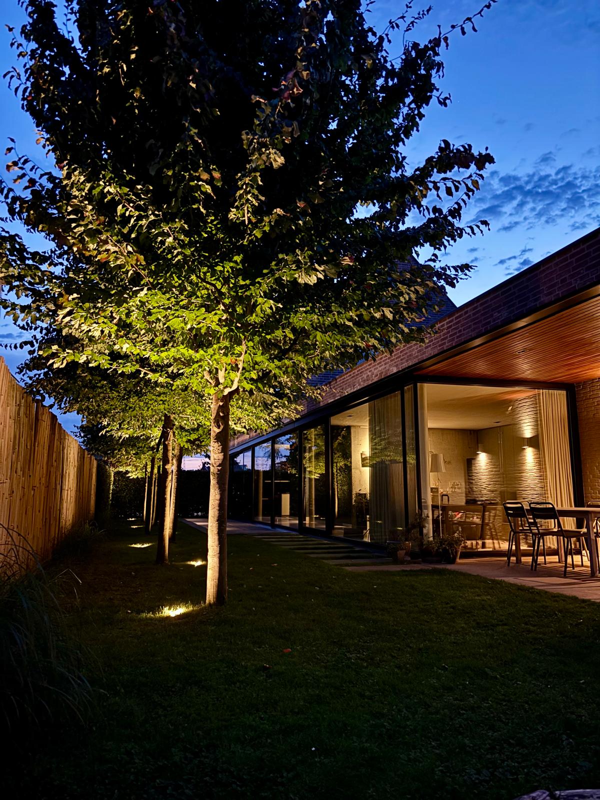 Fully enclosed garden with gates on both sides: approx. 25 m deep and 5 m wide and 12 m deep and 3 m wide, facing southeast and northwest. Includes garden lighting, outdoor power outlets, and outside taps.