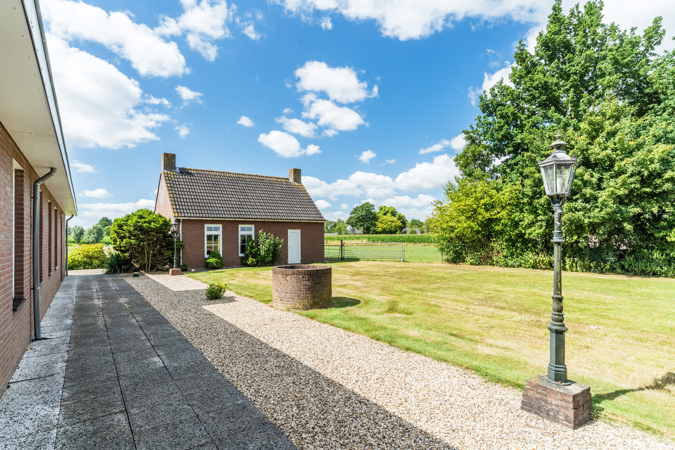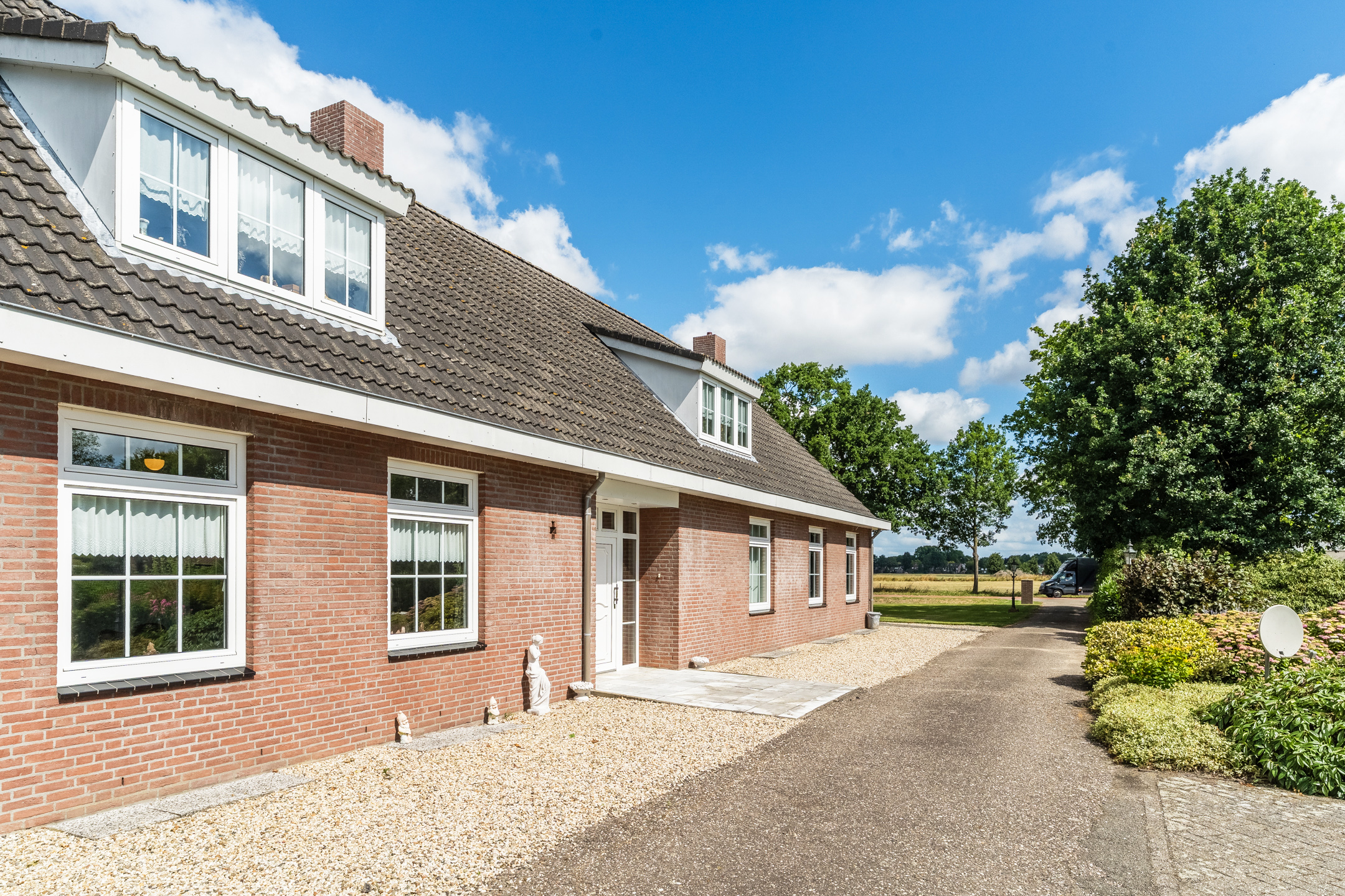 Outdoors, mature gardens with a private well and irrigation system envelop the home. The insulated detached garage and ample parking on a wide private driveway speak to effortless functionality, while energy label B attests to thoughtful sustainability. The farmhouse’s setting ensures every amenity remains within easy reach: local shops, restaurants, and schools are less than five minutes by bike, and the N65 highway is just a short drive. This luxury farmhouse for sale in Berkel-Enschot invites a pace of life shaped by space, light, and discreet quality.