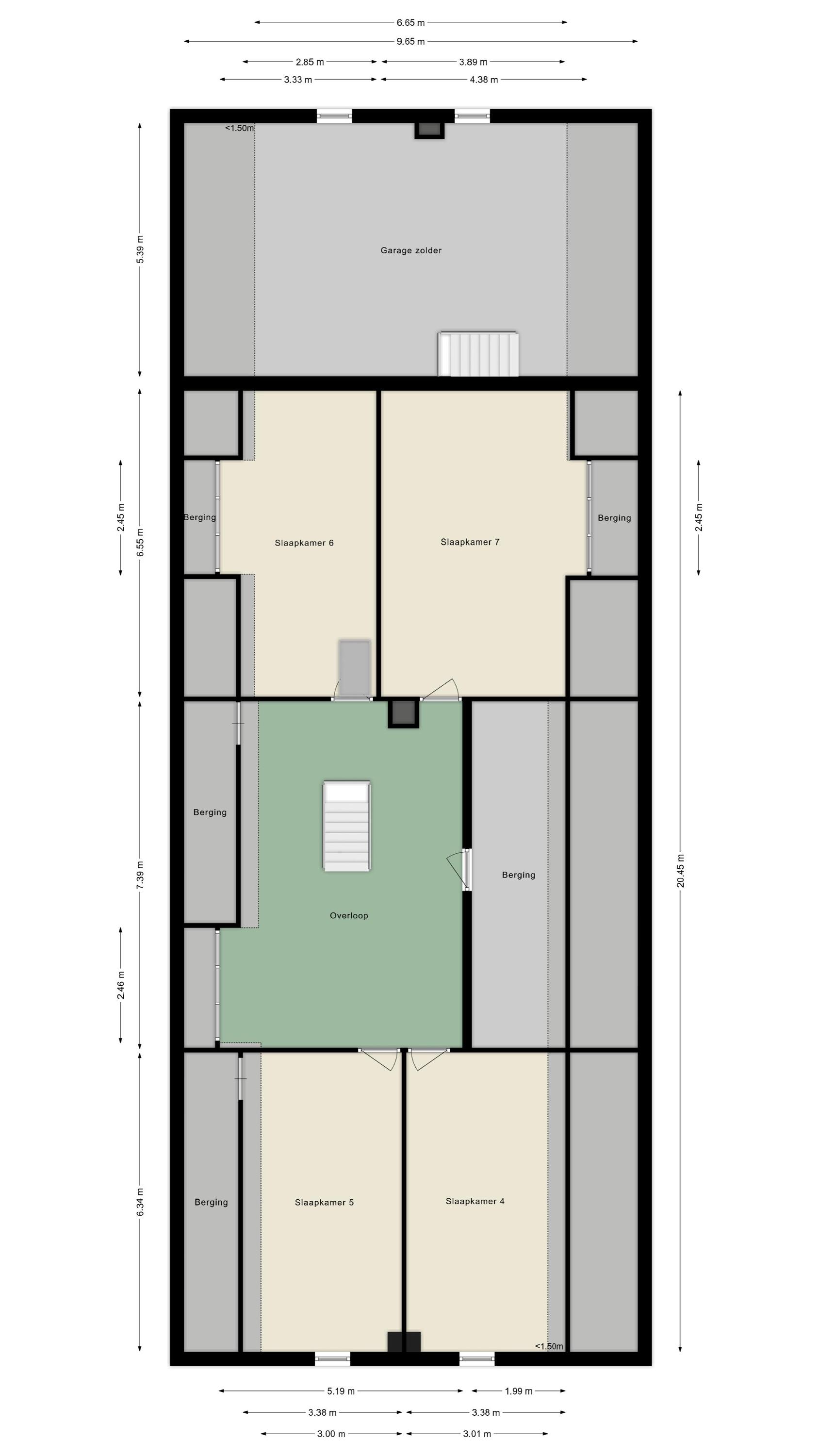 The ground floor’s layout revolves around a spacious 32.5 m² entrance, leading to a 46 m² living area suffused with light from expansive windows and completed by underfloor heating and a closed wood-burning fireplace. The kitchen, with 15.5 m², offers parallel workspaces and integrated appliances. Six generously proportioned bedrooms and multiple bathrooms provide flexibility and privacy across both floors, with generous attic storage expanding the utility further.