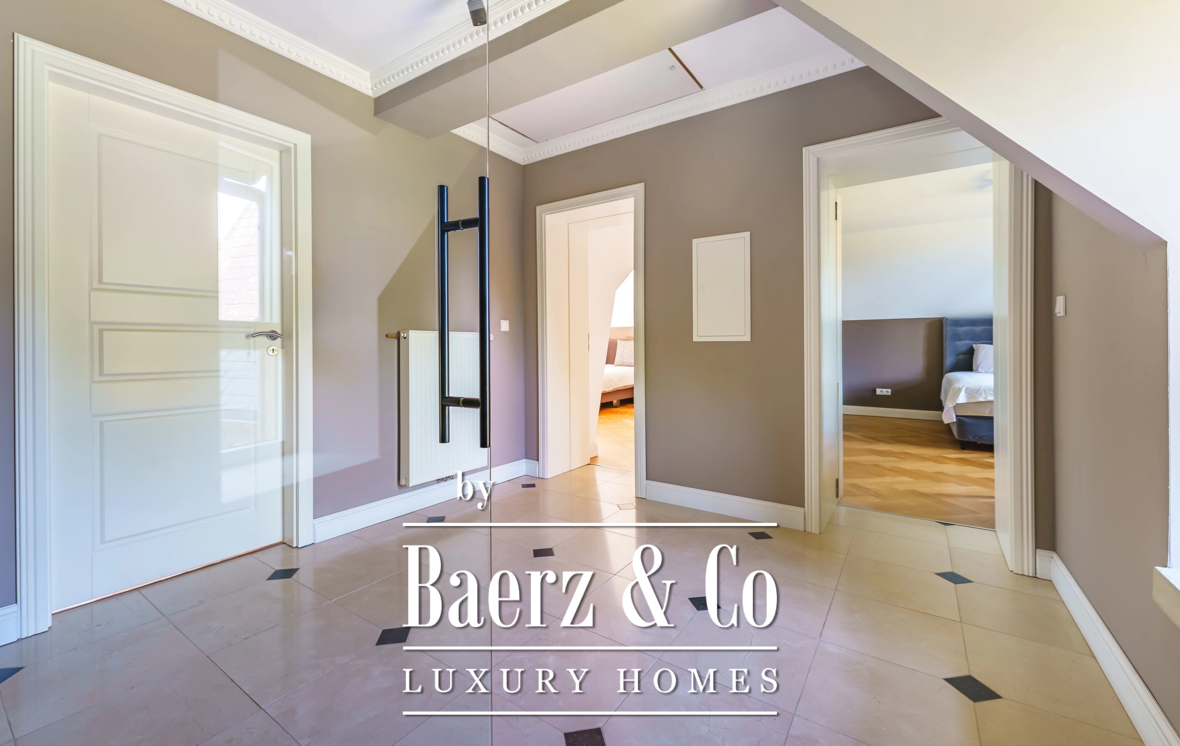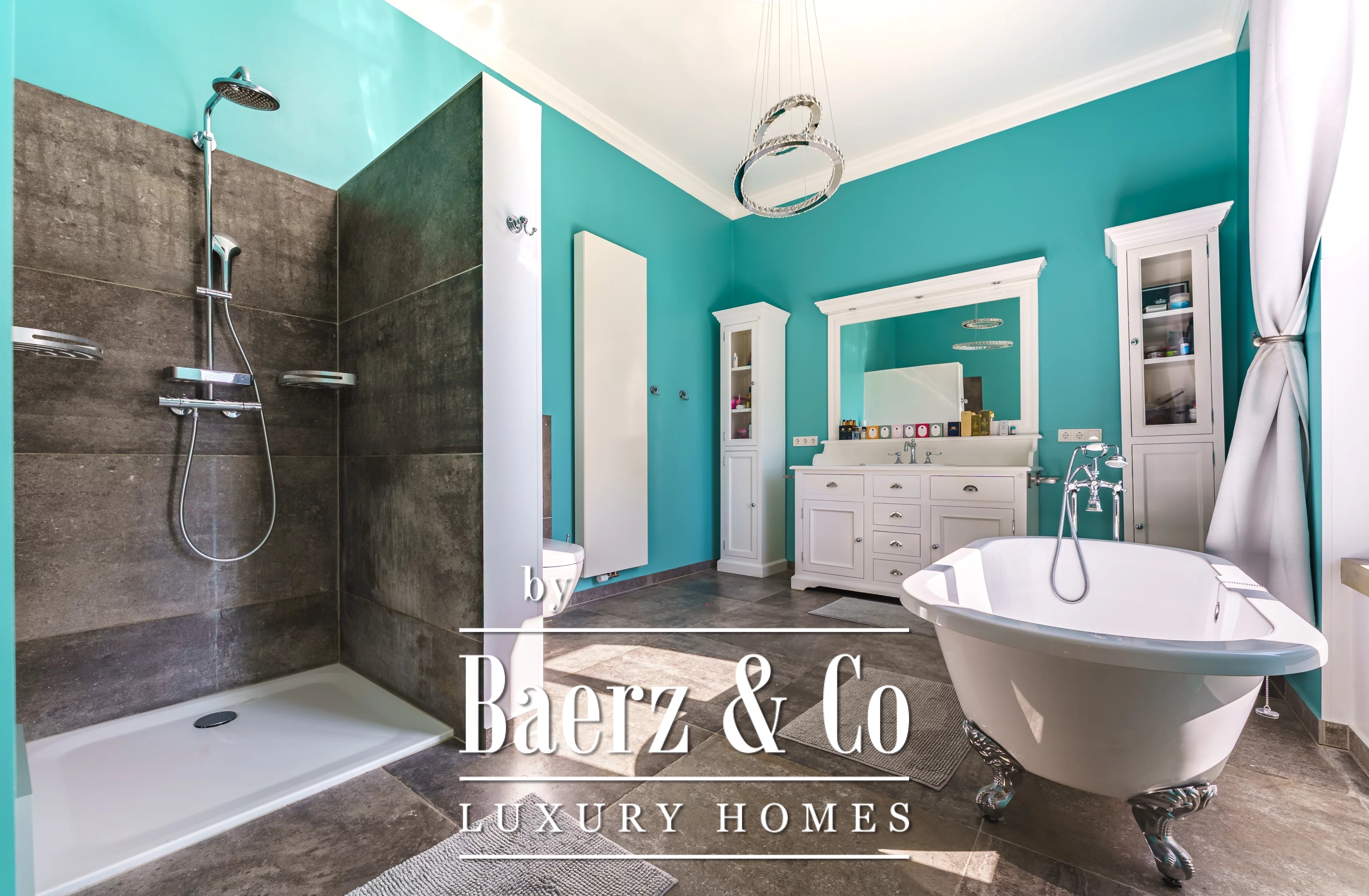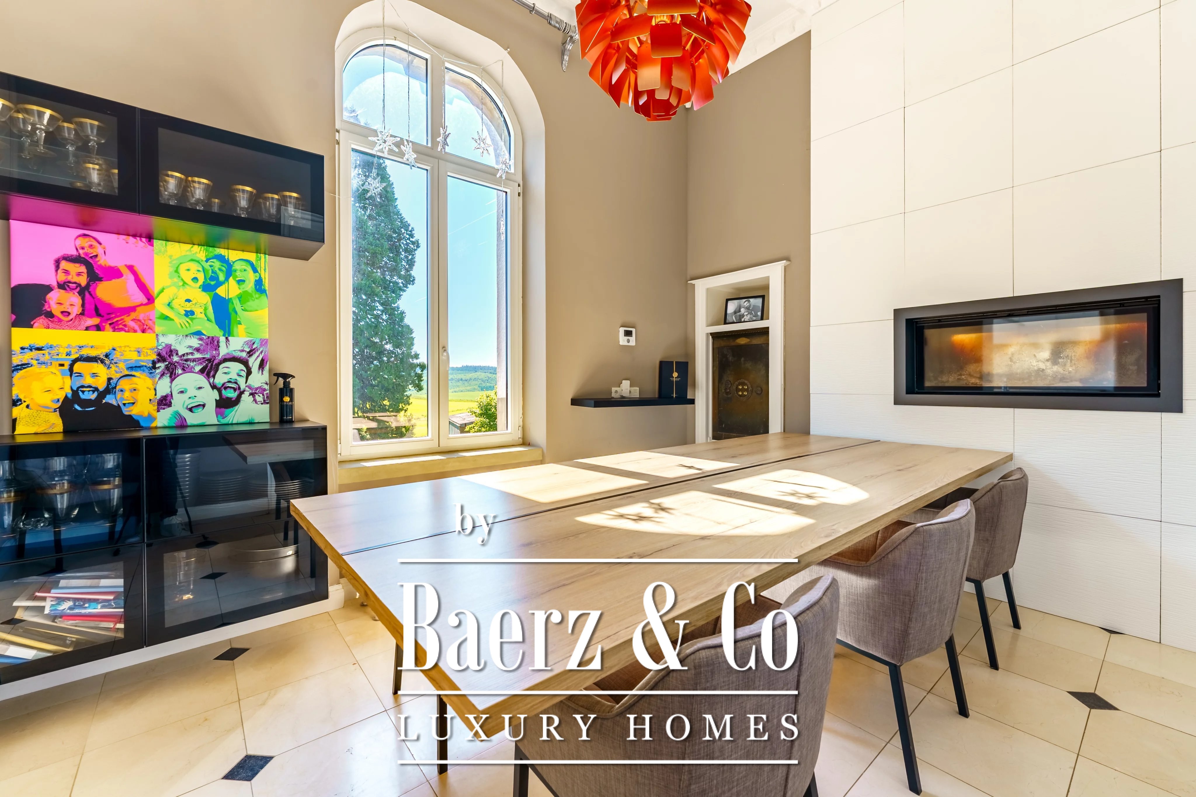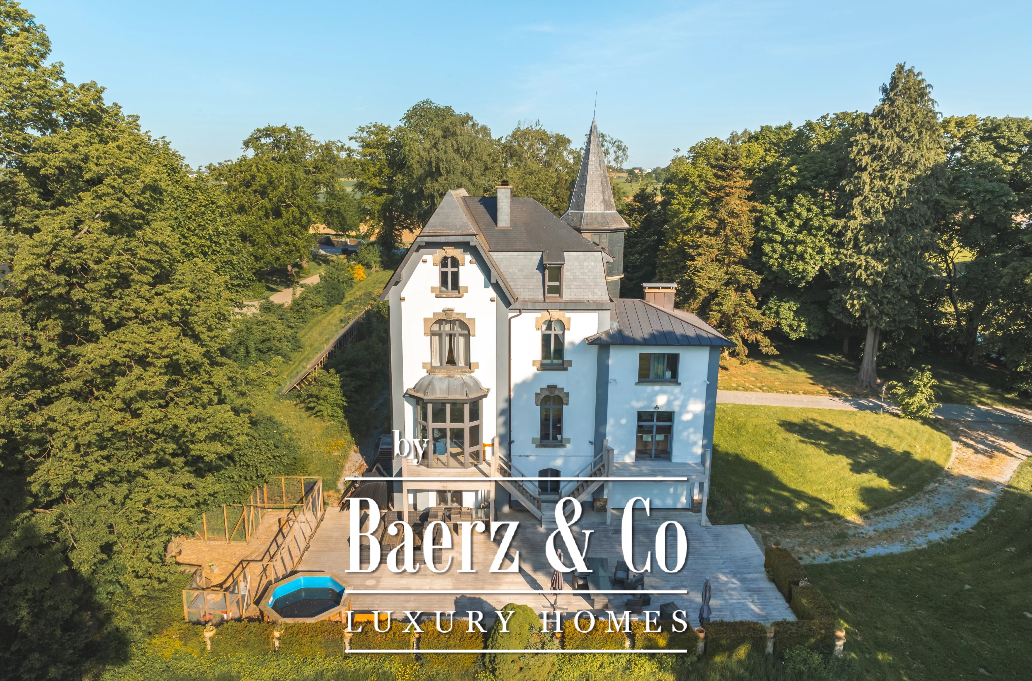 This manor house Boevange offers a distinguished setting where heritage and modernity are held in quiet balance. Originally constructed in 1909 and thoughtfully renovated in 2022, the property resides within 12,180 m² of landscaped grounds, presenting 375 m² of living space and ceilings that rise four meters above subtle parquet floors.