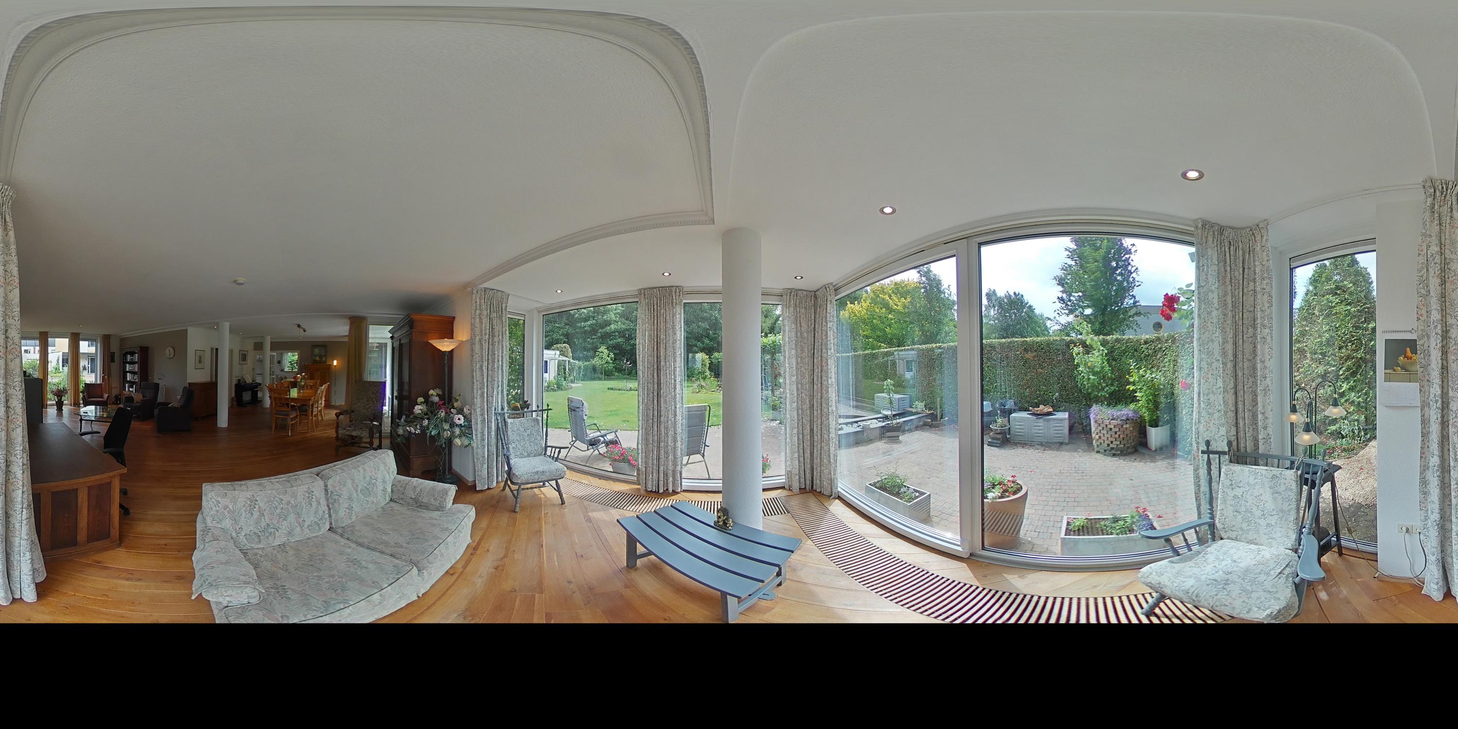 At the dining area around the corner access to the covered terrace.