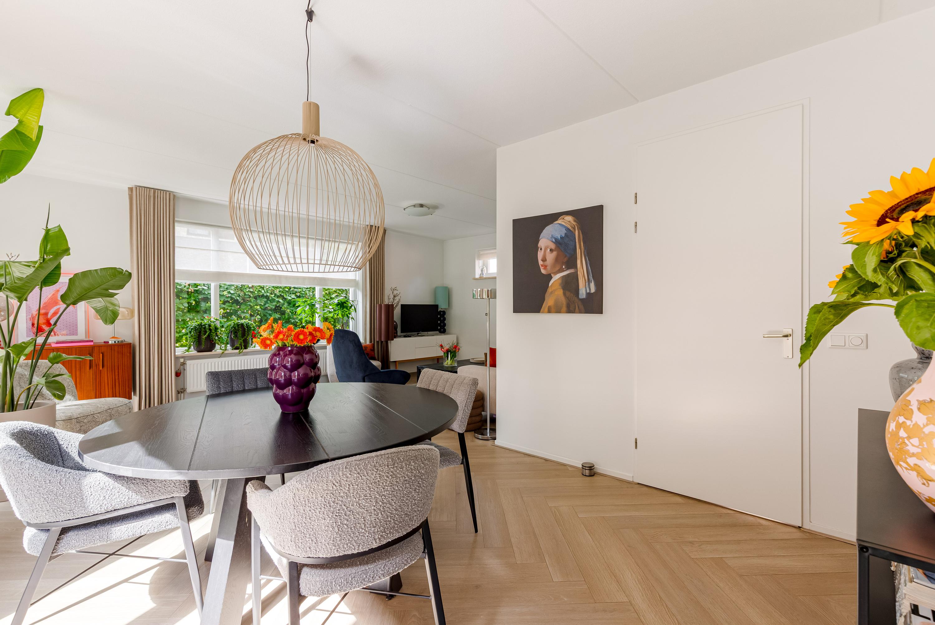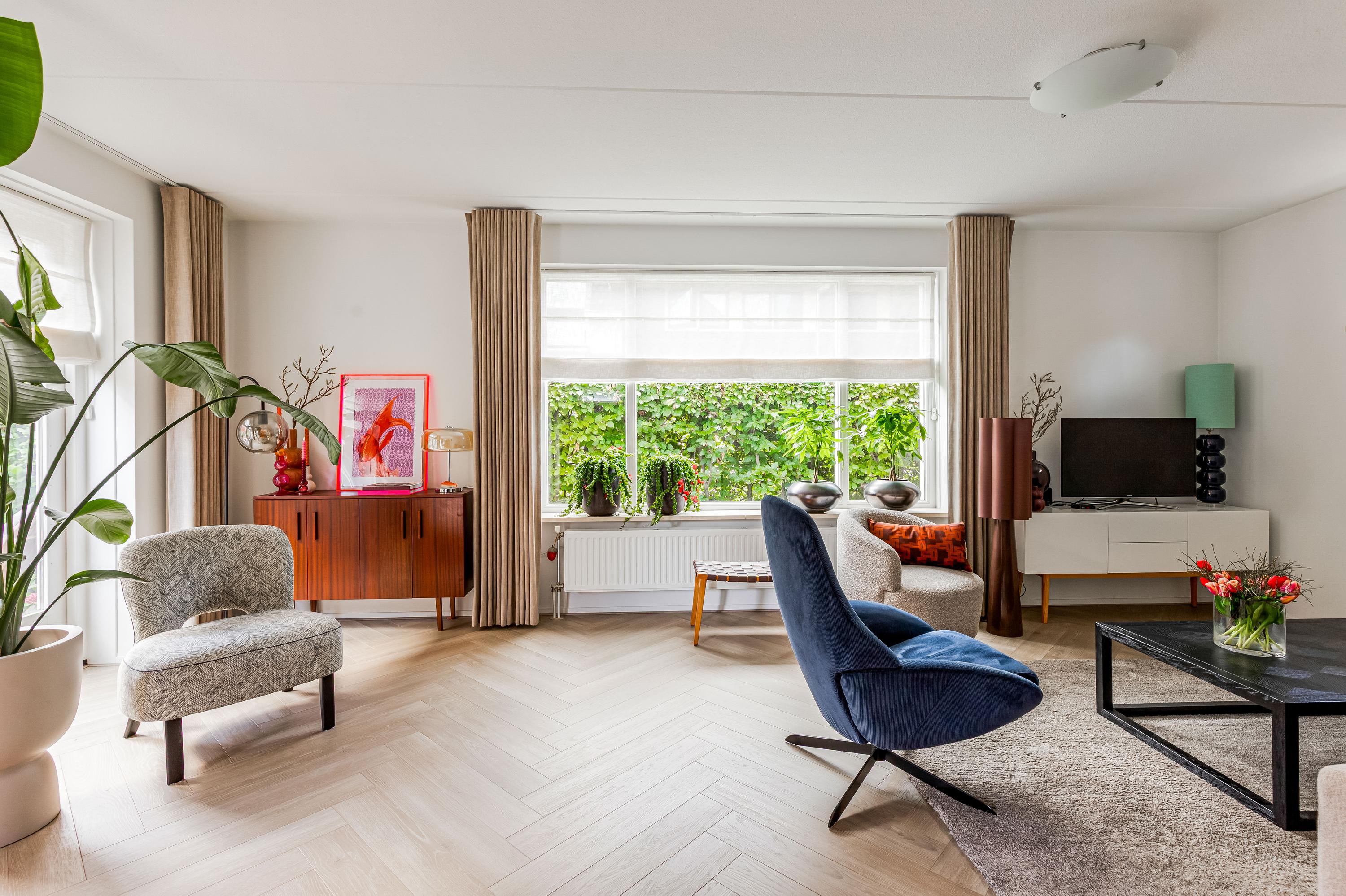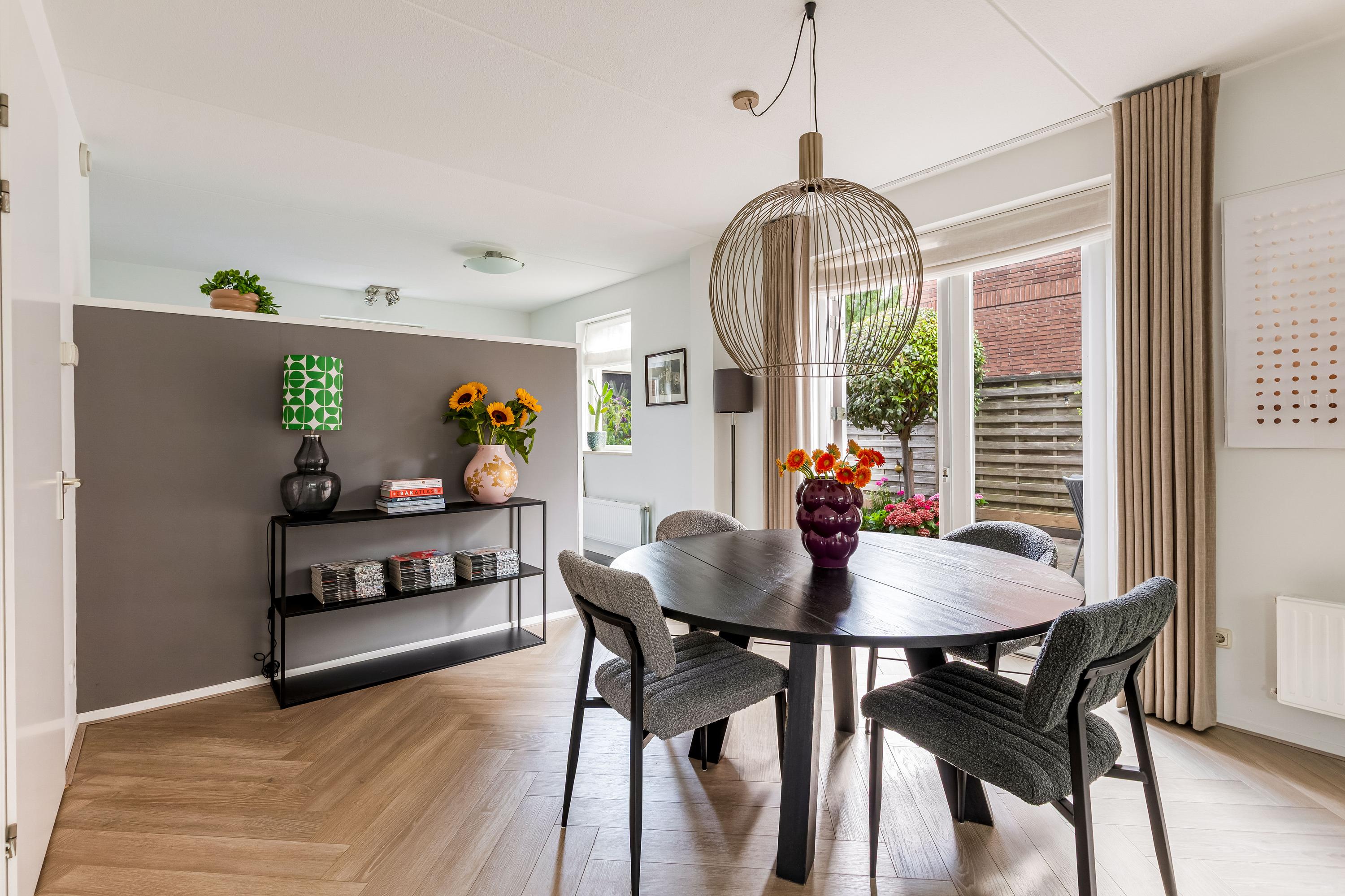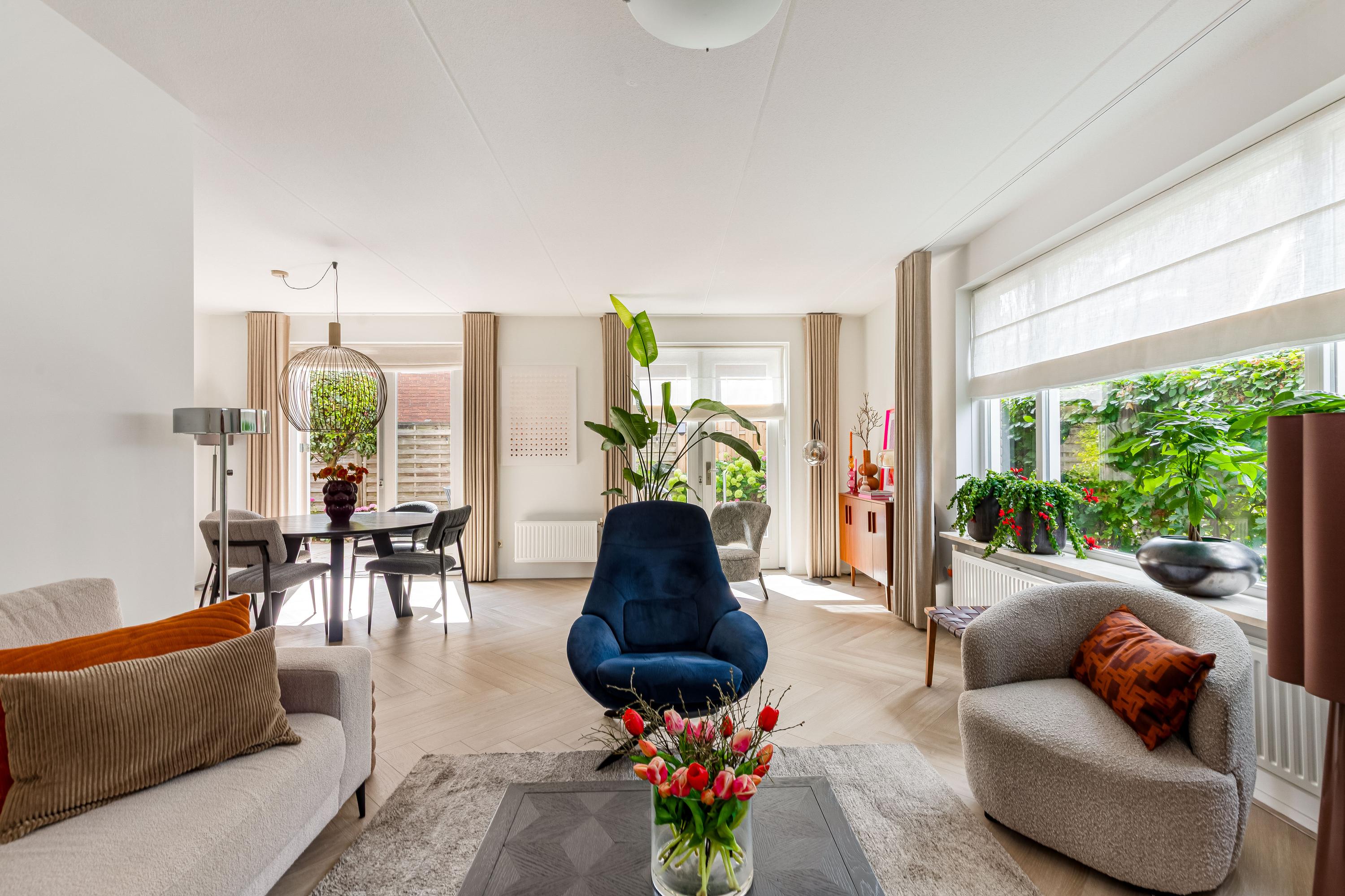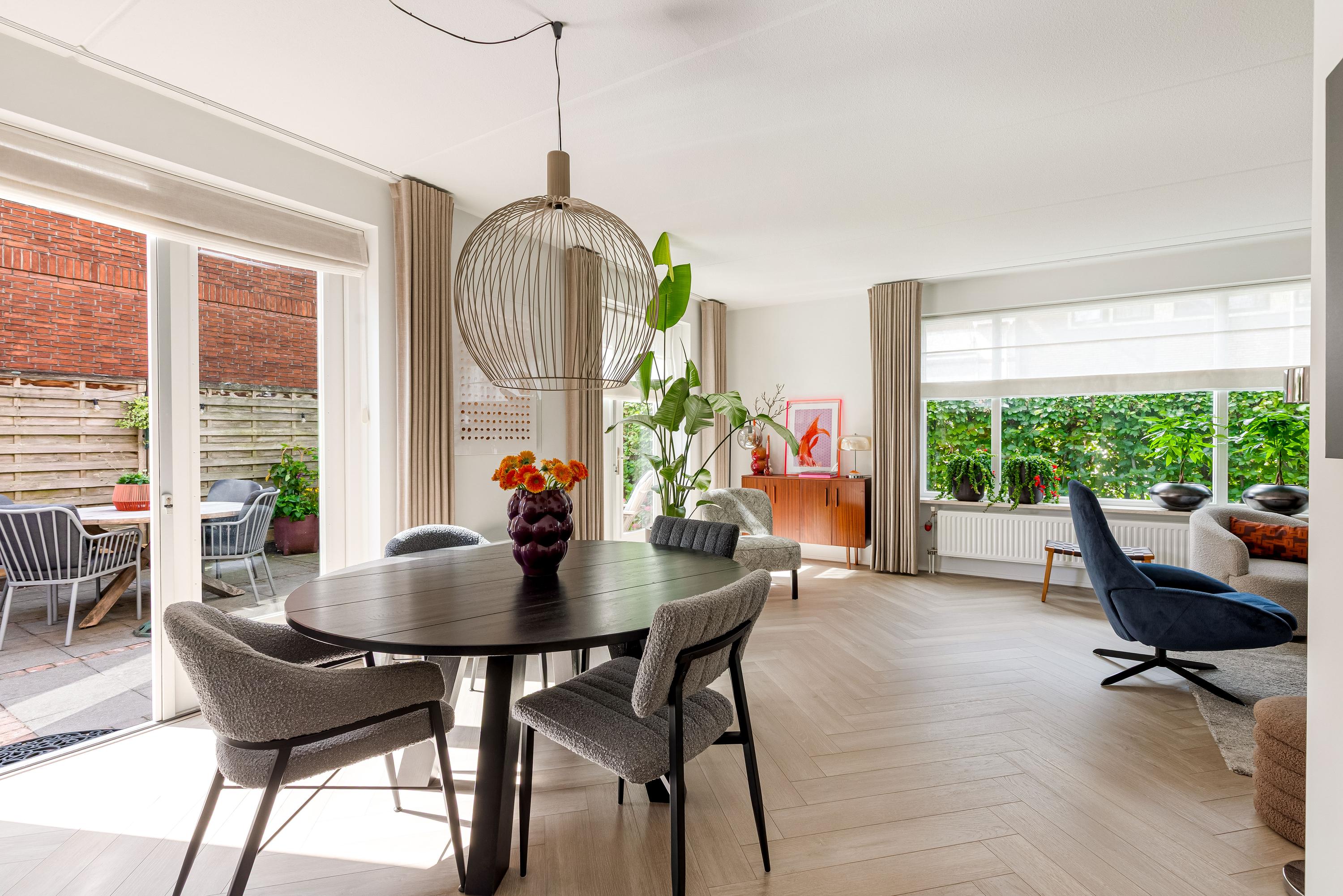 Townhouse Bussum stands at Visserstraat 37, presenting 174 m² of living space in a central yet peaceful residential address. This property’s understated presence shelters six bedrooms and two full bathrooms, ensuring both privacy and calm, while the generous layout blends function with considered design detail. The heart of the house is a luminous living area where light herringbone floors and large windows shape a refined canvas. French doors connect directly to a southeast terrace and a landscaped garden, allowing a gentle transition between inside and out—space made for quiet retreat or convivial gathering.