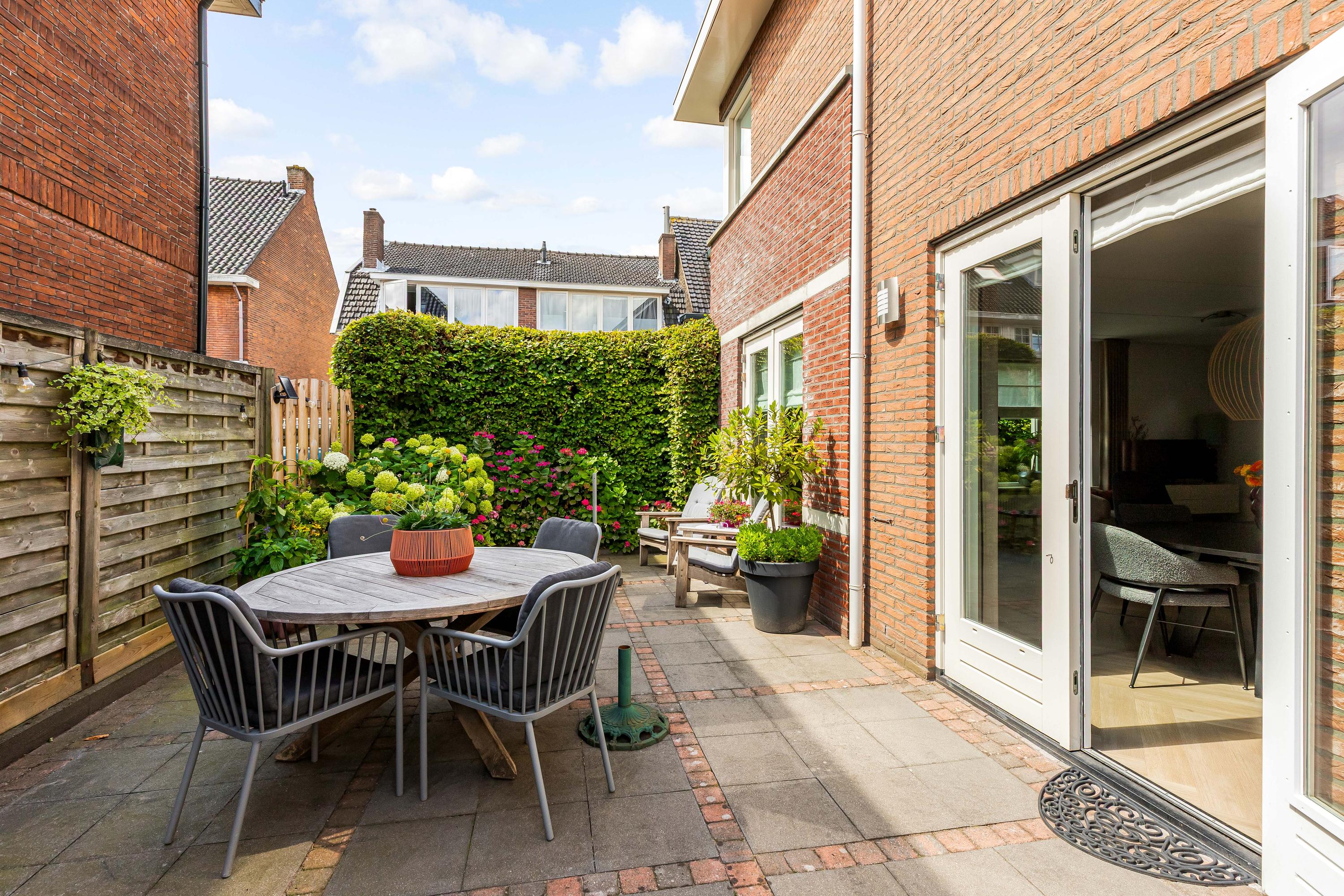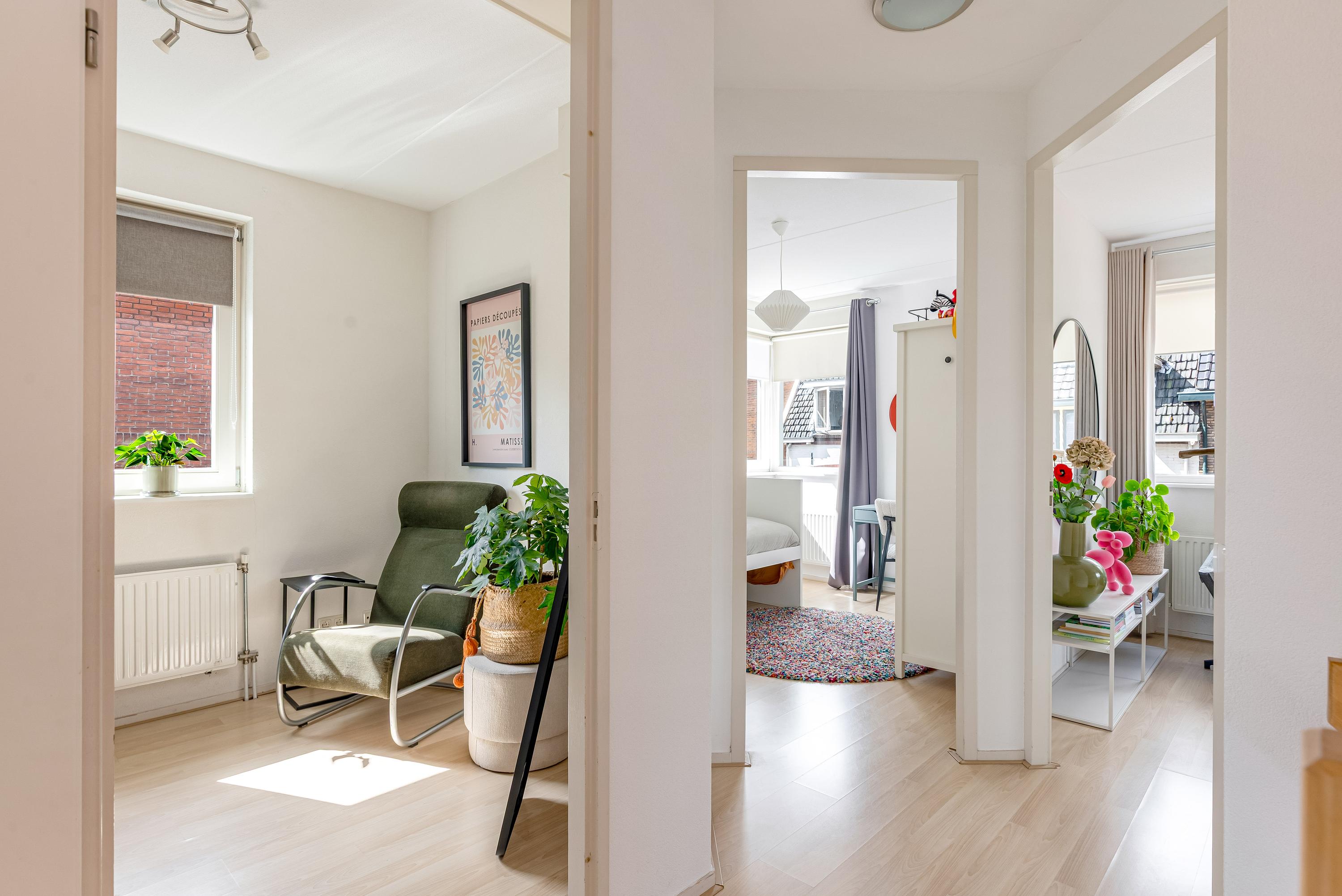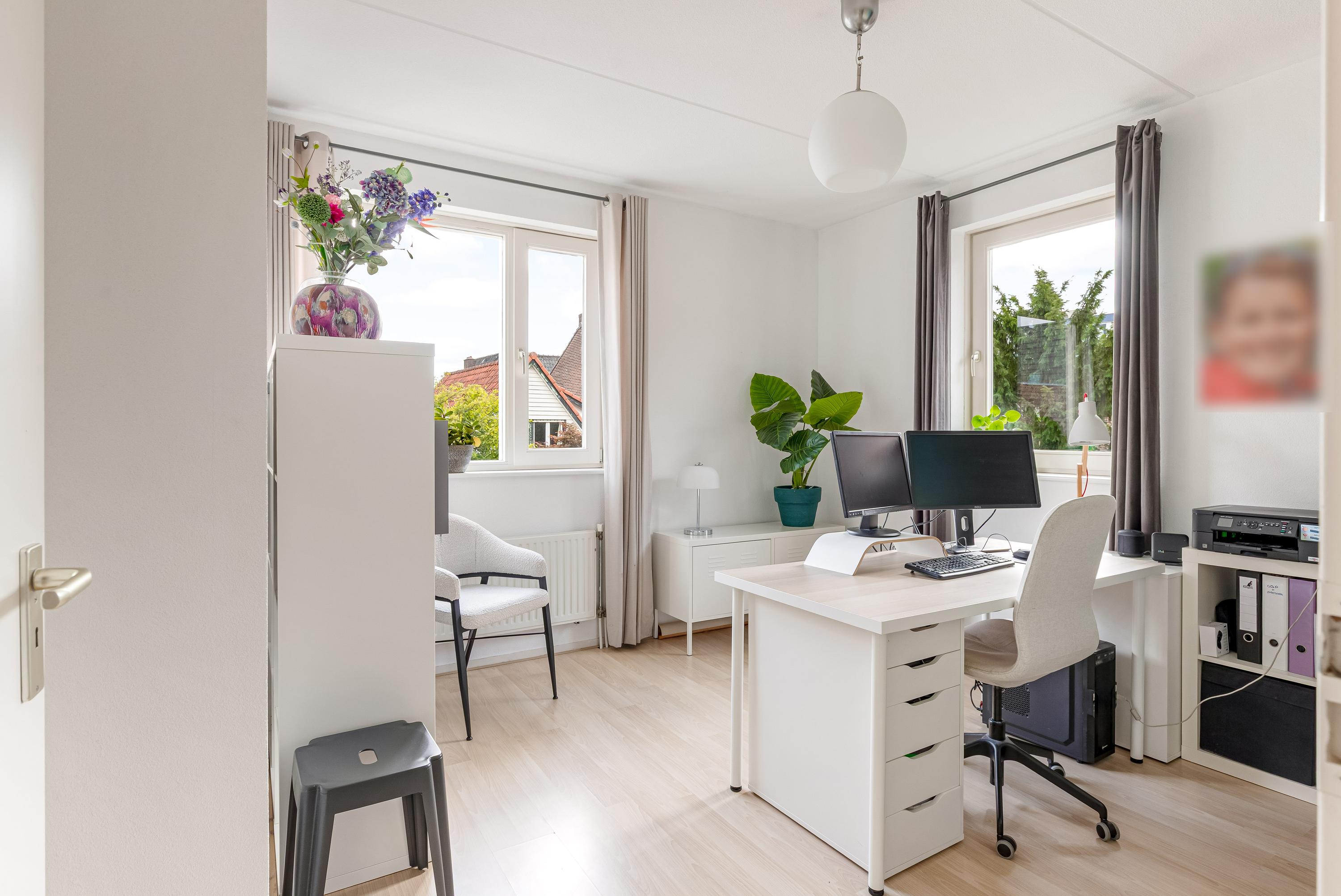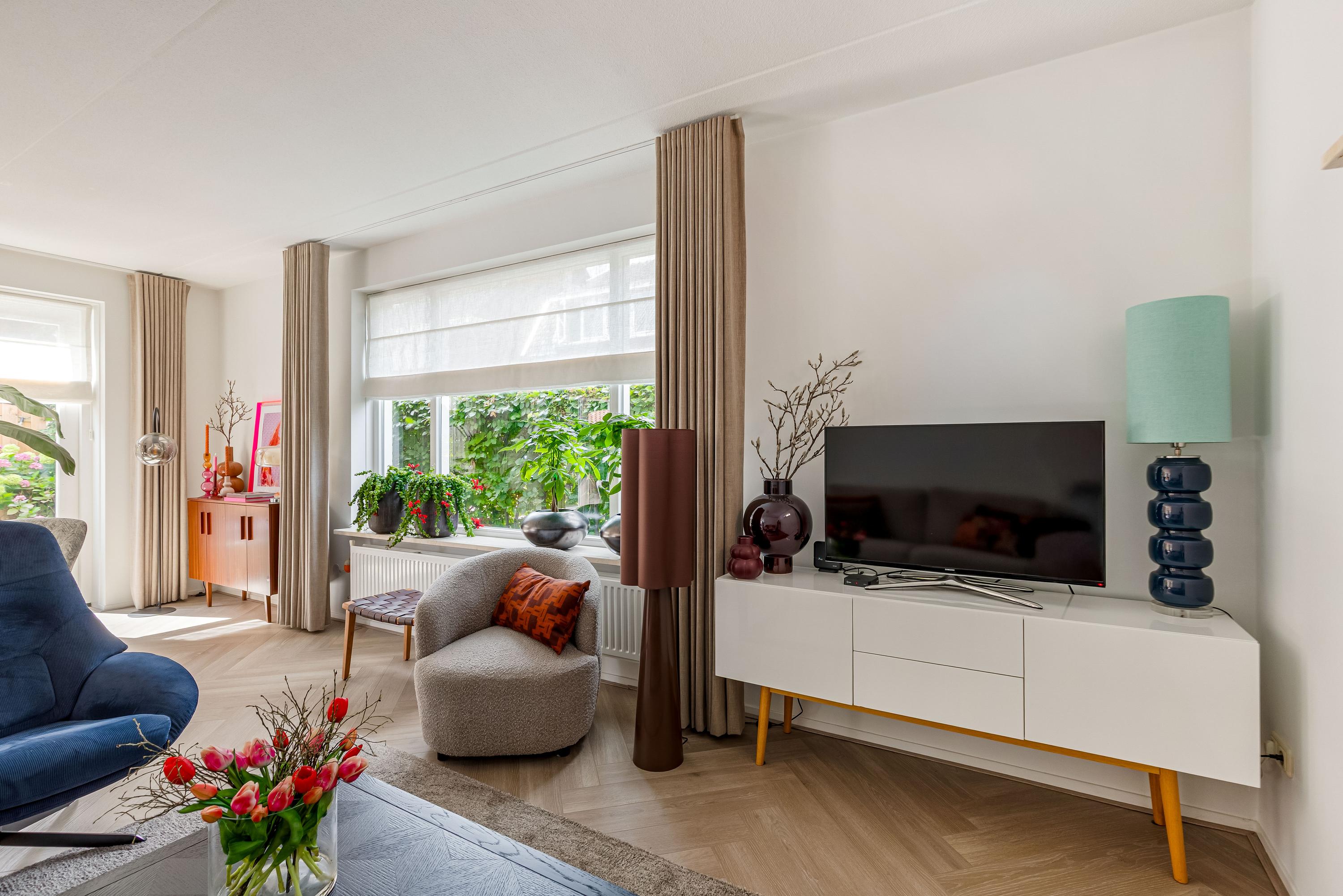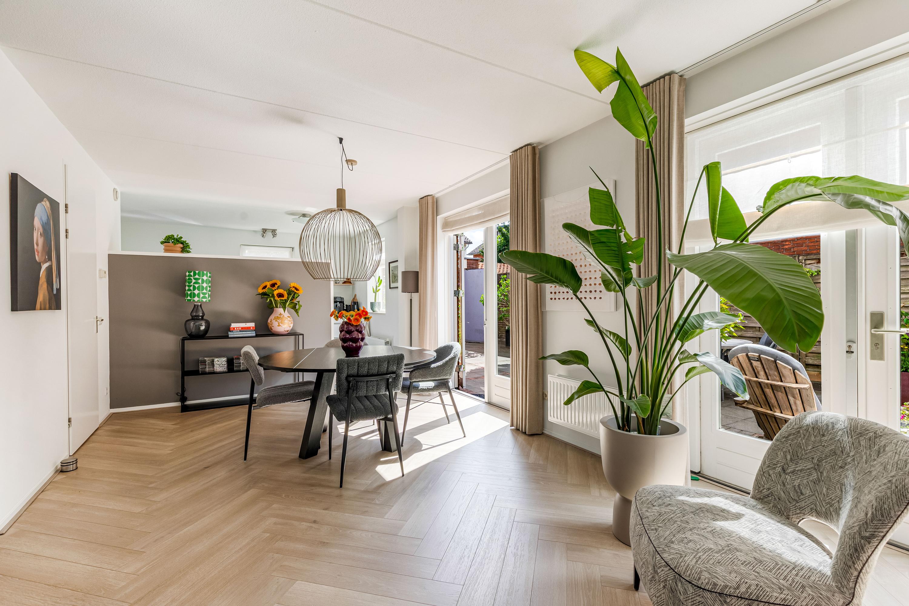 Townhouse Bussum stands at Visserstraat 37, presenting 174 m² of living space in a central yet peaceful residential address. This property’s understated presence shelters six bedrooms and two full bathrooms, ensuring both privacy and calm, while the generous layout blends function with considered design detail. The heart of the house is a luminous living area where light herringbone floors and large windows shape a refined canvas. French doors connect directly to a southeast terrace and a landscaped garden, allowing a gentle transition between inside and out—space made for quiet retreat or convivial gathering.